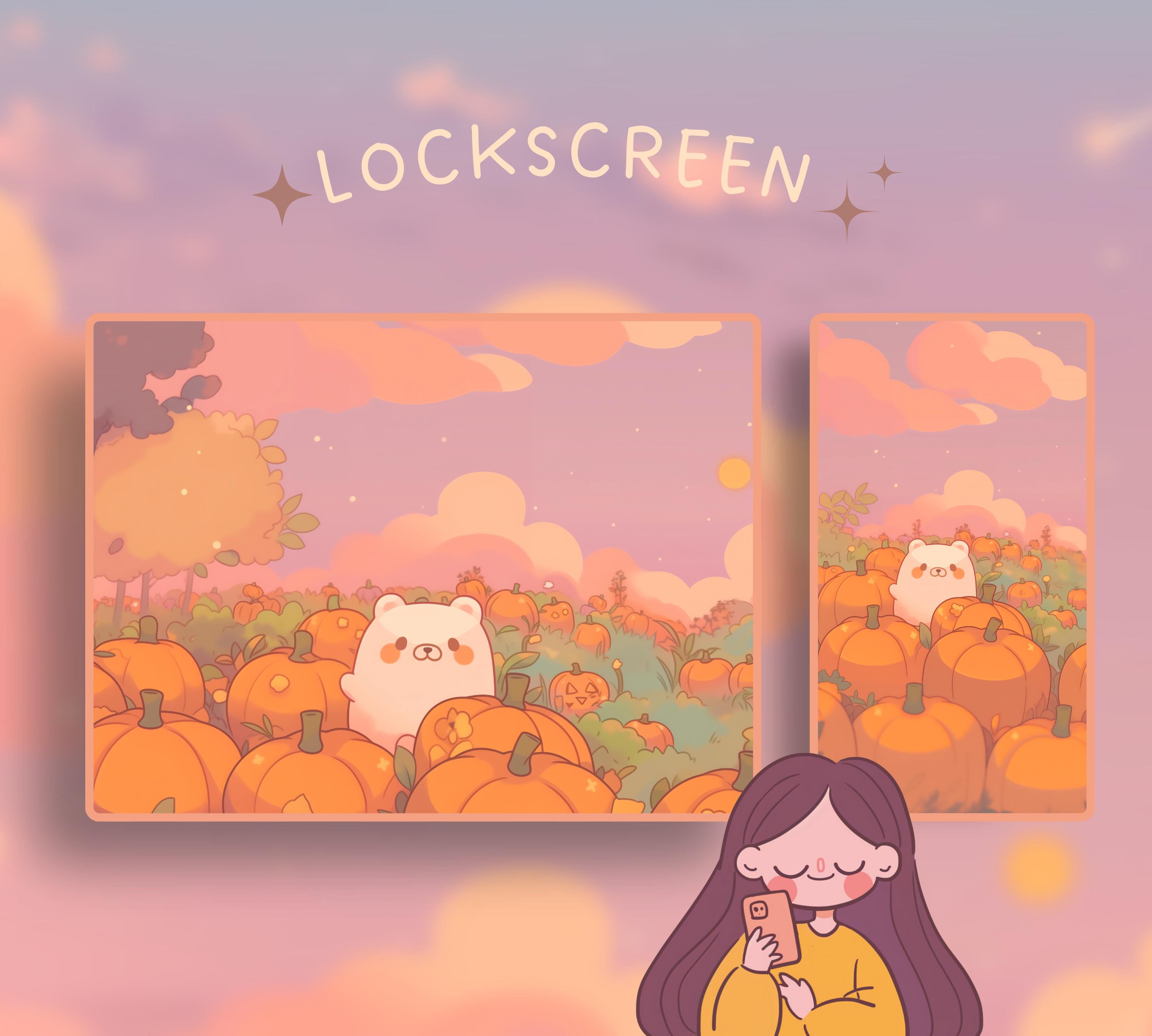 Kawaii Pumpkin Bear Phone Theme: iOS + Android (Digital Download)