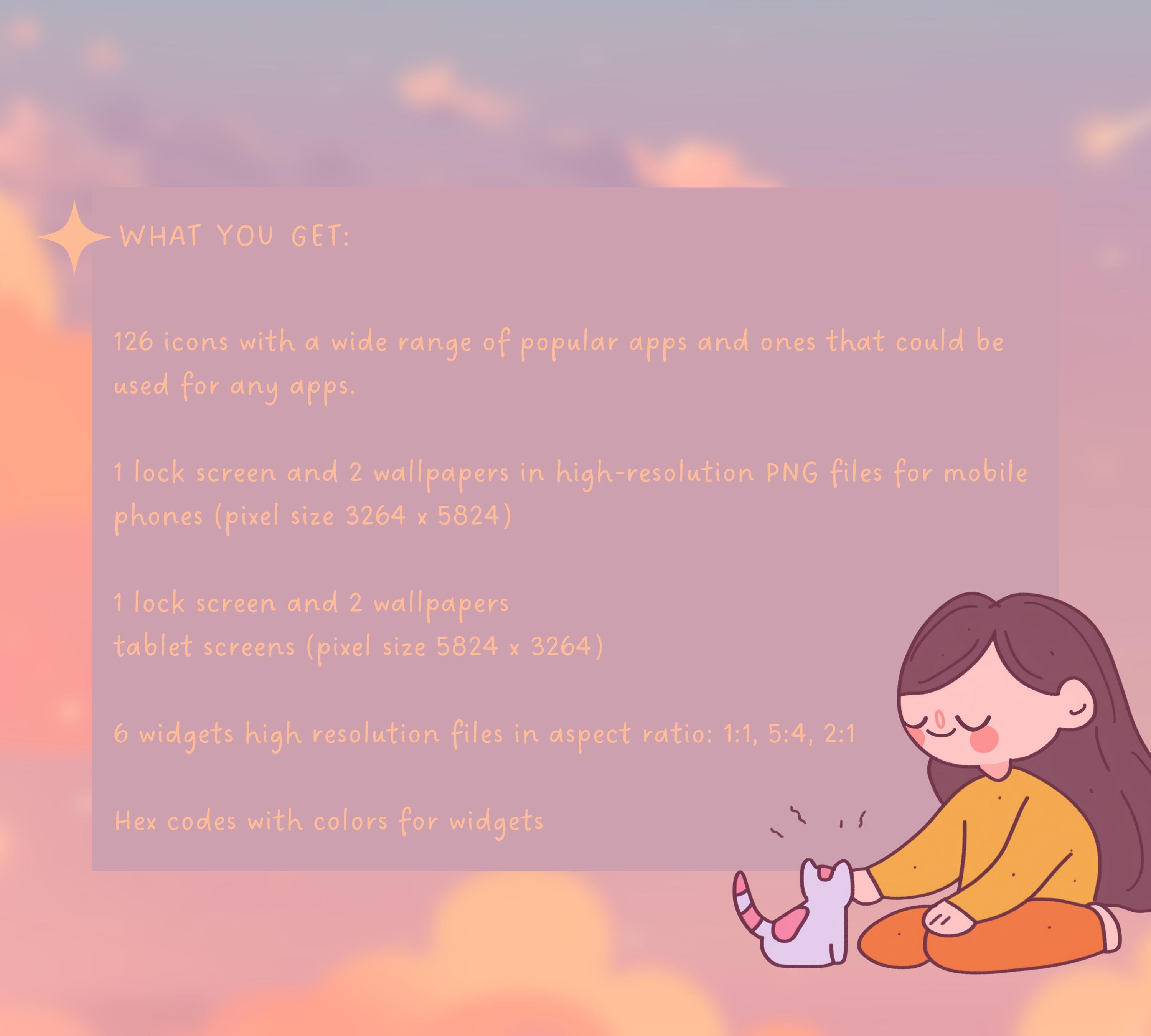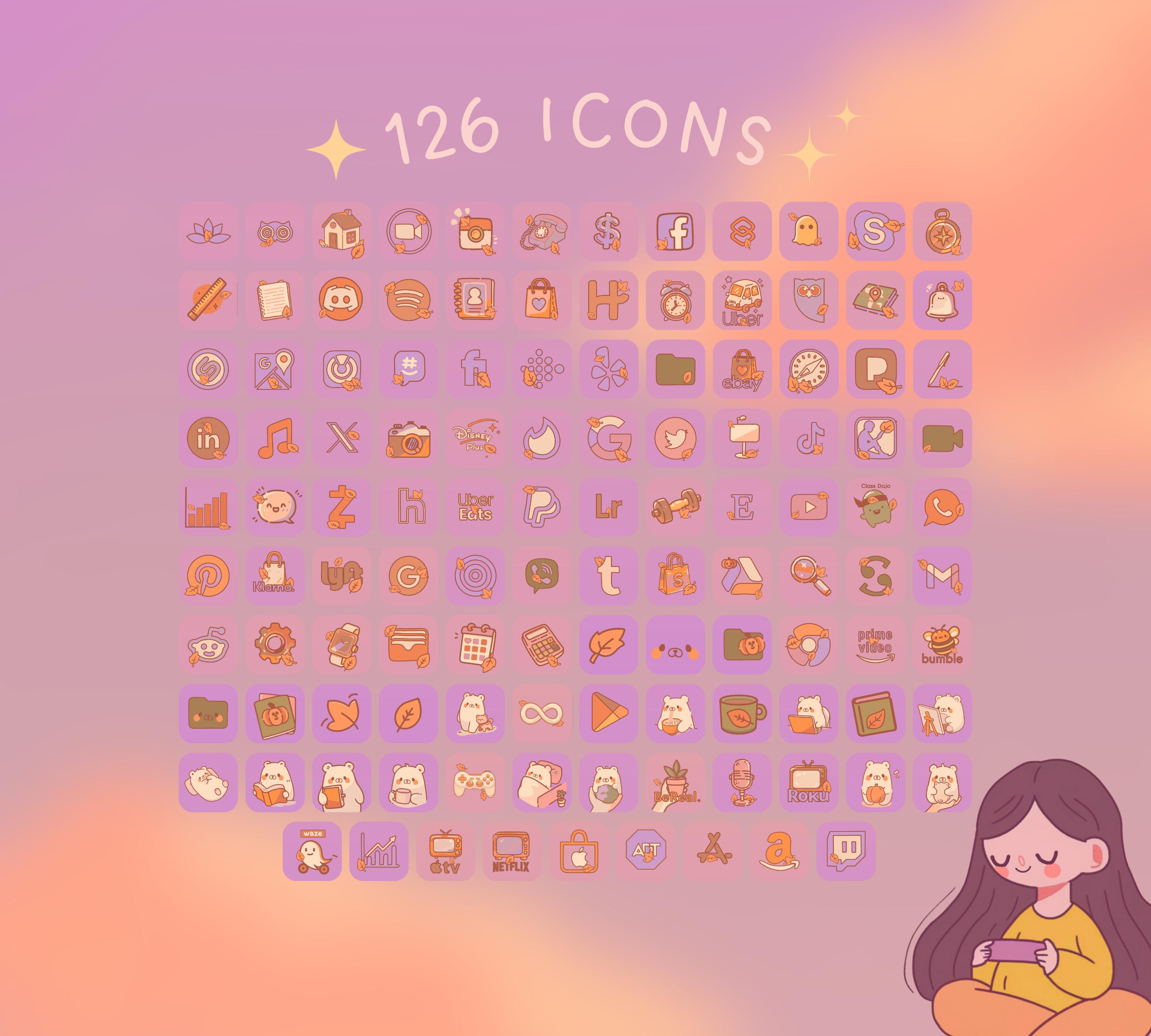 Give your device a fresh look with our awesome icon and wallpaper set for iOS, iPadOS, and Android! This digital download includes 126 stunning icons covering a range of popular apps that can be used to customize any app on your device. You'll get high-resolution PNG files designed for both mobile phones and tablets, so your screens will look fantastic no matter what device you’re using! 📱✨