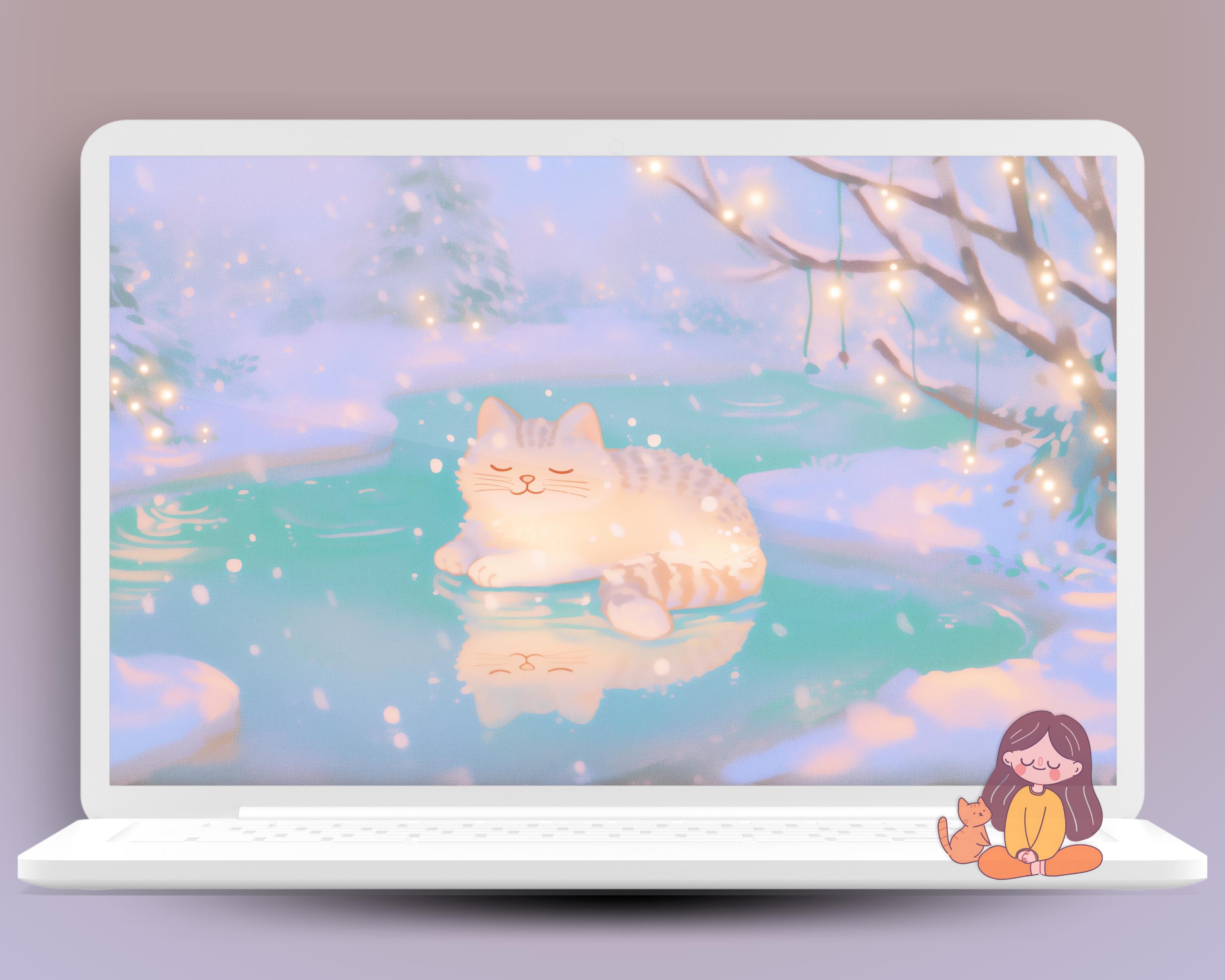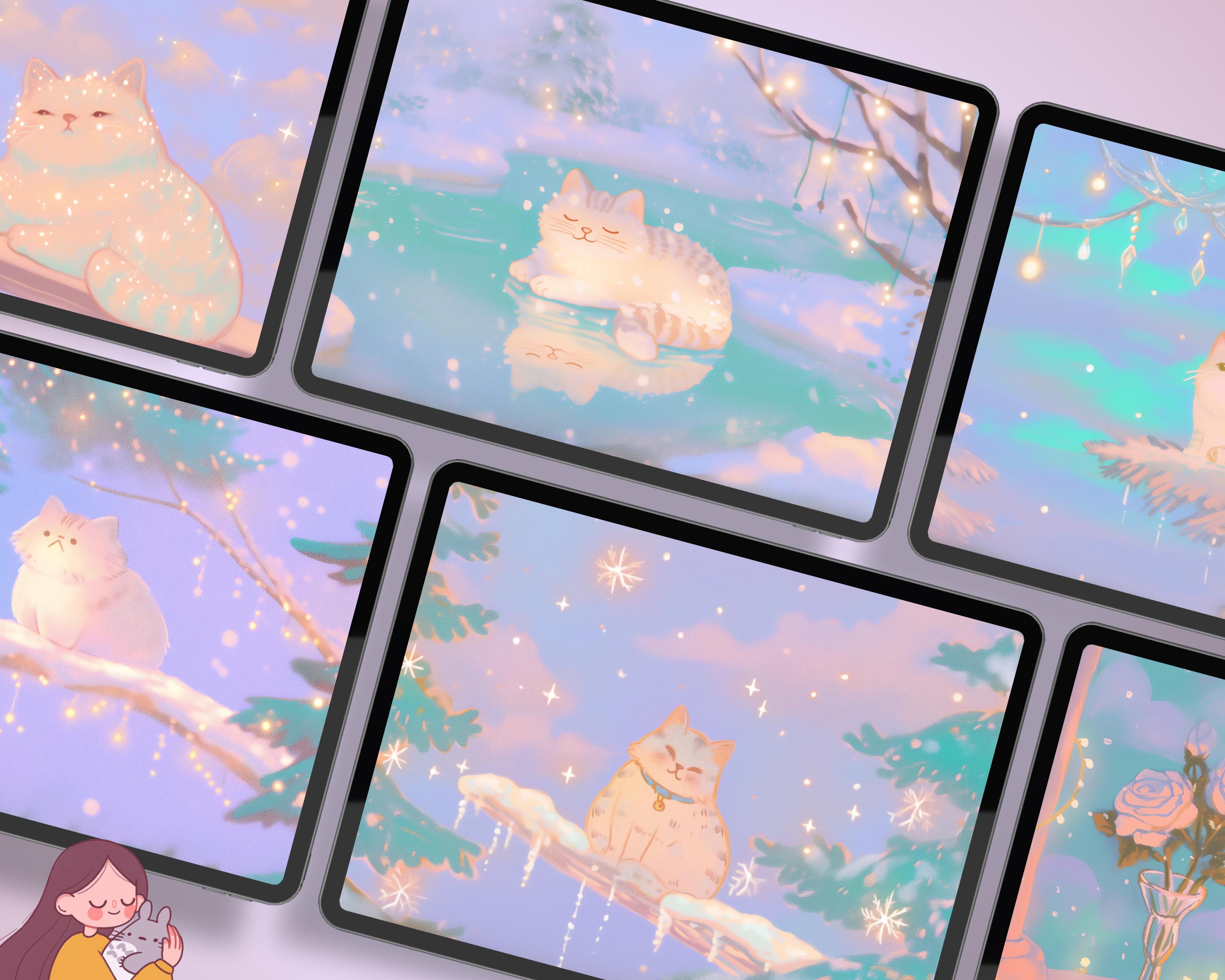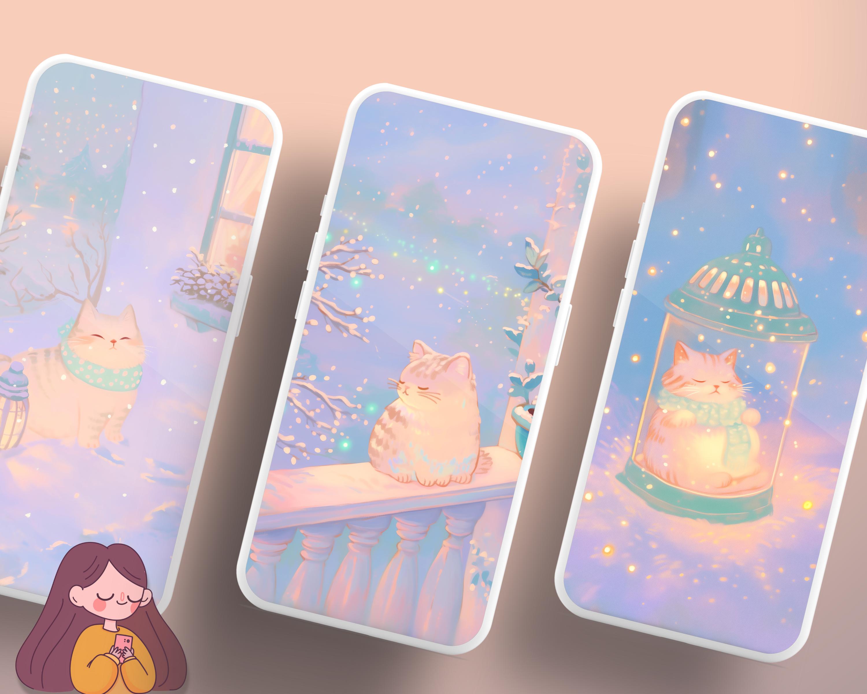 Kawaii Christmas Cats Wallpaper: Cozy Phone & Desktop Backgrounds (Digital Download)