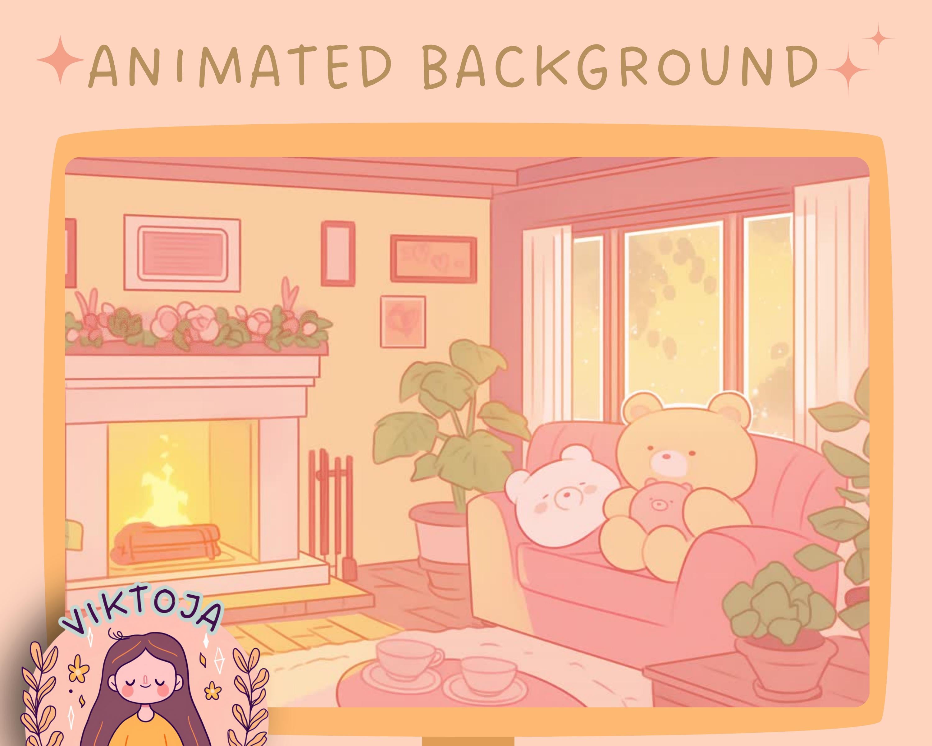 Cozy Winter Bear Animated Vtuber Background: Kawaii Lofi Stream Overlay (MP4)