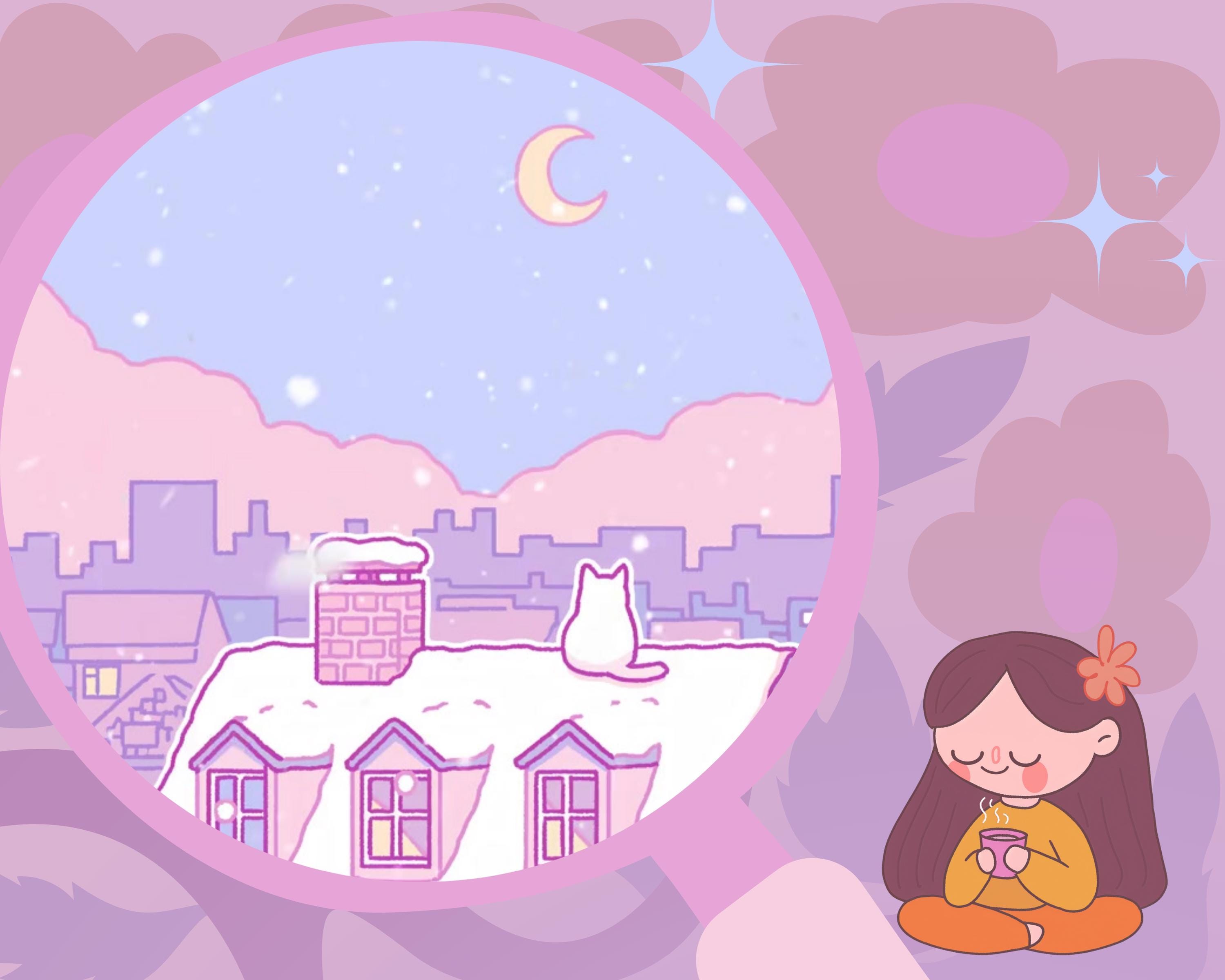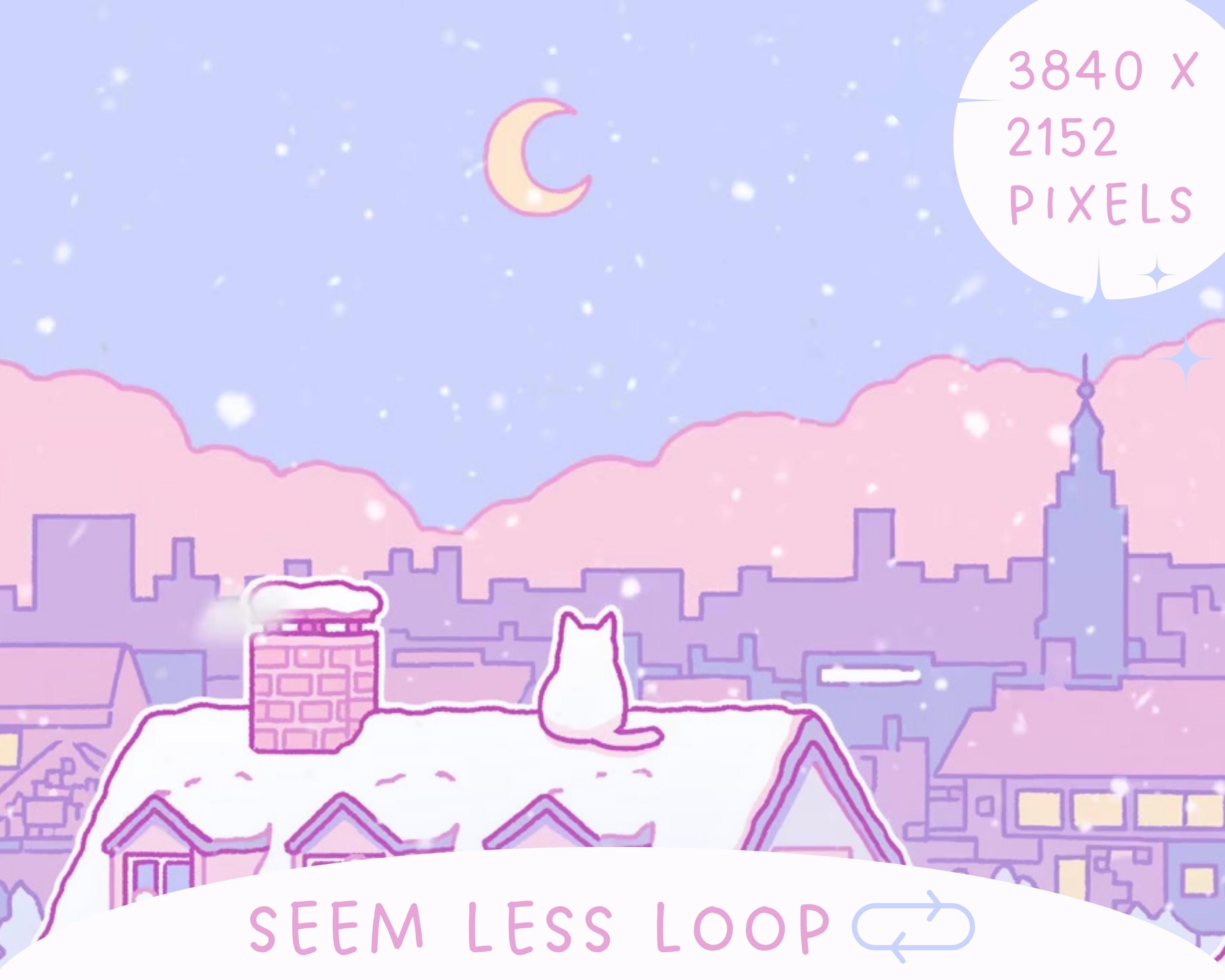 Cozy Winter Roof: Kawaii Lofi Animated Vtuber Background (MP4)