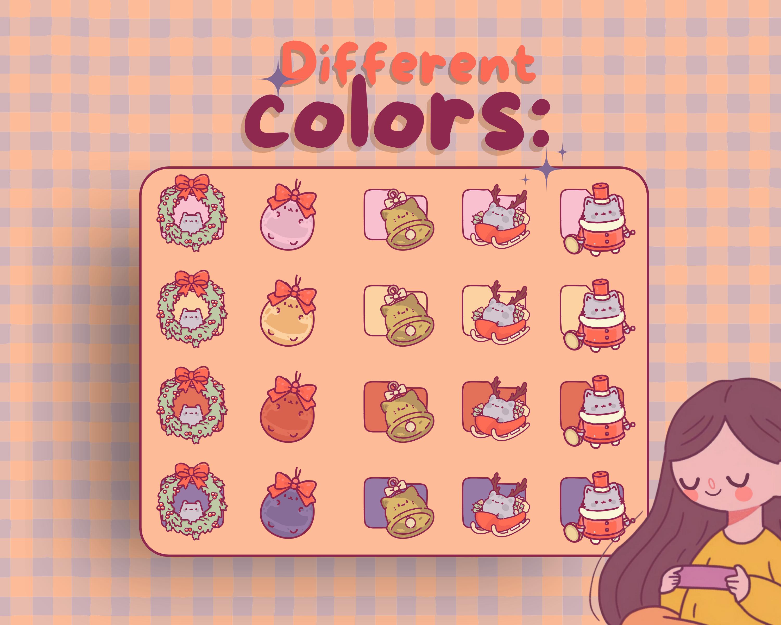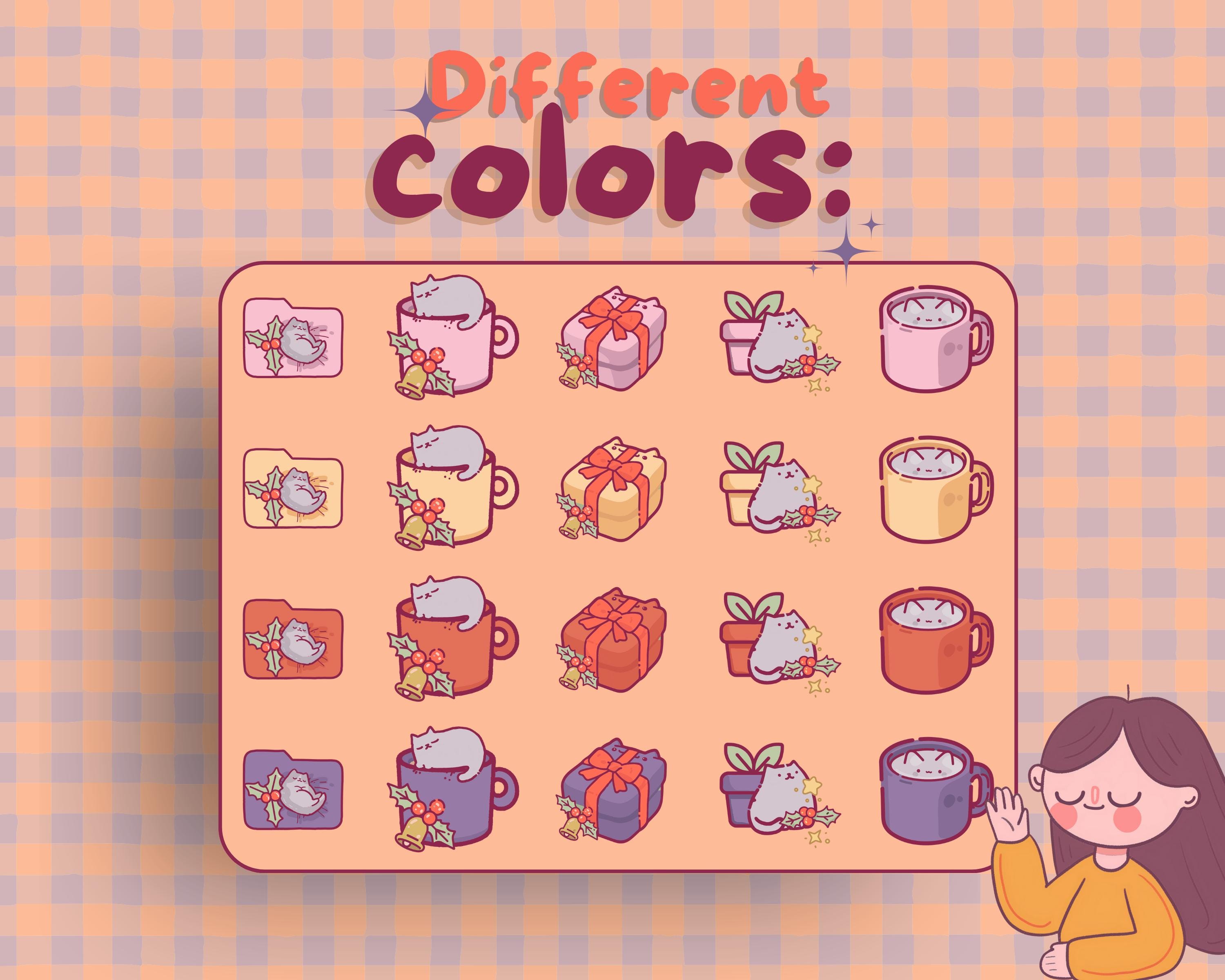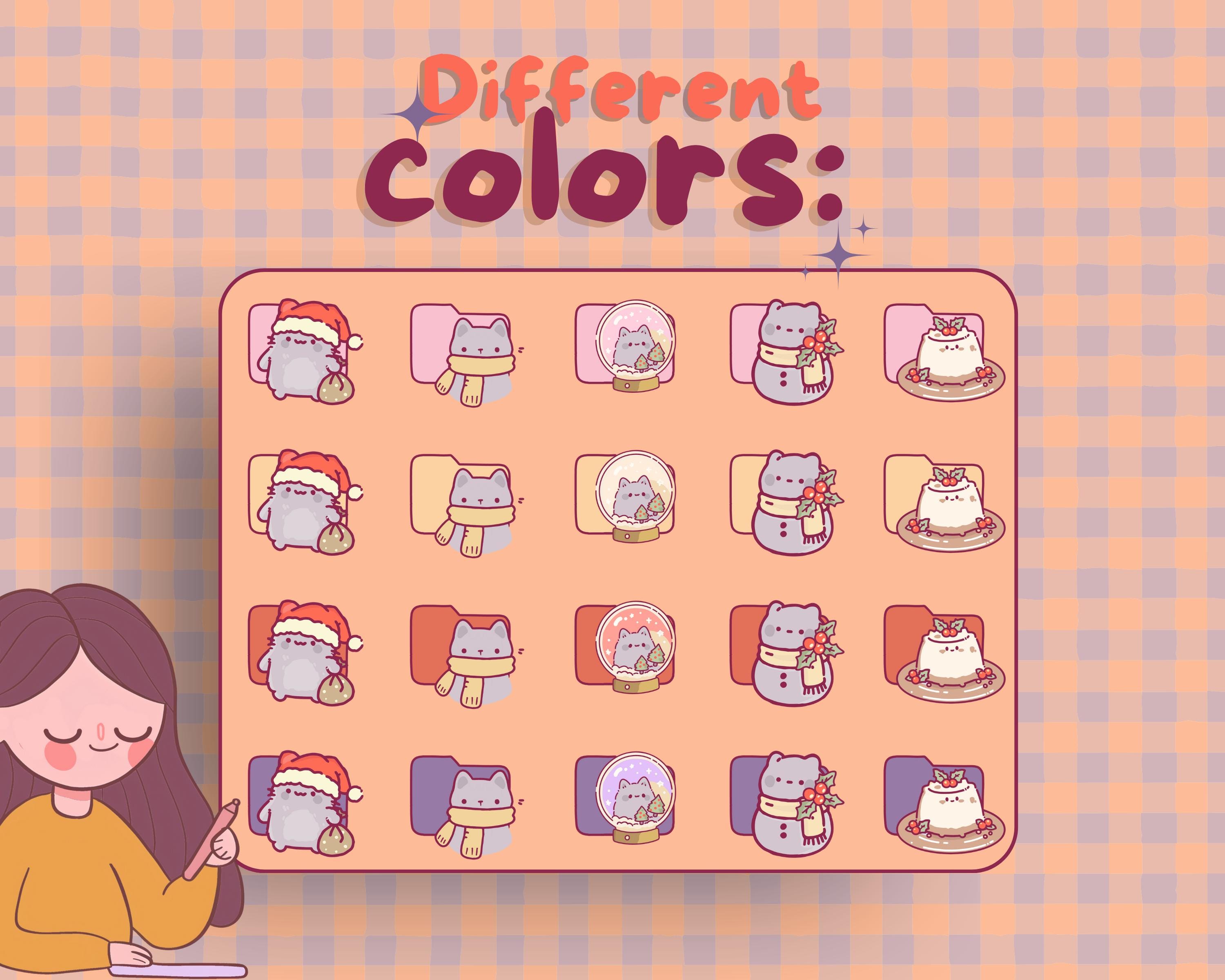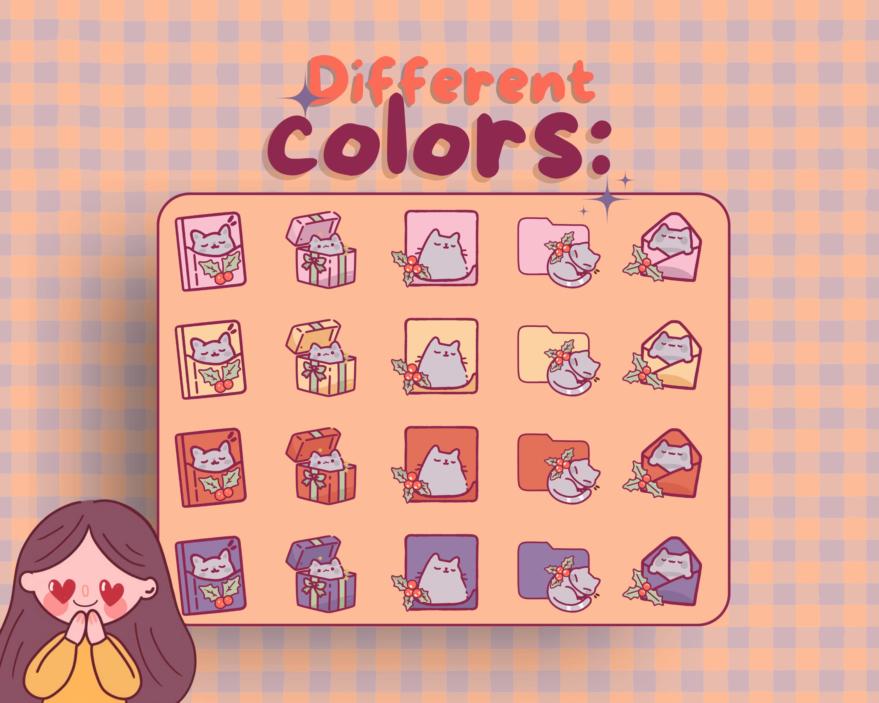 Christmas Cat Desktop Icons: Kawaii Holiday Theme (80 PNG & ICO)