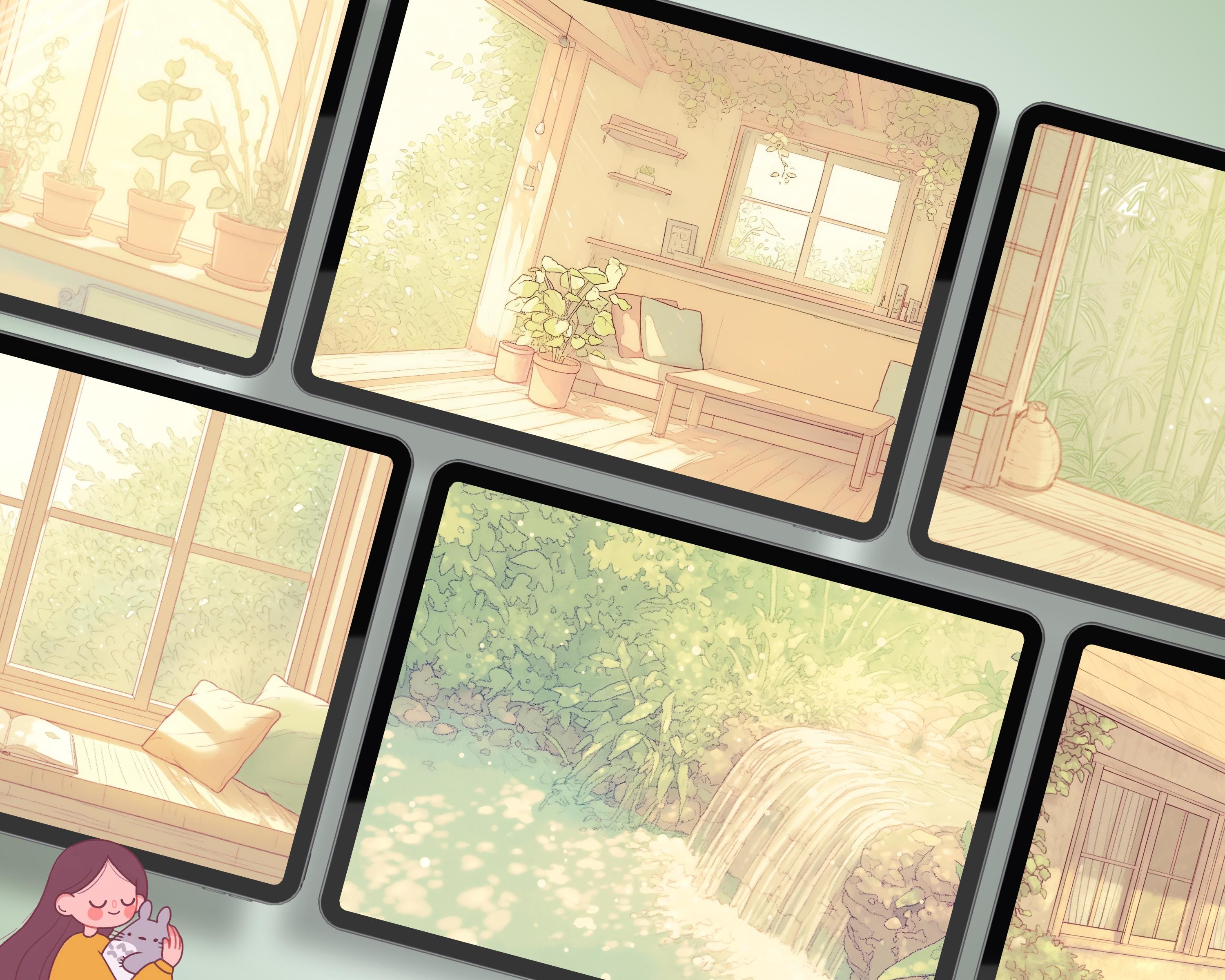 Bring a touch of coziness to your devices with this set of 12 Studio Ghibli-inspired wallpapers! Featuring cozy interriors and pale city scapes these high-res JPG files will fit perfectly on your phone or computer/tablet screens.