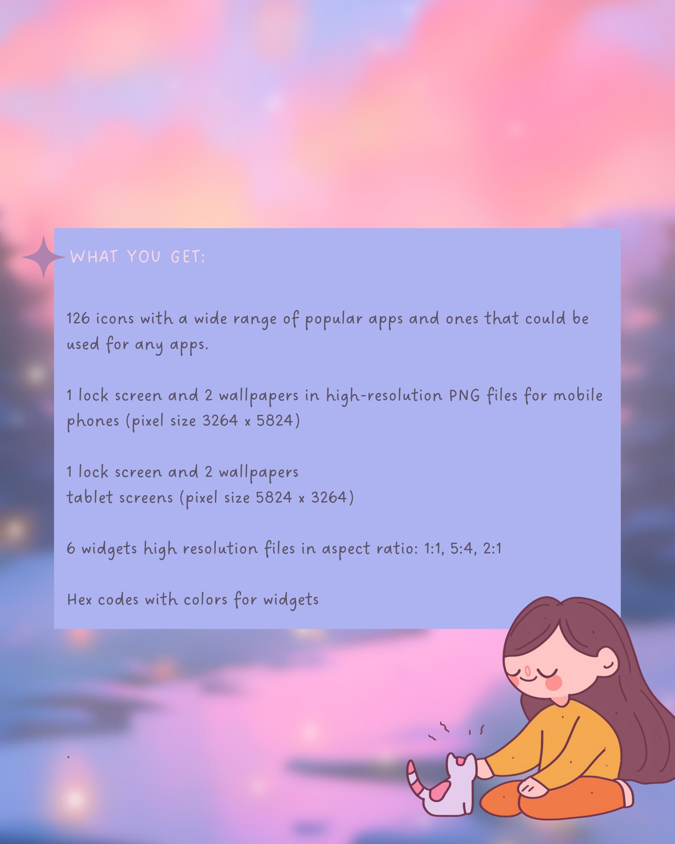 Give your device a fresh look with our awesome icon and wallpaper set for iOS, iPadOS, and Android! This digital download includes 126 stunning icons covering a range of popular apps that can be used to customize any app on your device. You'll get high-resolution PNG files designed for both mobile phones and tablets, so your screens will look fantastic no matter what device you’re using! 📱✨