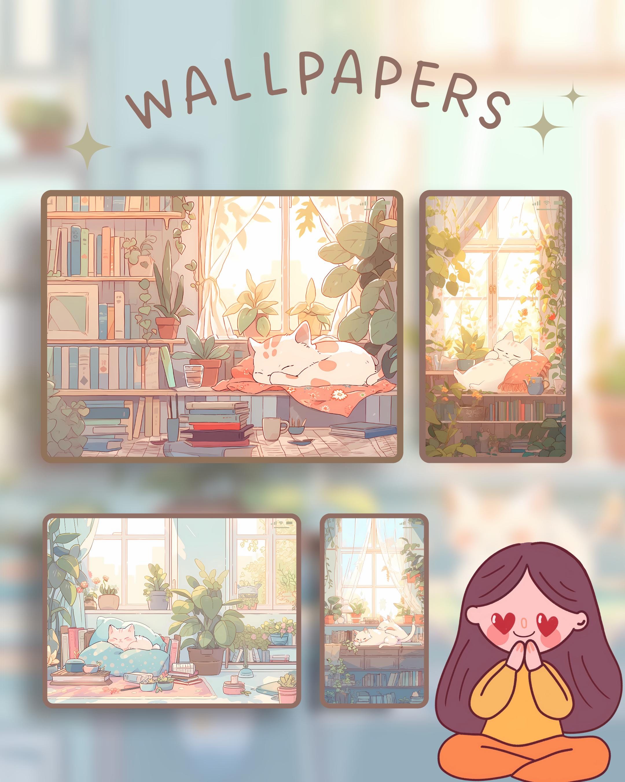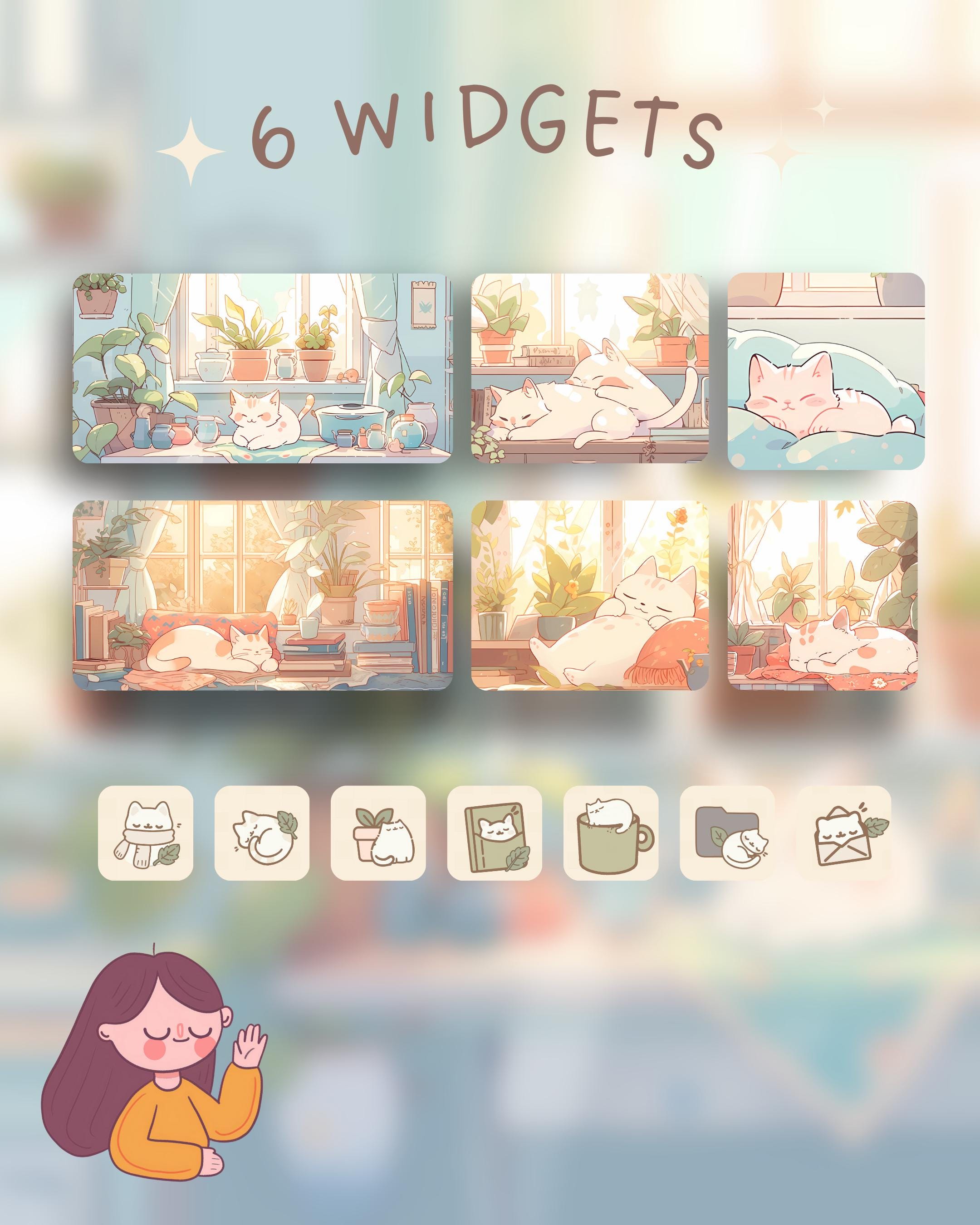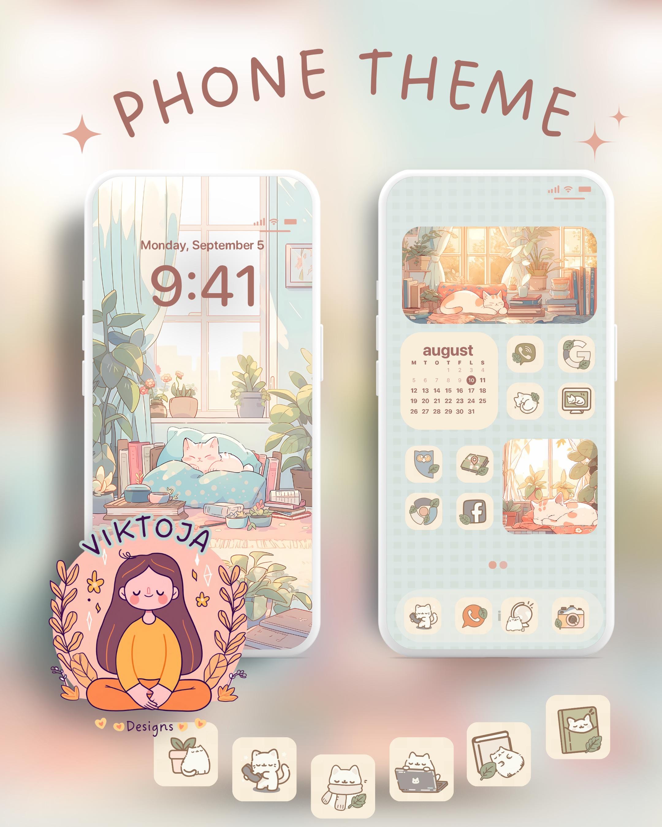 Cat & Plants Phone Theme: Kawaii iOS/Android Icons (Digital Download)