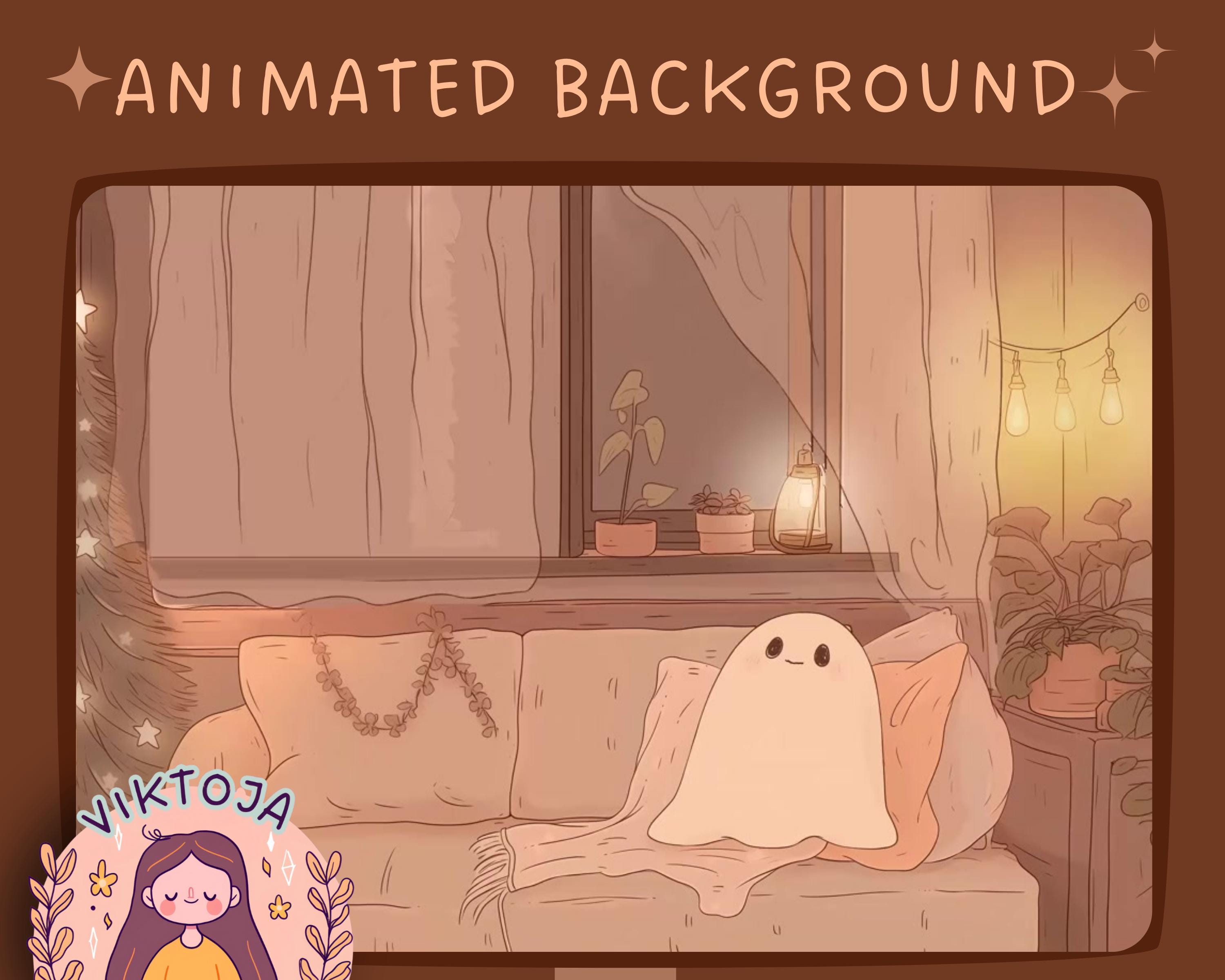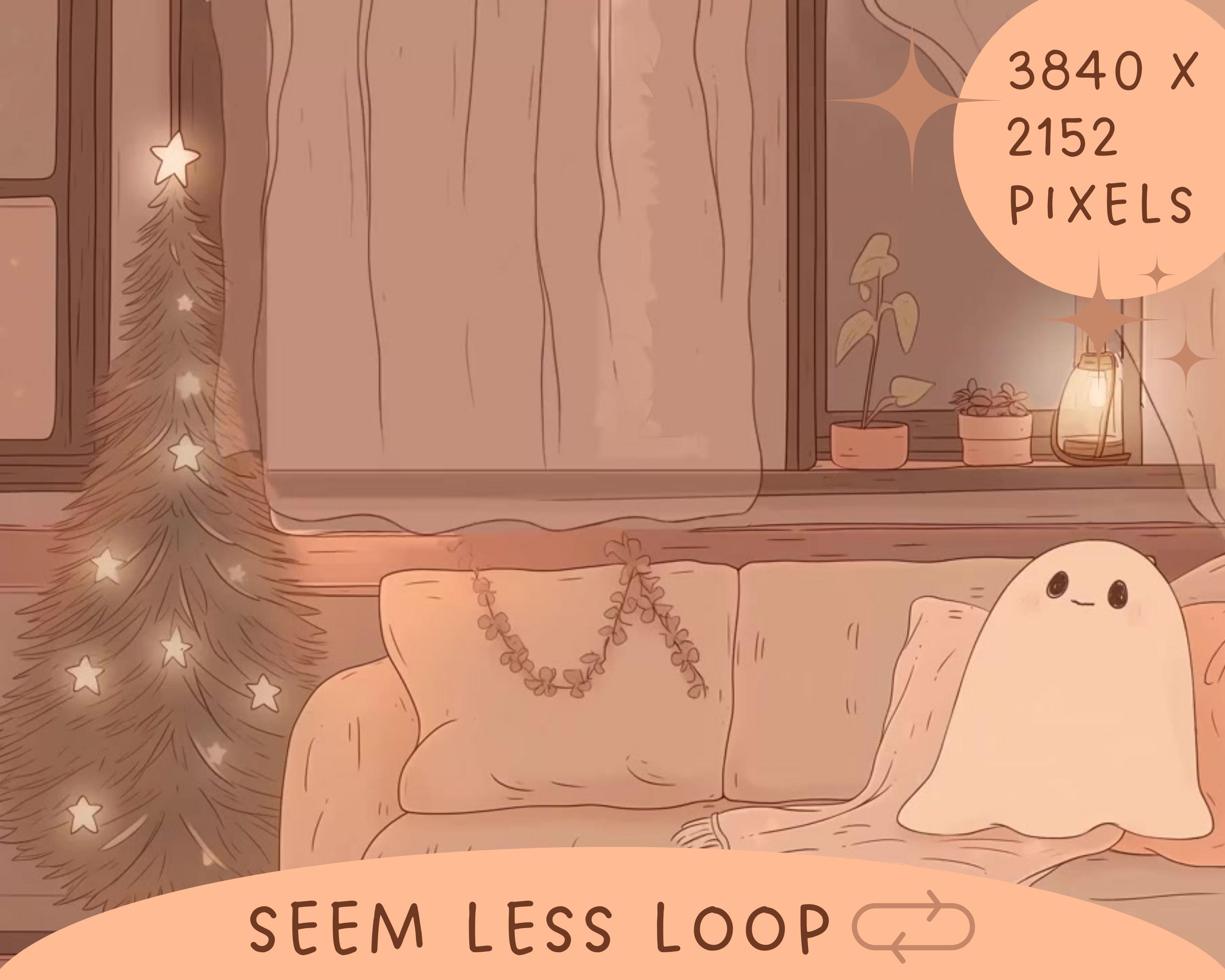 Lofi Christmas Ghost: Kawaii Animated Vtuber Background (MP4 Digital Download)