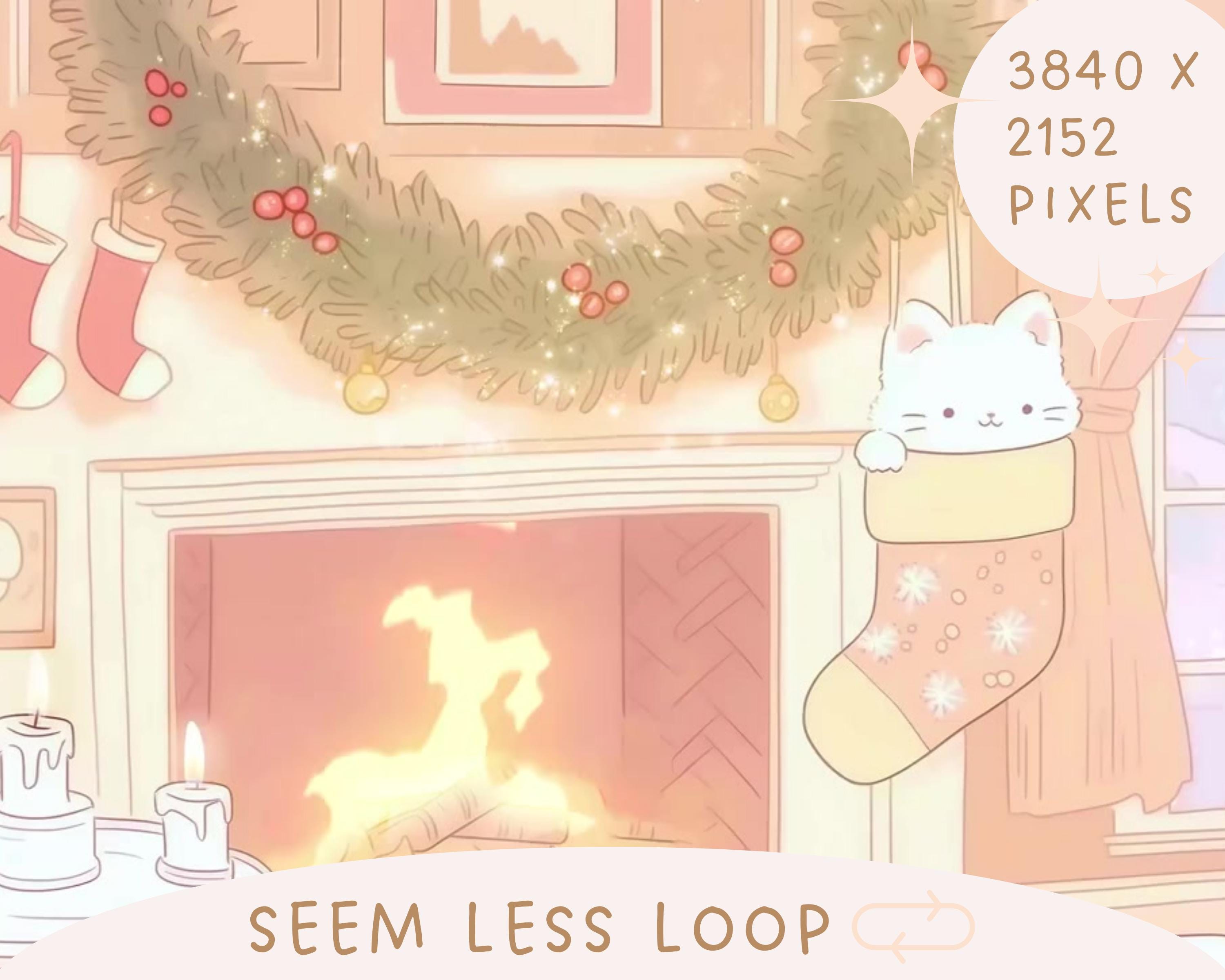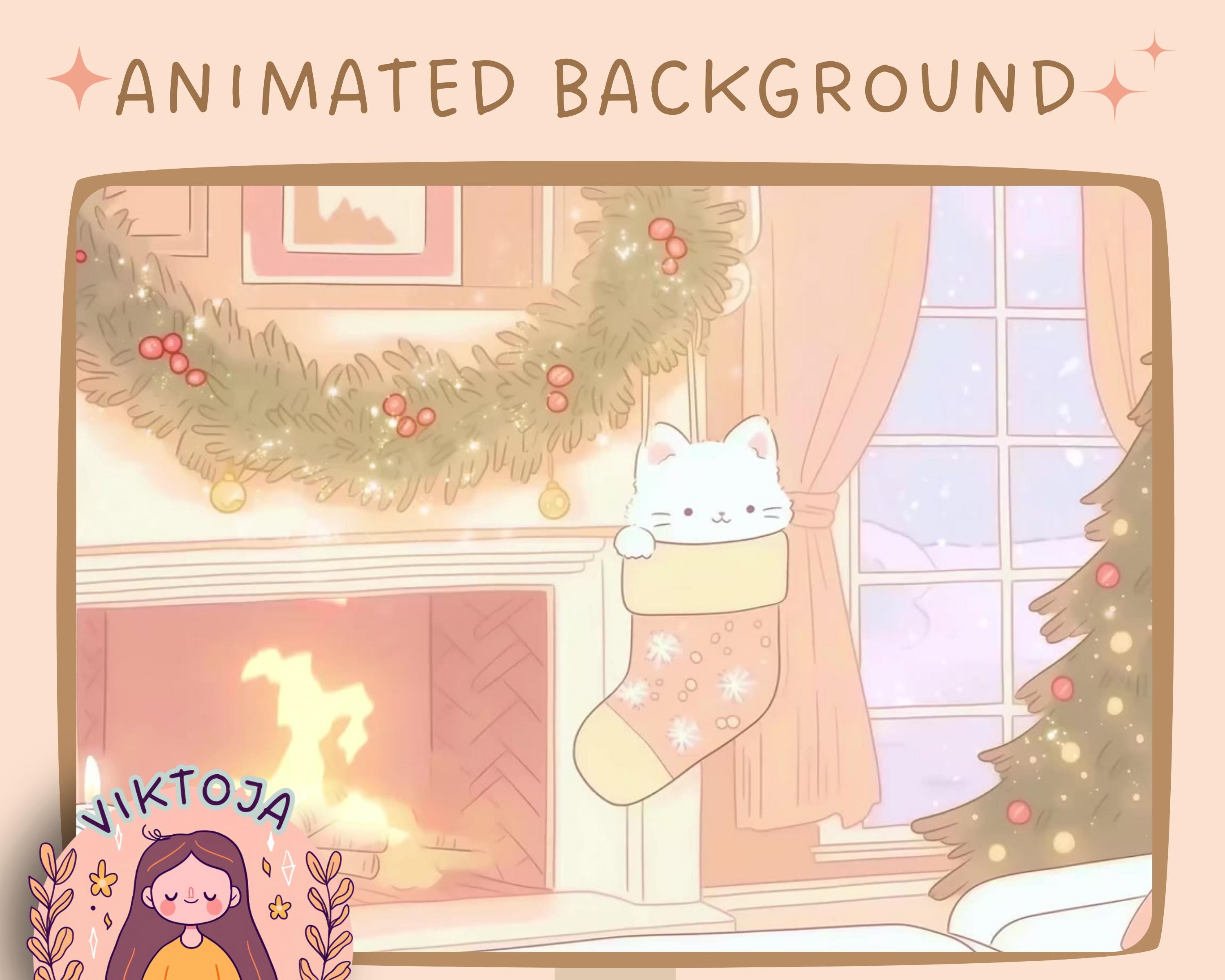 Christmas Cat Lofi Animated Vtuber Background: Cozy Stream Overlay (MP4)