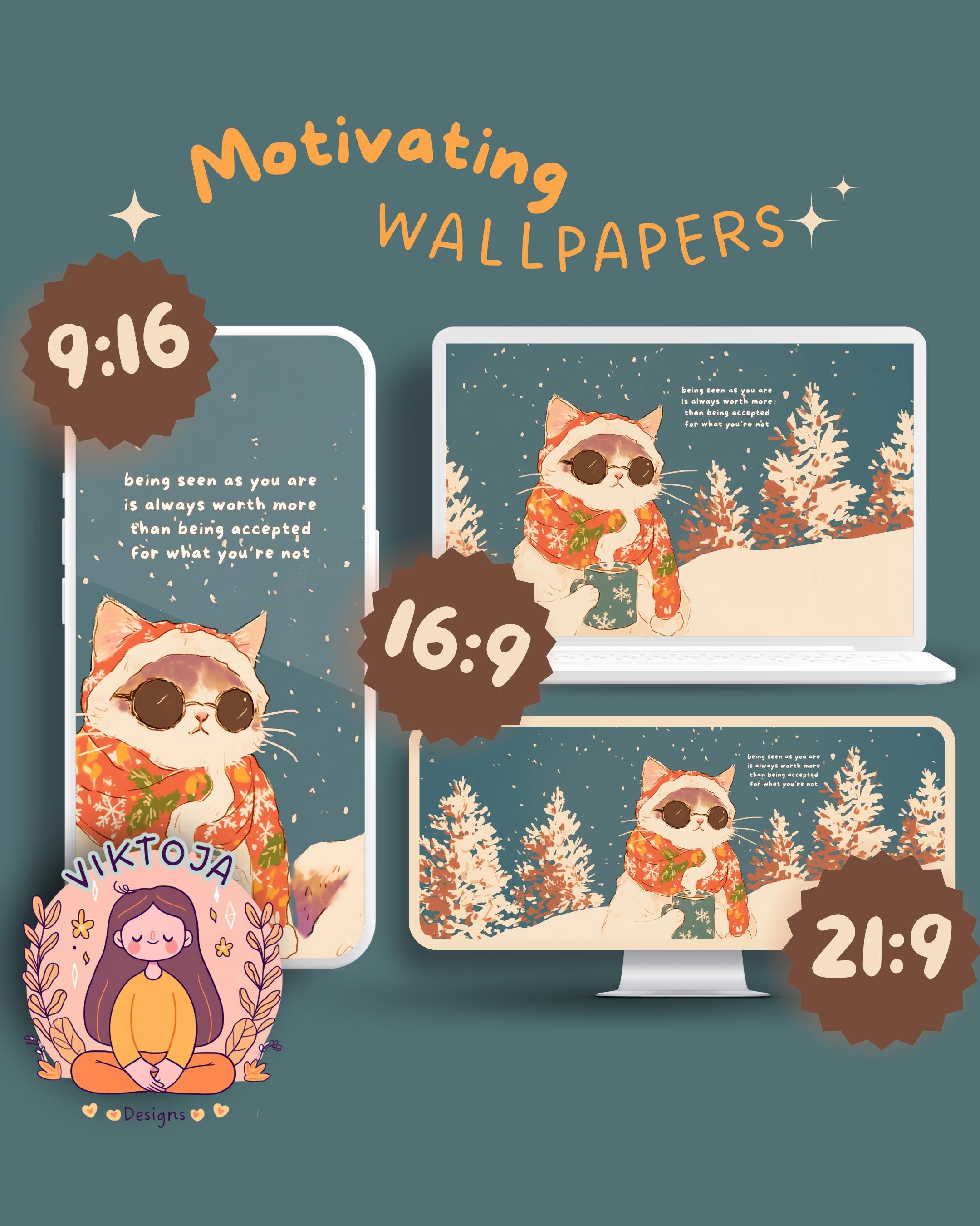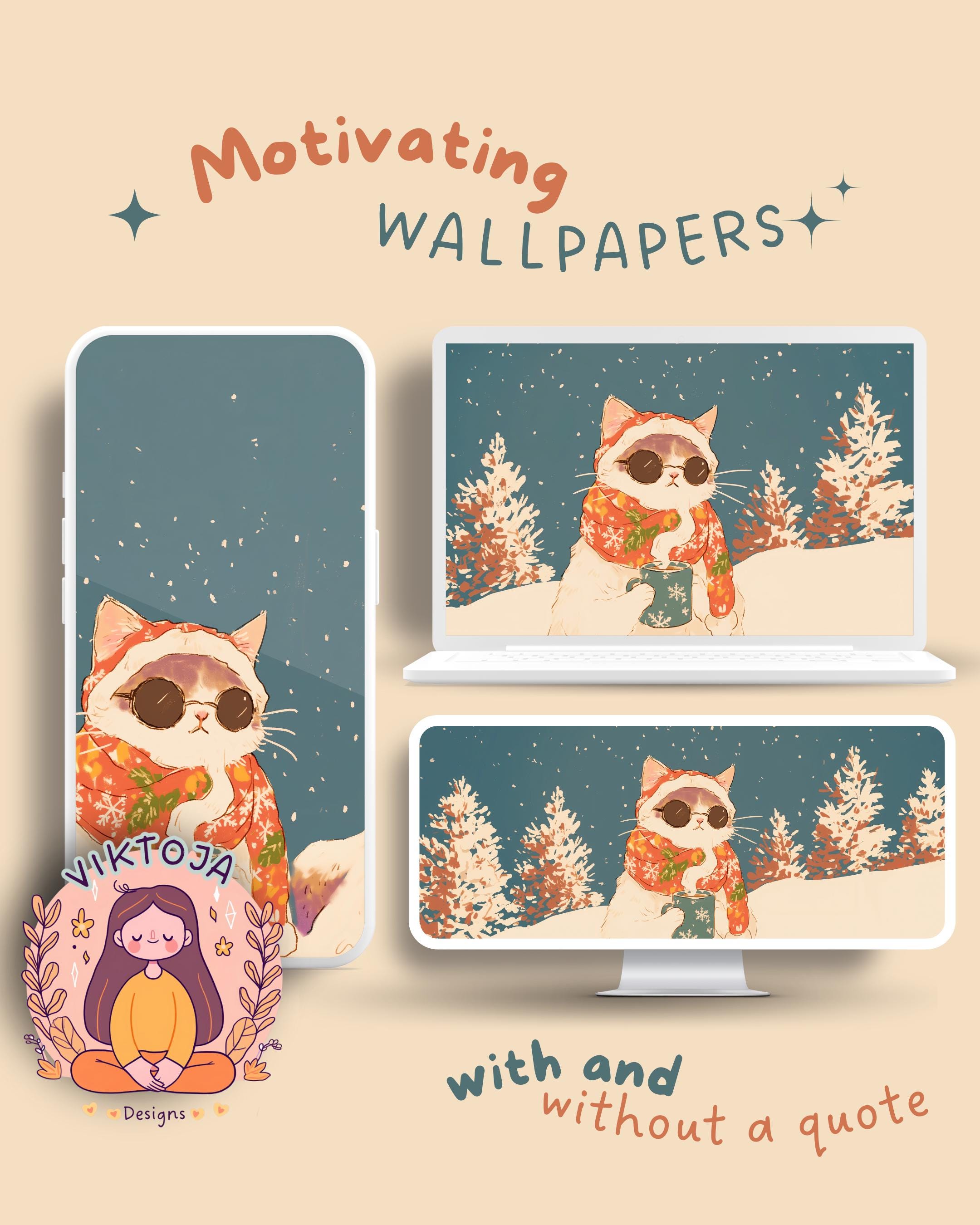 Sassy Cat Winter Wallpaper for Phone & Desktop (Digital Download)