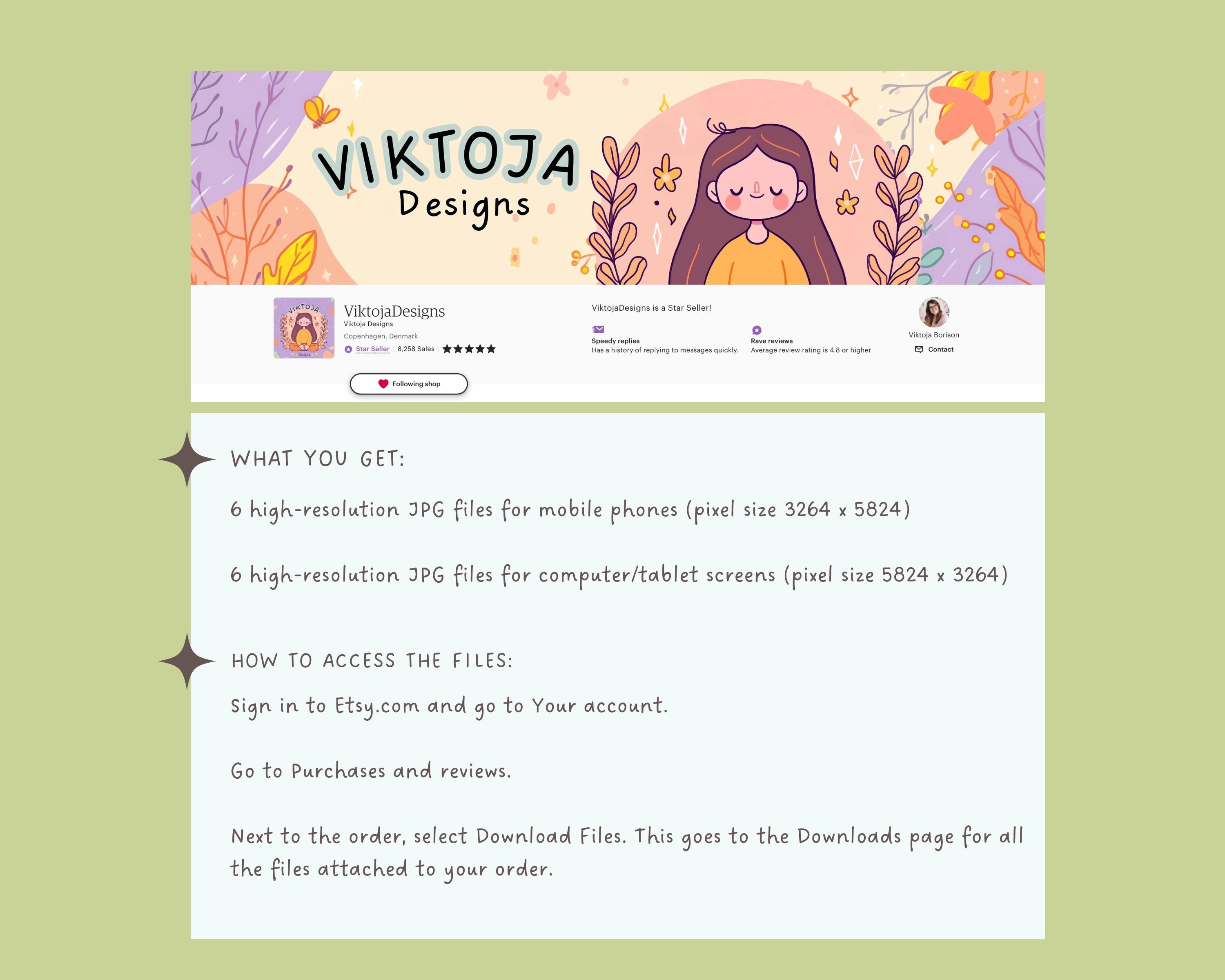 After purchase, you'll receive a PDF file with a link to download your wallpapers.