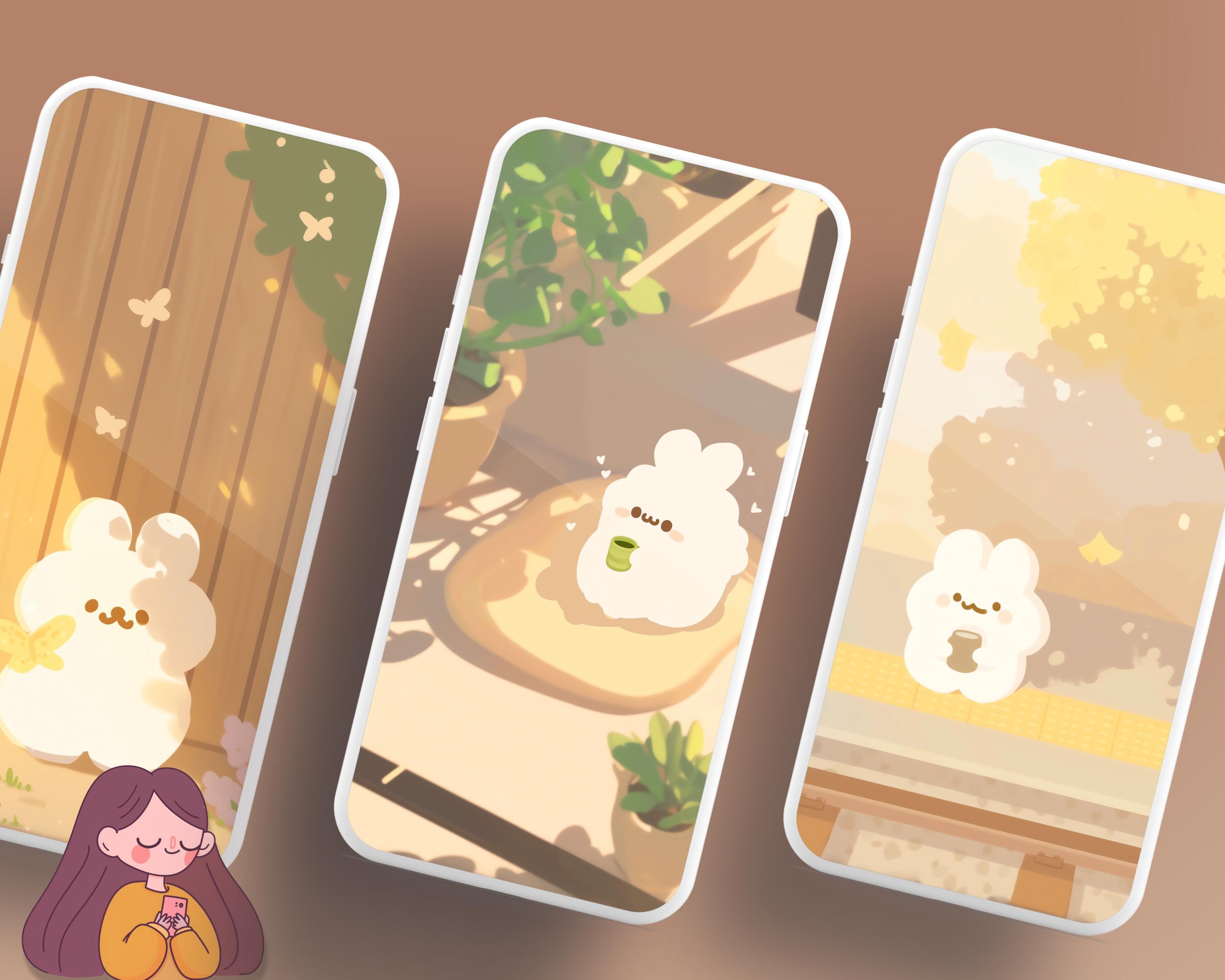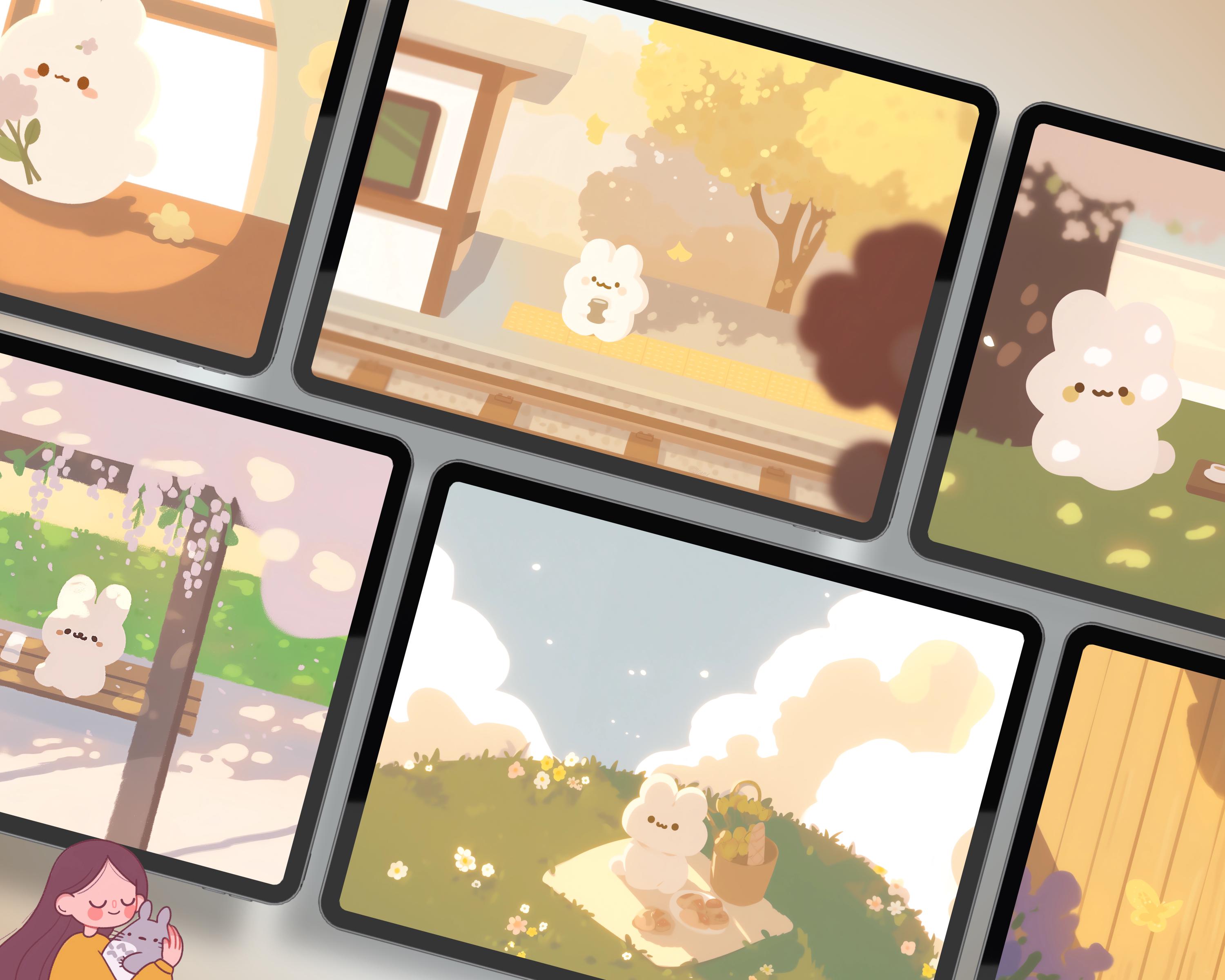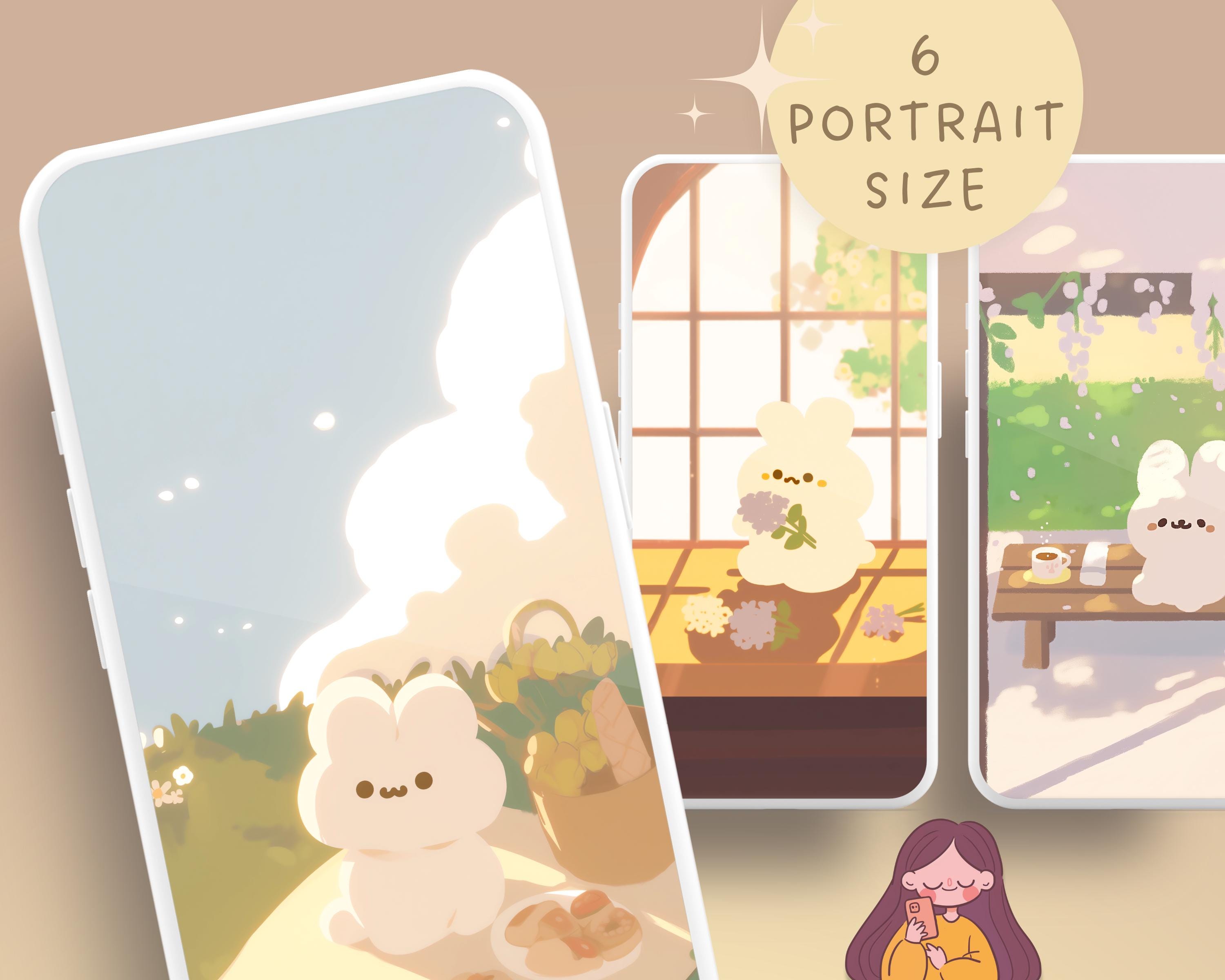 Bunny Wallpaper Set, Pastel, Phone & Desktop Backgrounds (Digital Download)