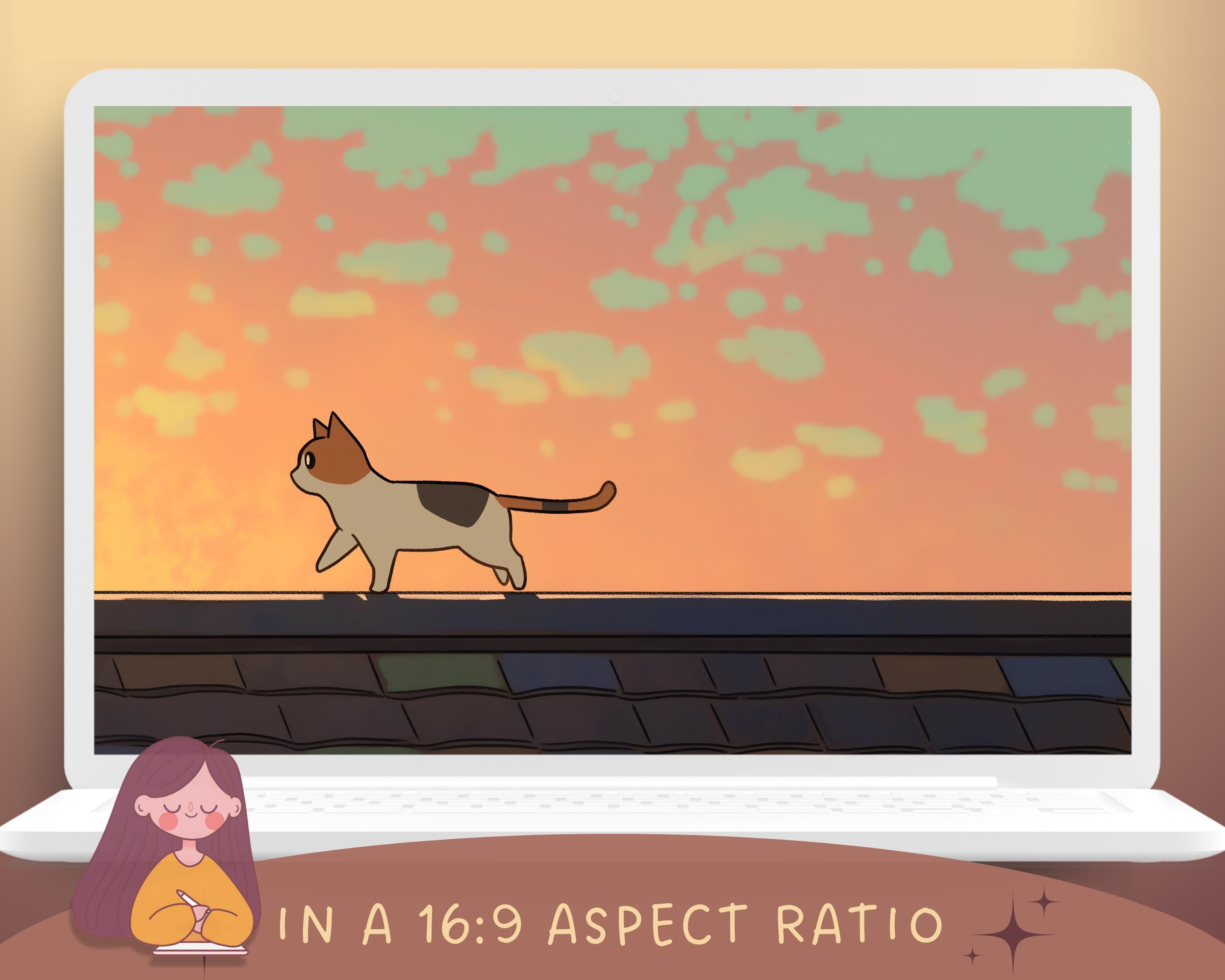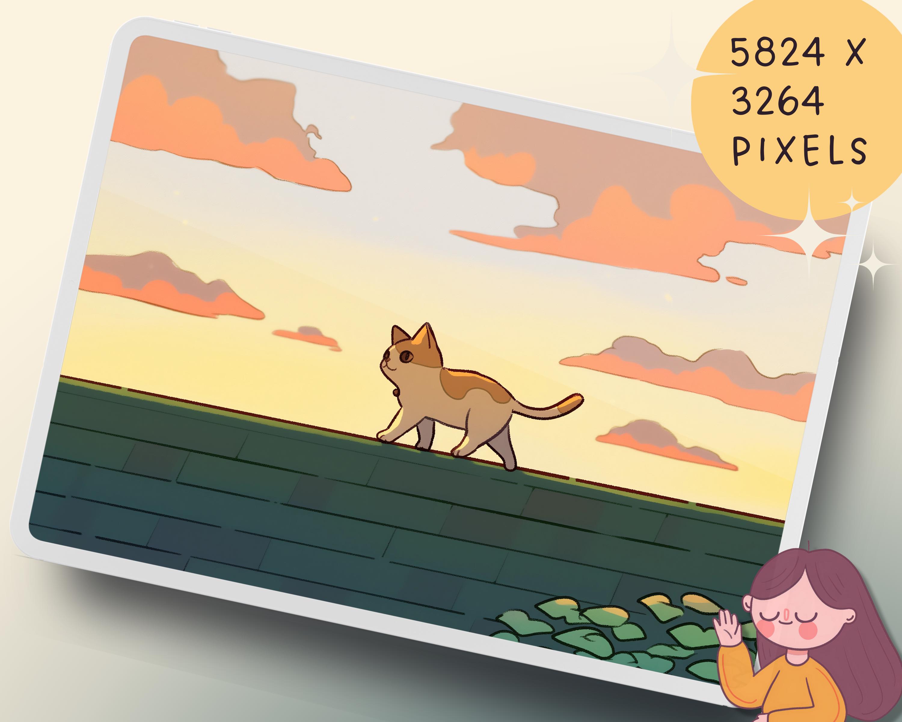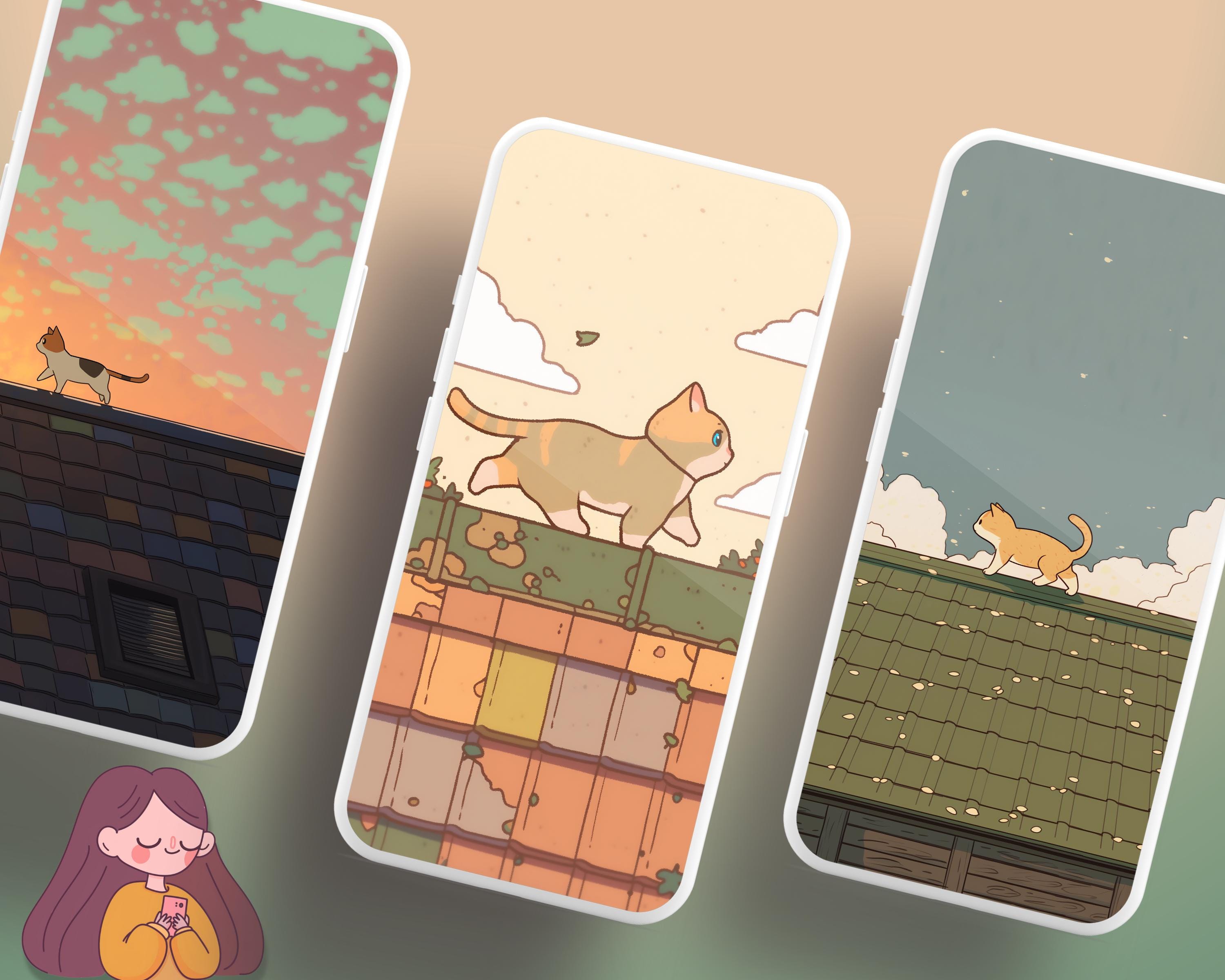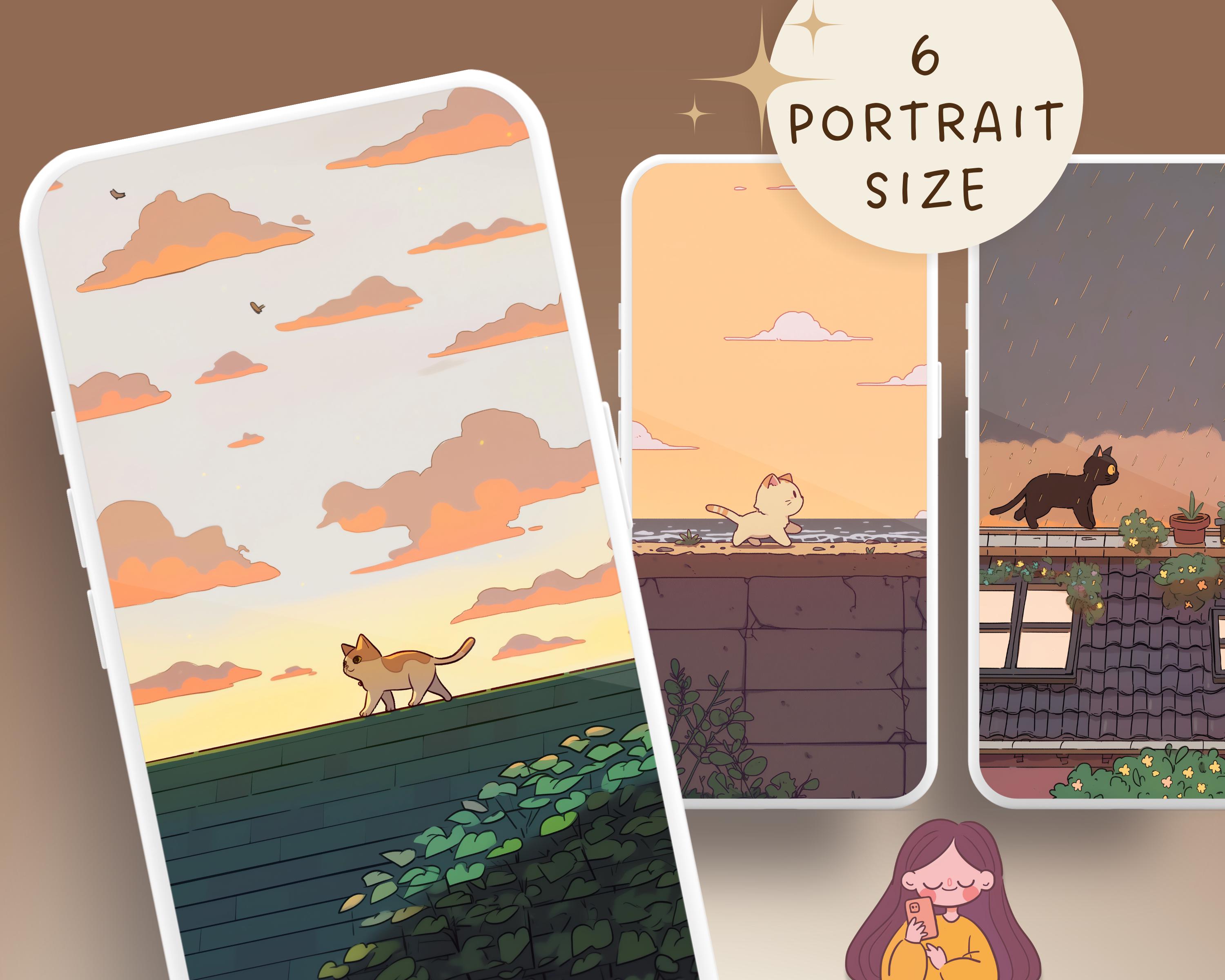 Cozy Cat on Roof Wallpaper Bundle: Anime Desktop & Phone (Digital Download)