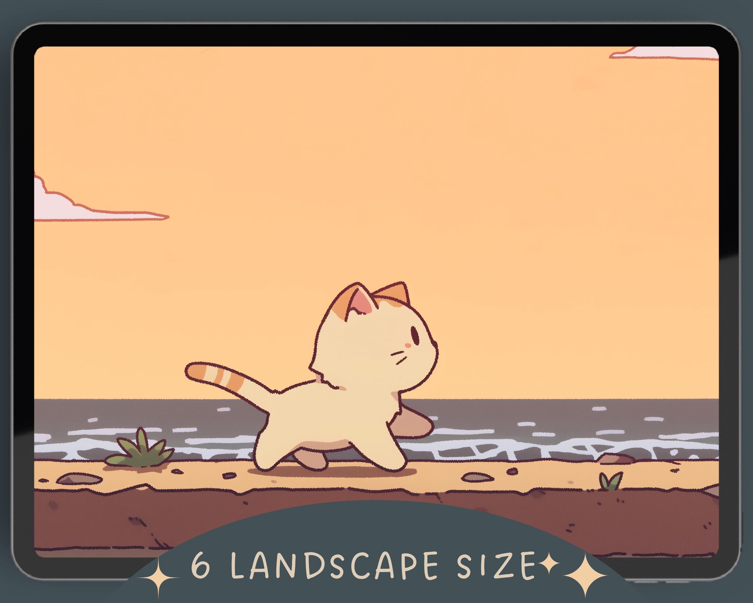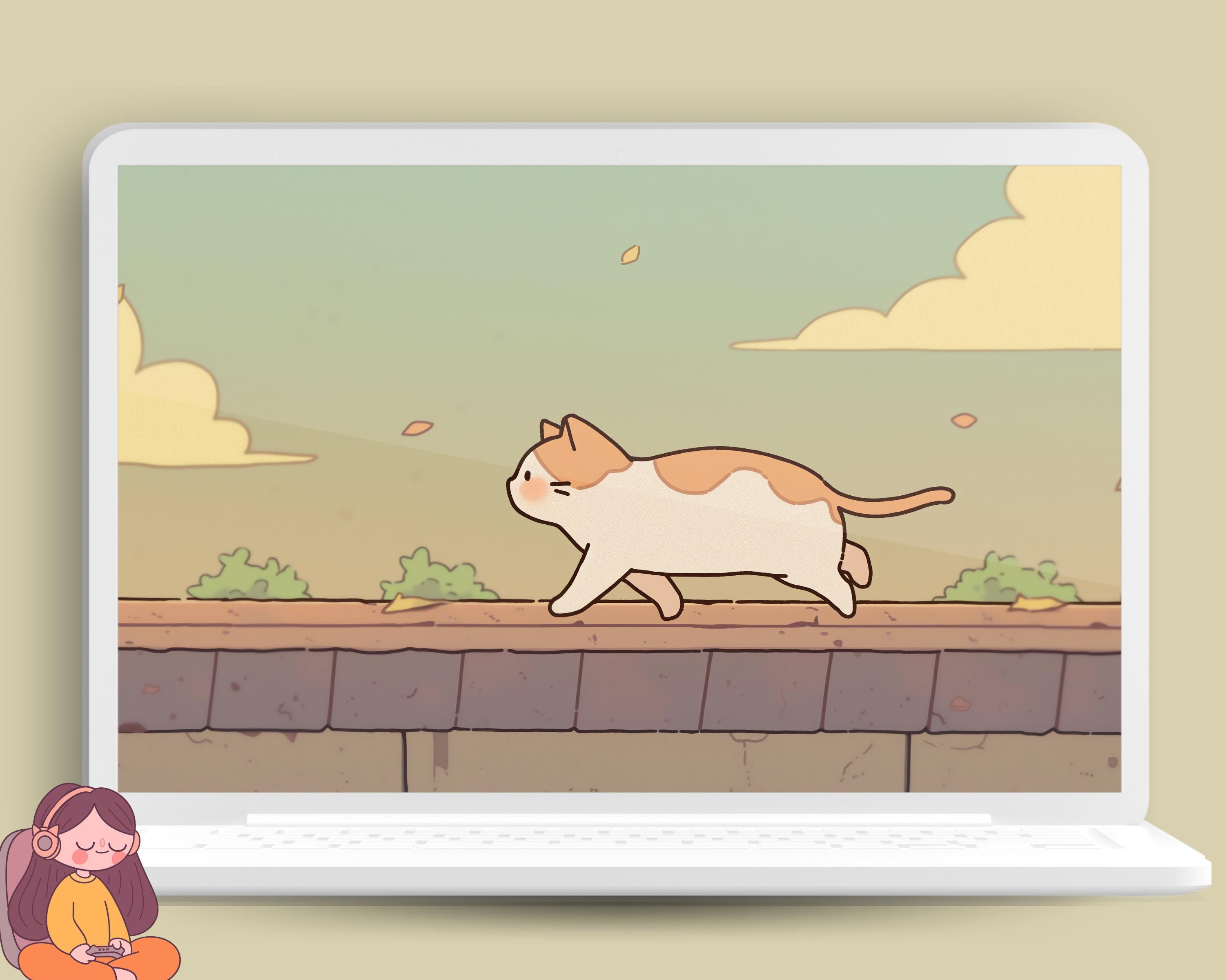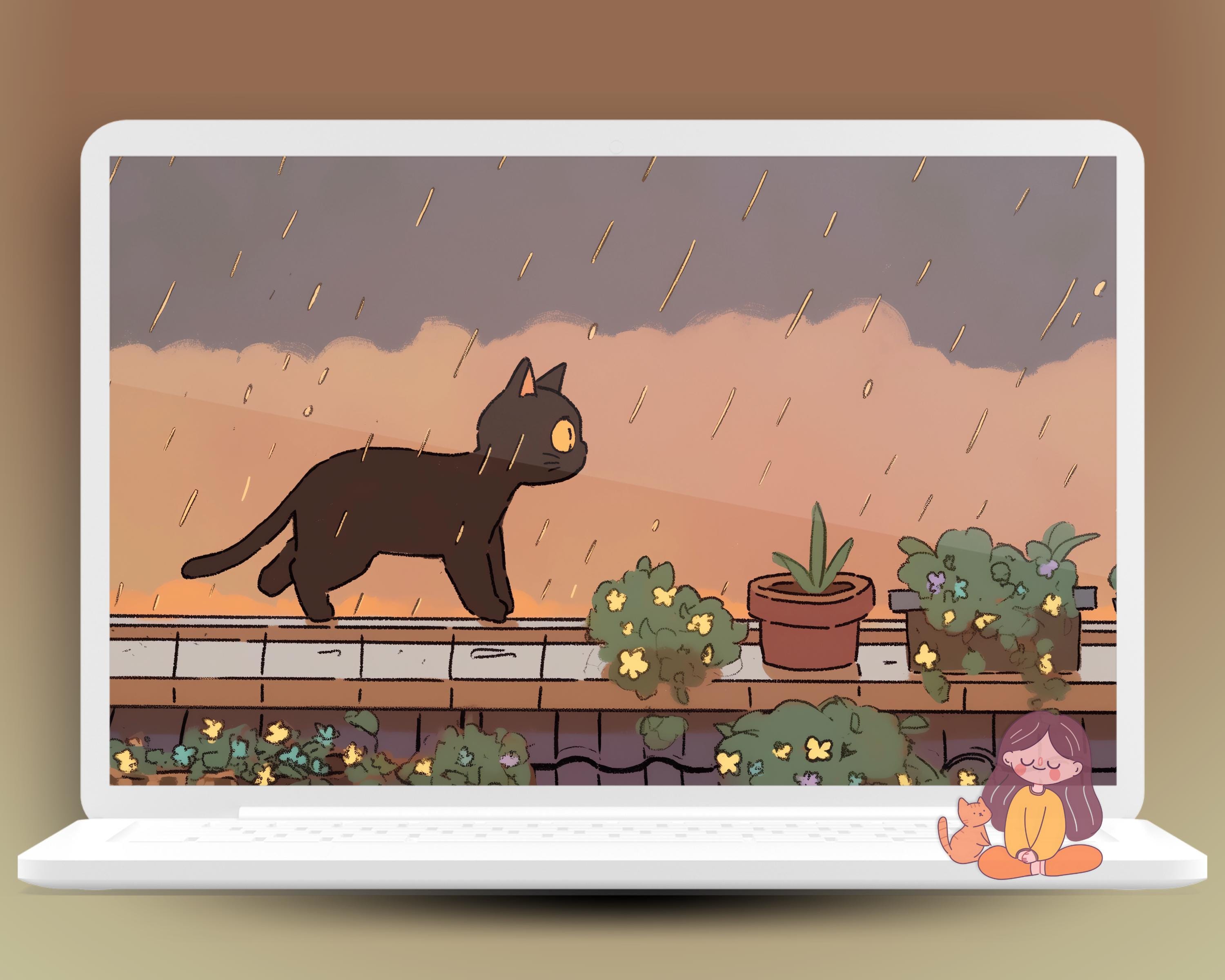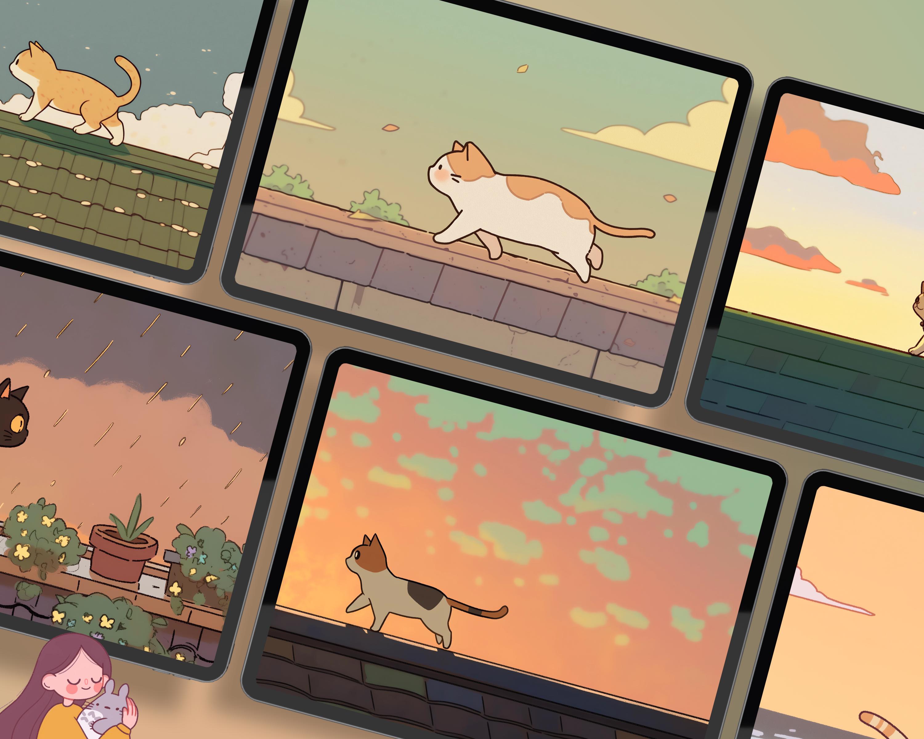 Cozy Cat on Roof Wallpaper Bundle: Anime Desktop & Phone (Digital Download)