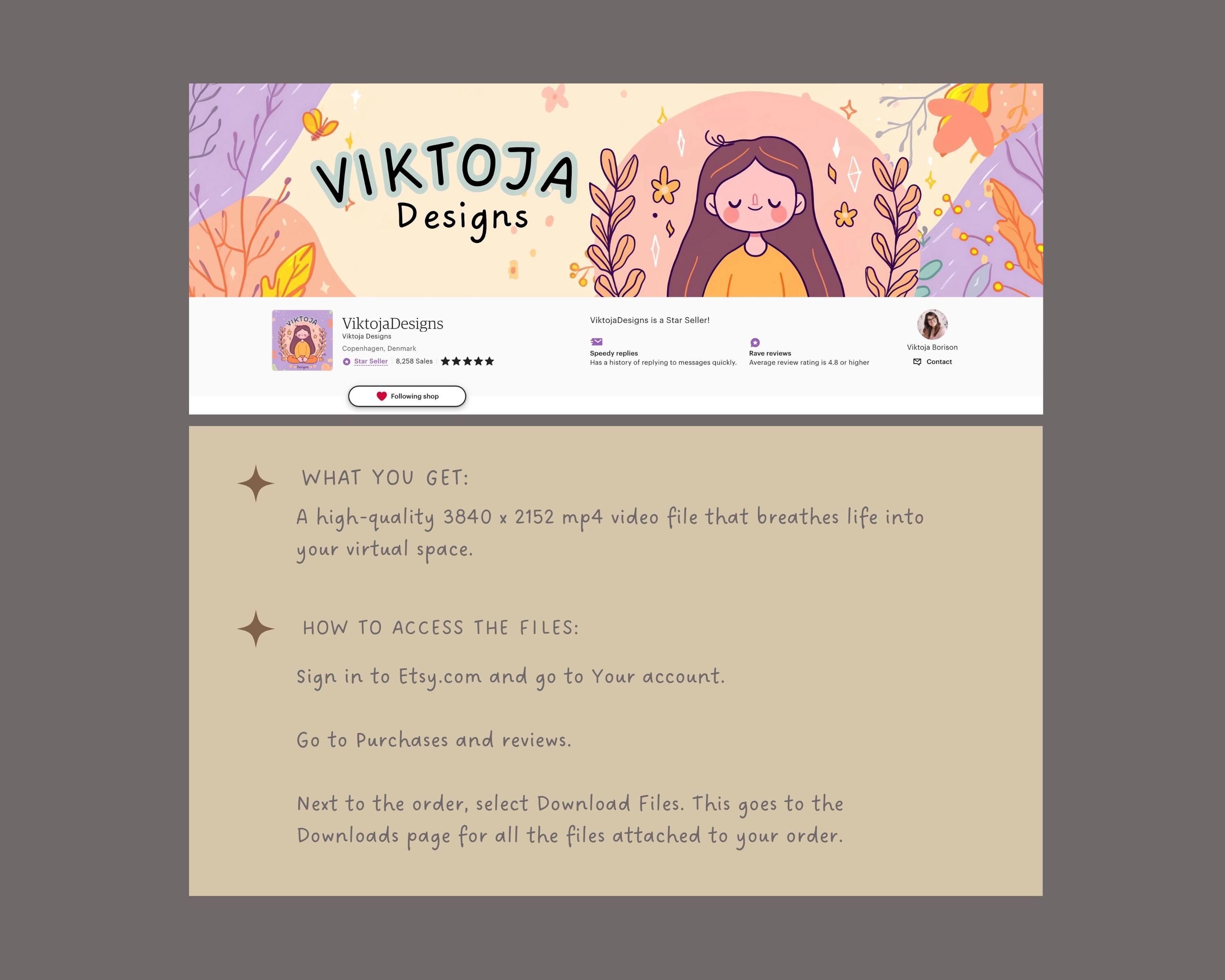 - A high-quality 3840 x 2152 mp4 video file that breathes life into your virtual space. 🌟