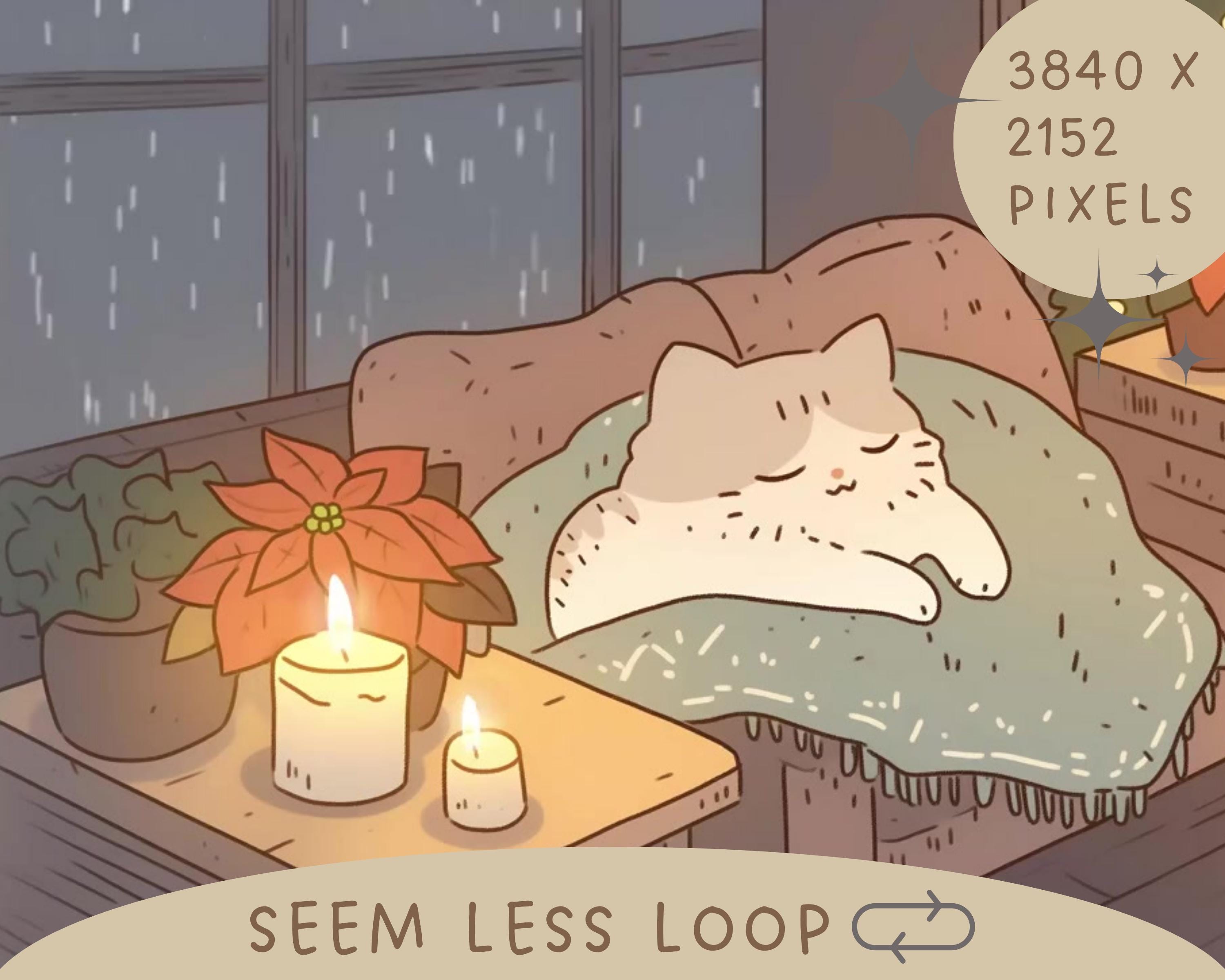 Cozy Cat Lofi Christmas Animated Vtuber Background (MP4)