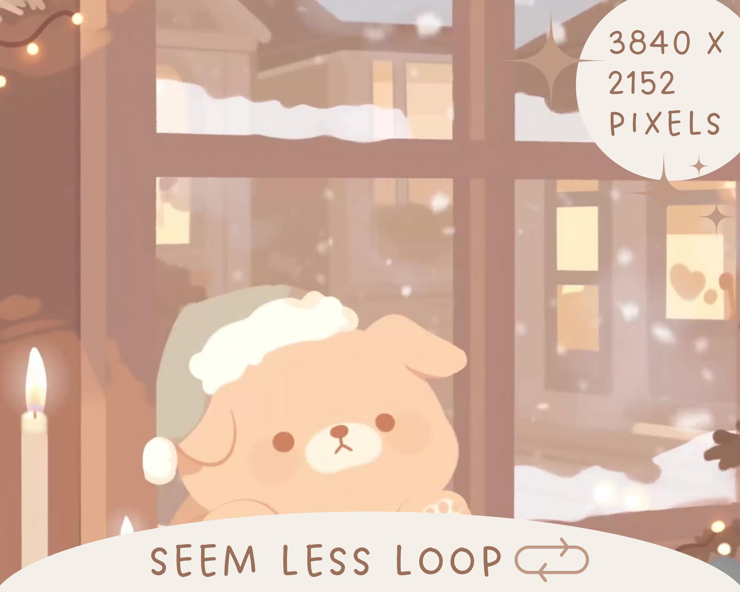 Winter Puppy Lofi Animated Vtuber Background: Cozy Stream Overlay (MP4)