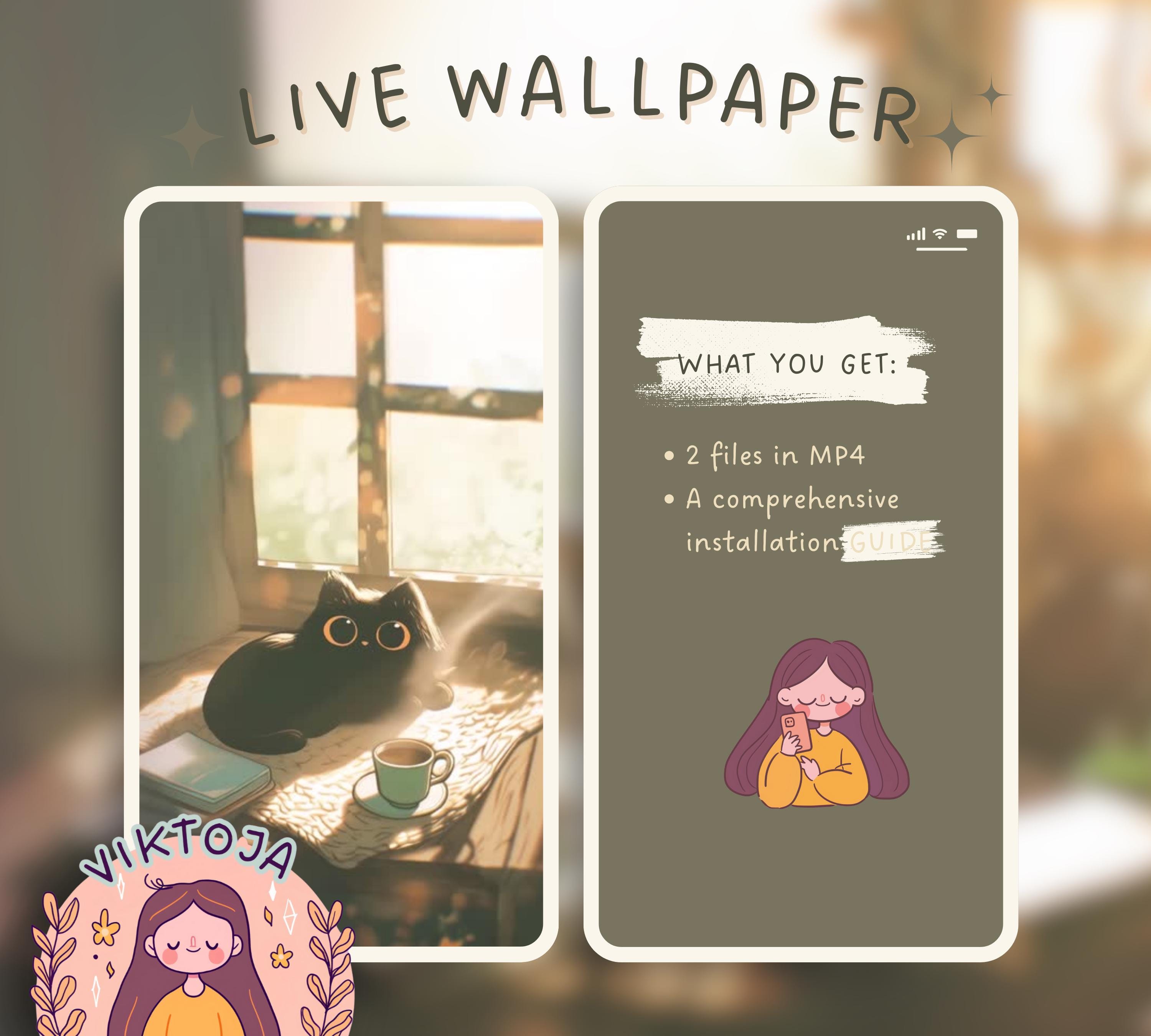 Black Cat Live Wallpaper: Kawaii Hygge iOS Android (MP4 & PNG)