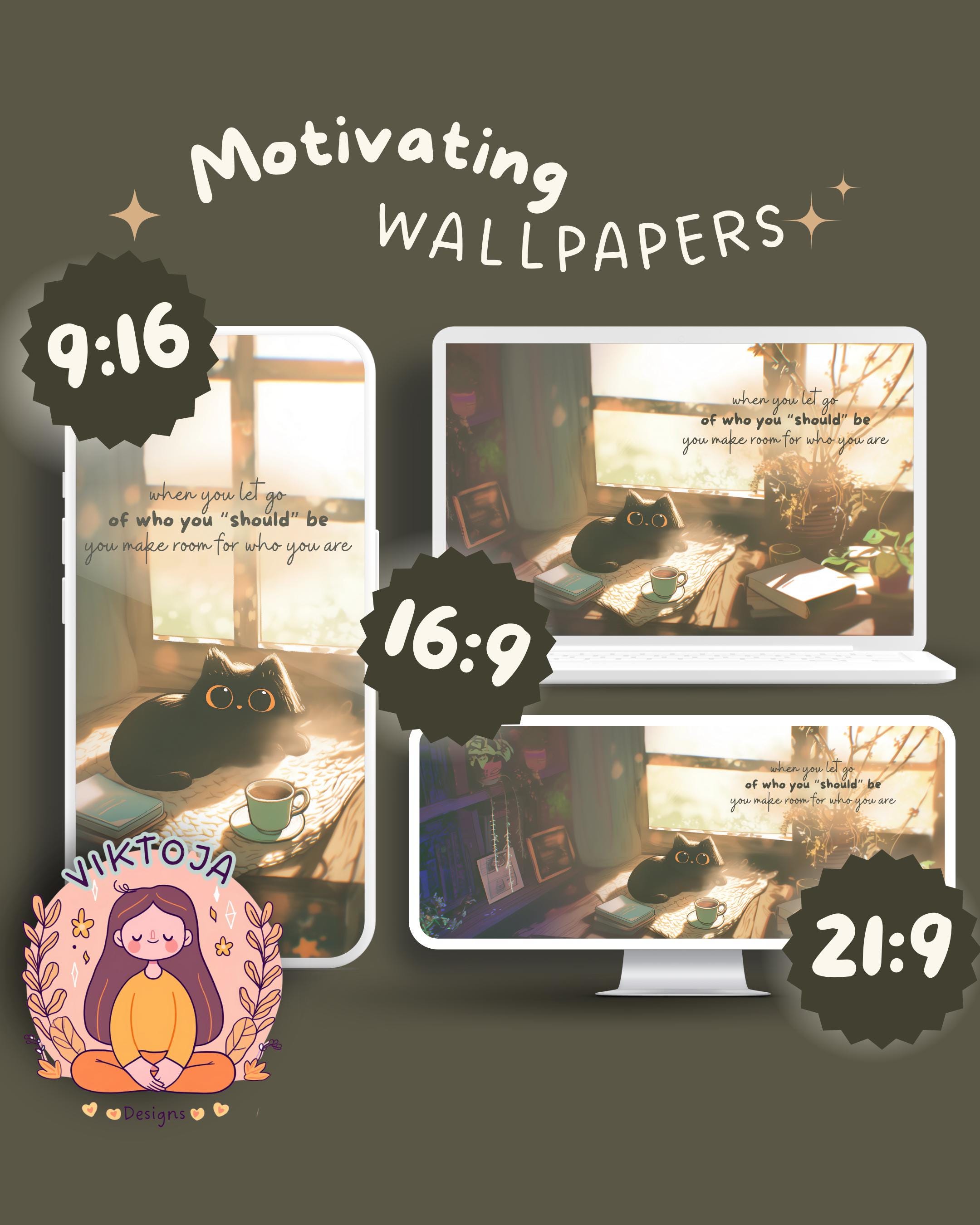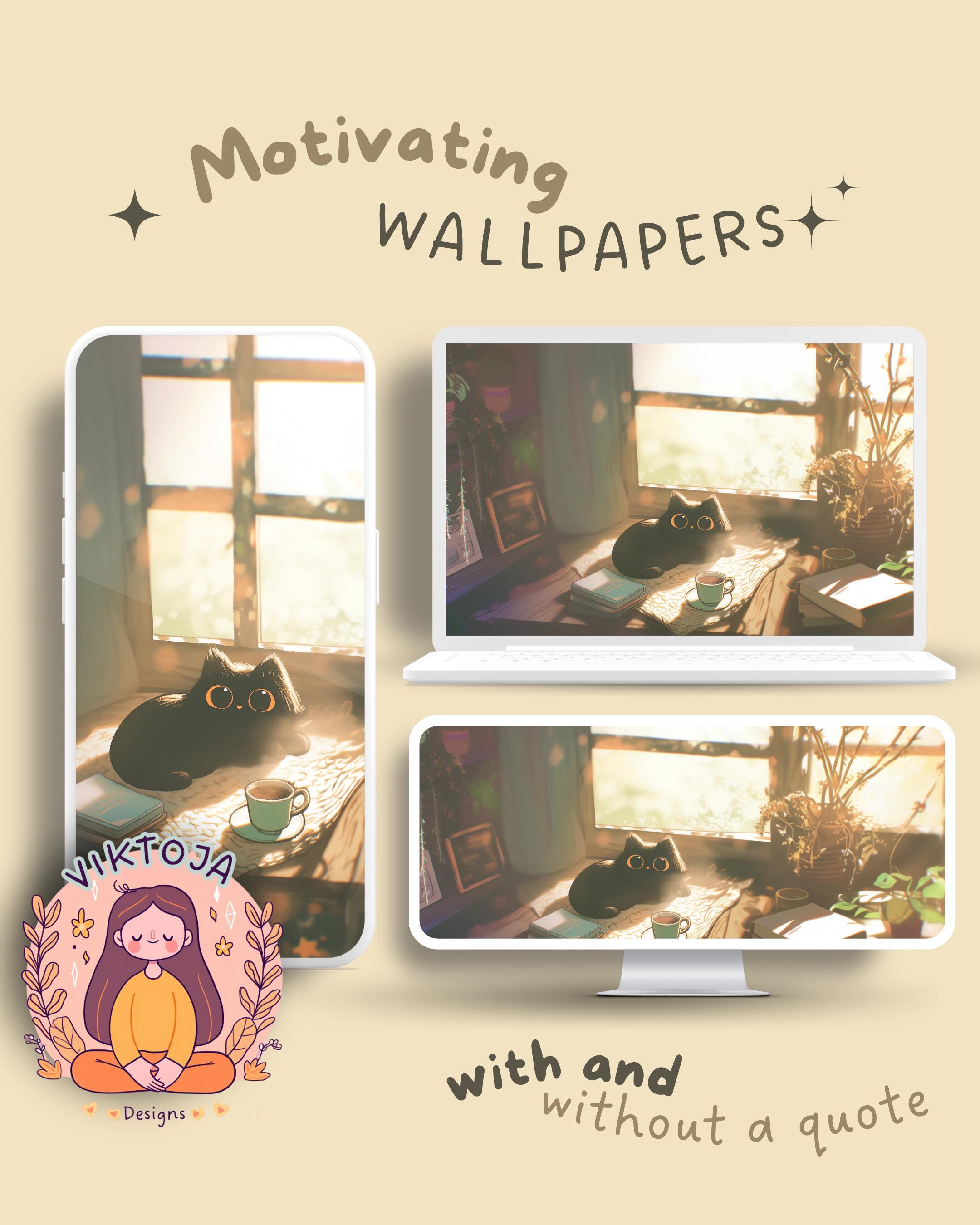 Black Cat Wallpaper Set, Pastel Screens (Digital Download)