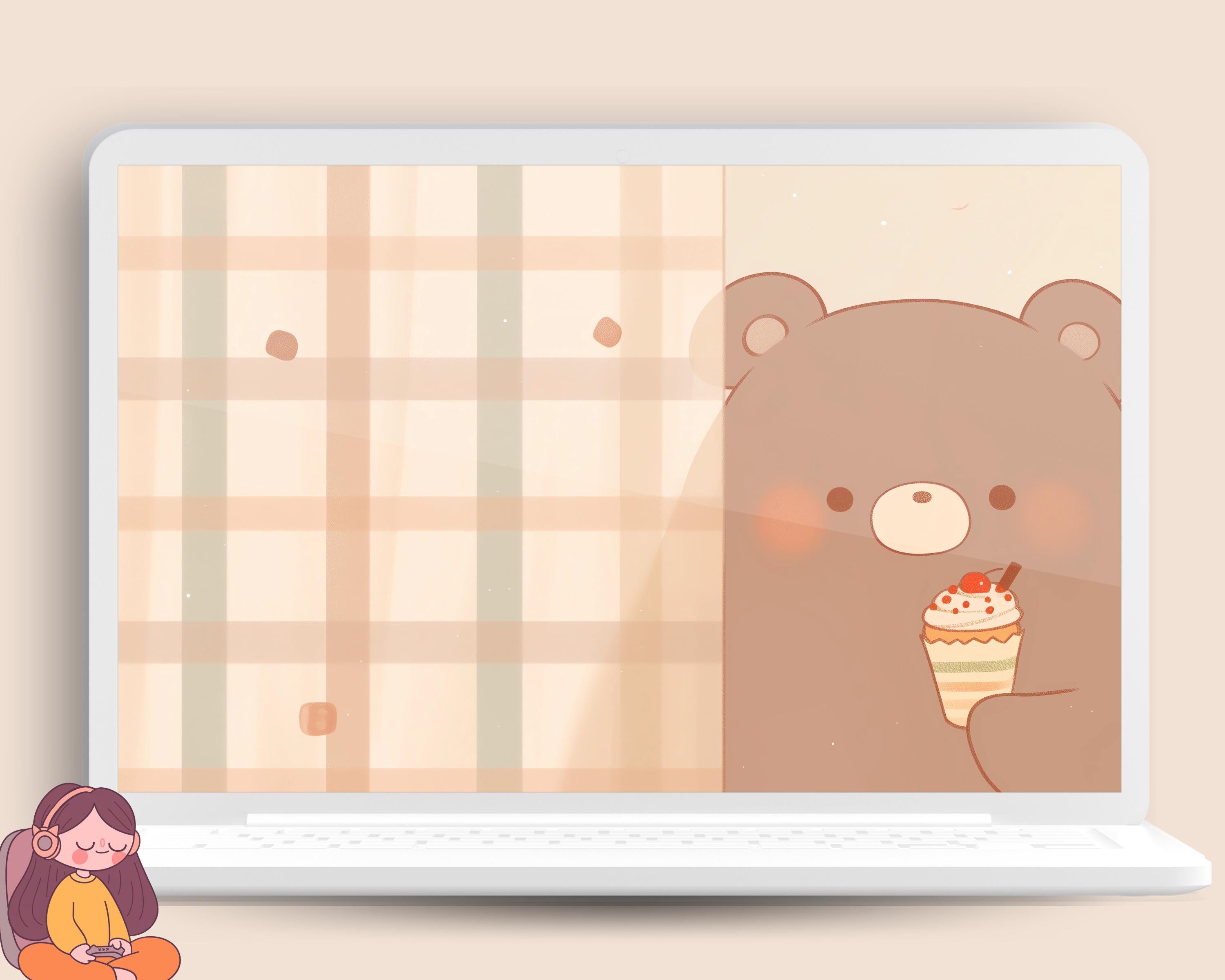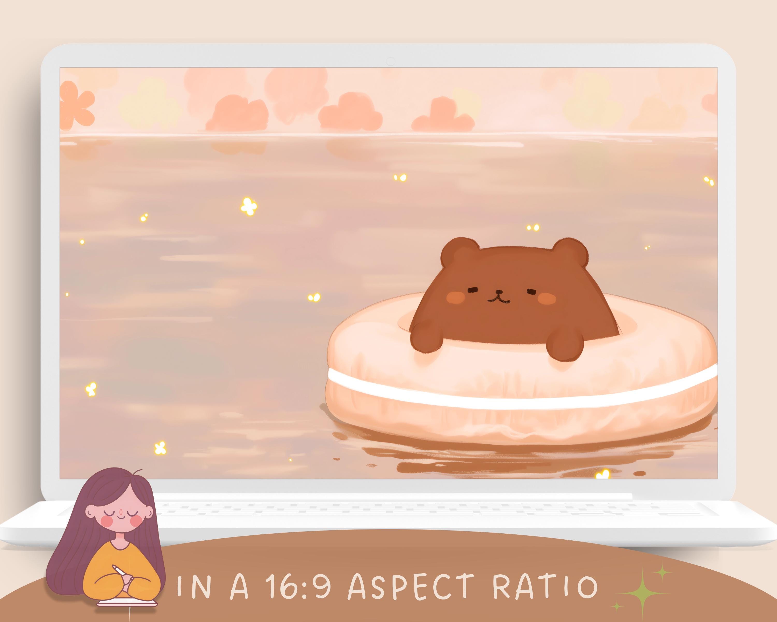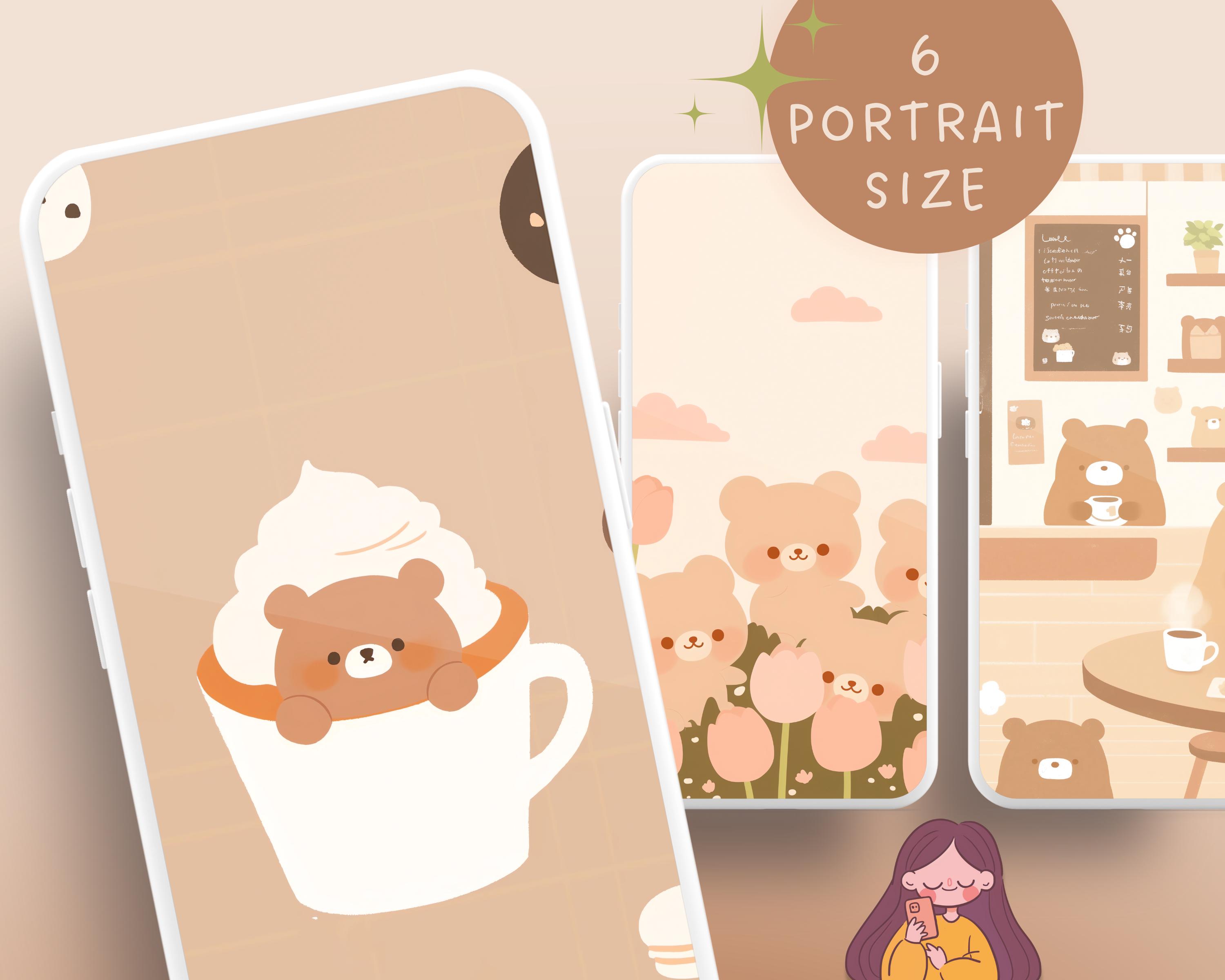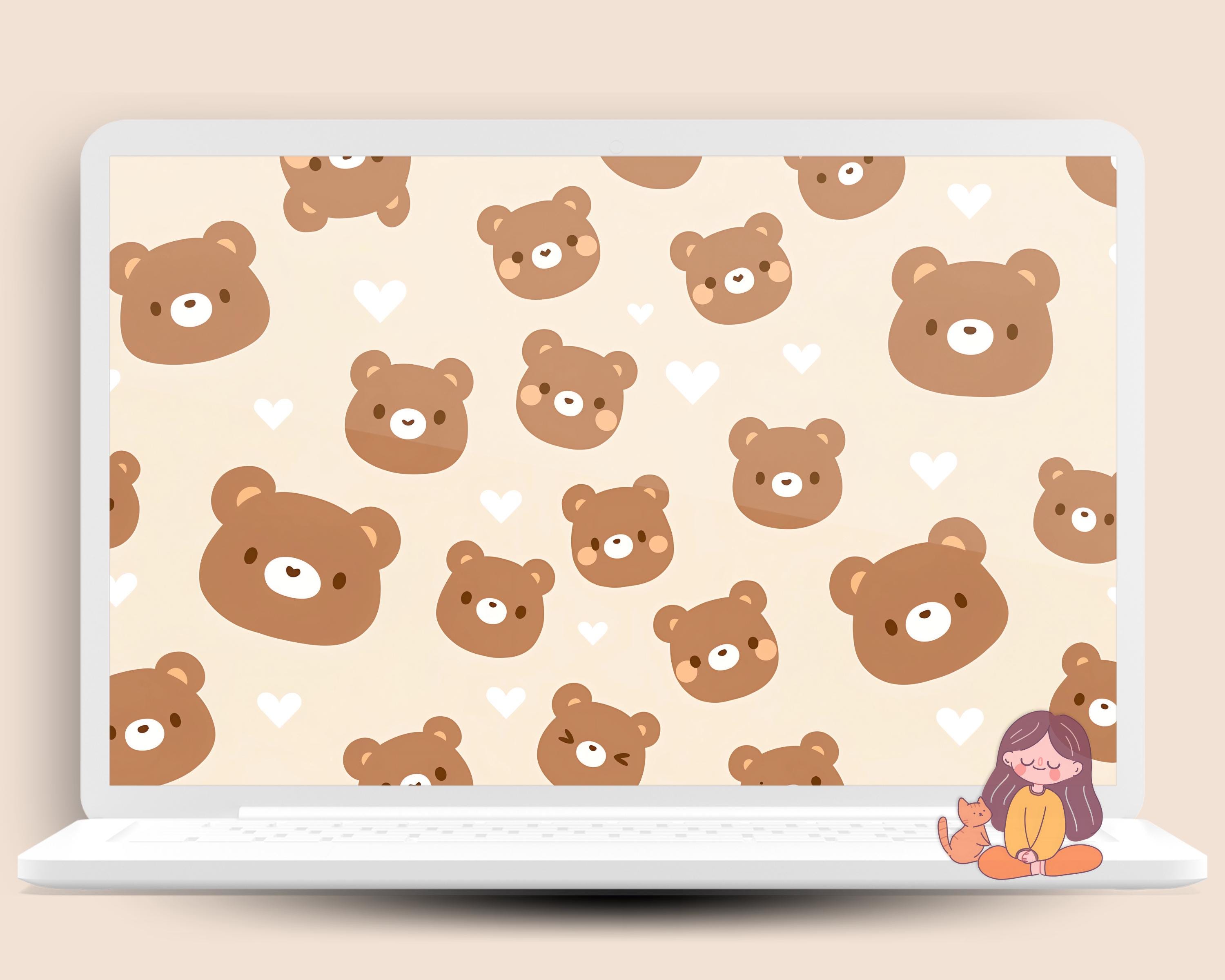 Kawaii Brown Bear Wallpaper: Pastel Flower Backgrounds (Digital Download)