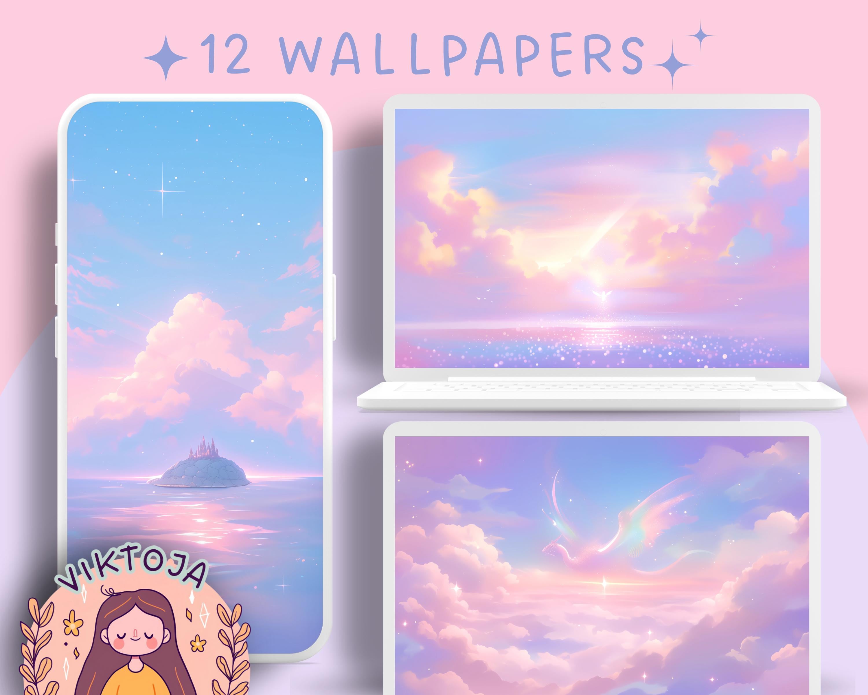 Bring a touch of coziness to your devices with this set of 12 dreamy pastel wallpapers! Featuring beautiful aesthetic scenes these high-res JPG files will fit perfectly on your phone or computer/tablet screens.