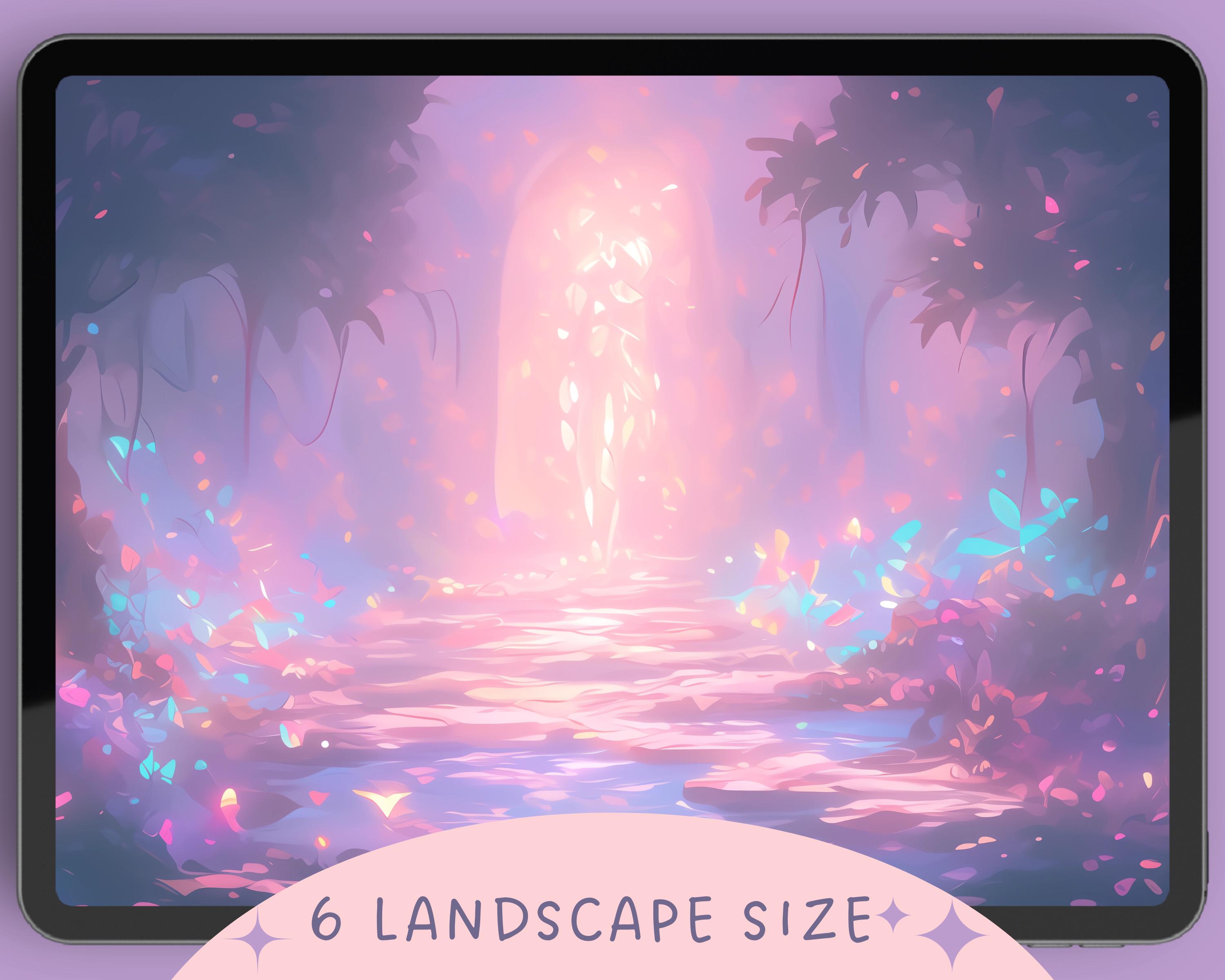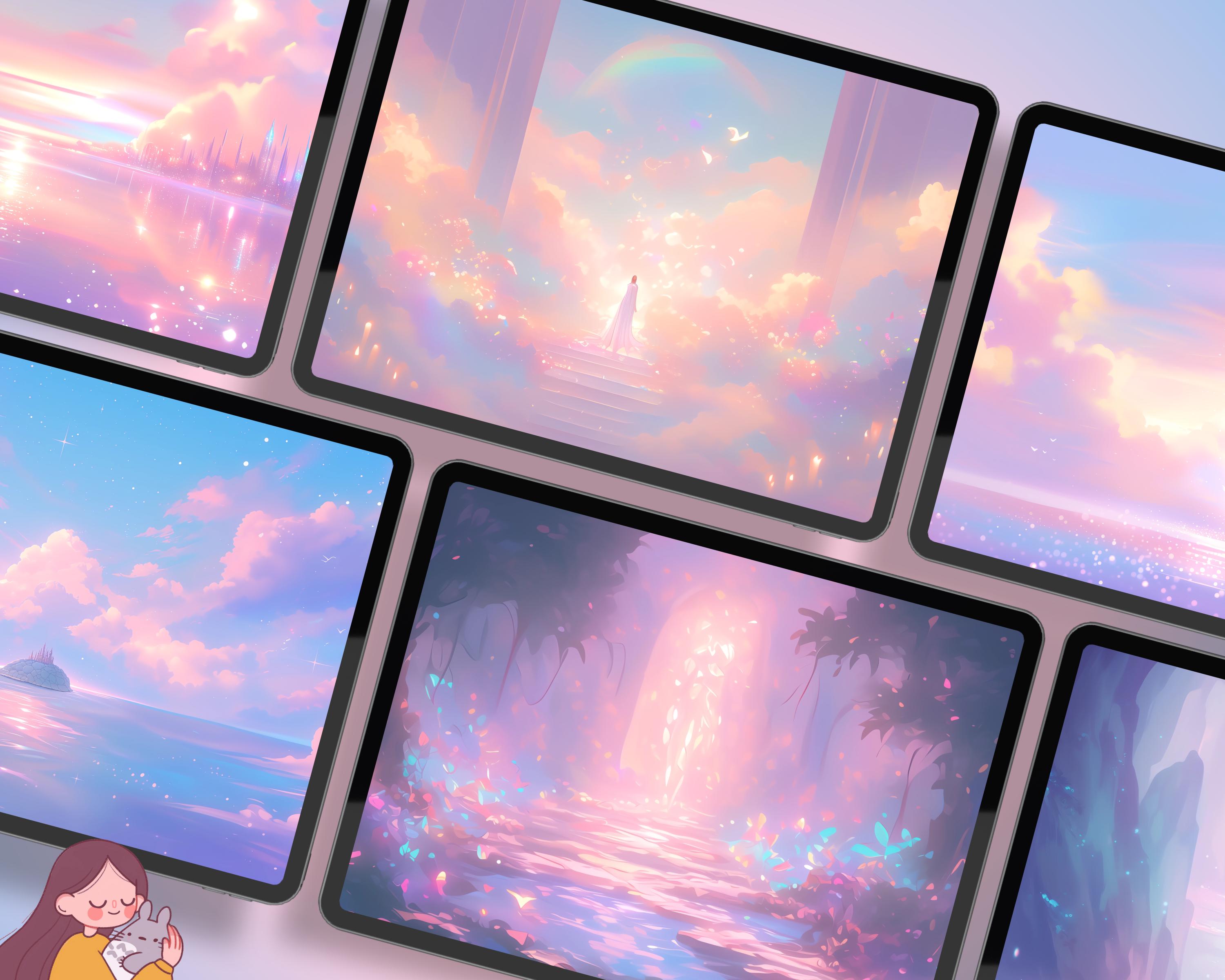 Pastel Meadow Wallpaper Set, Dreamy Anime Style (Digital Download)