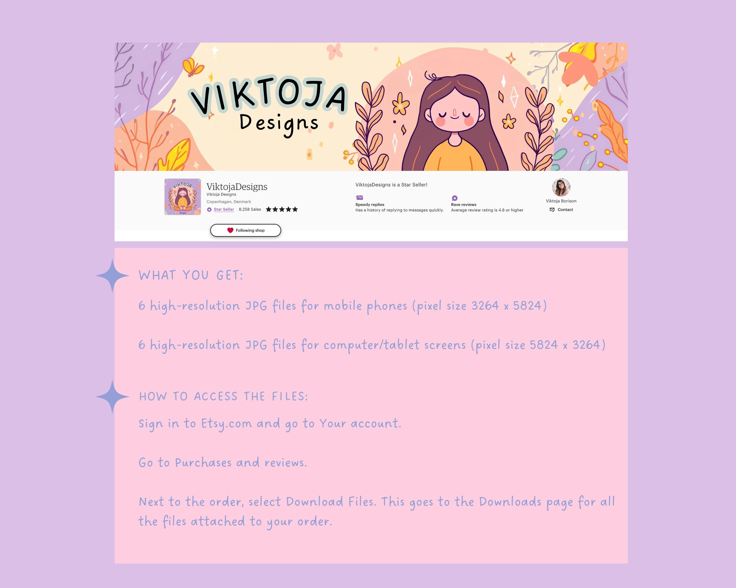 After purchase, you'll receive a PDF file with a link to download your wallpapers.