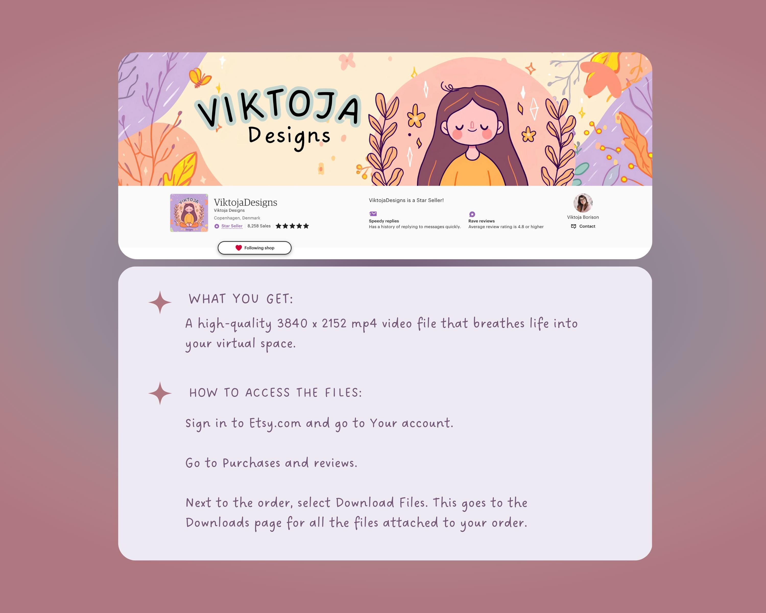- A high-quality 3840 x 2152 mp4 video file that breathes life into your virtual space. 🌟