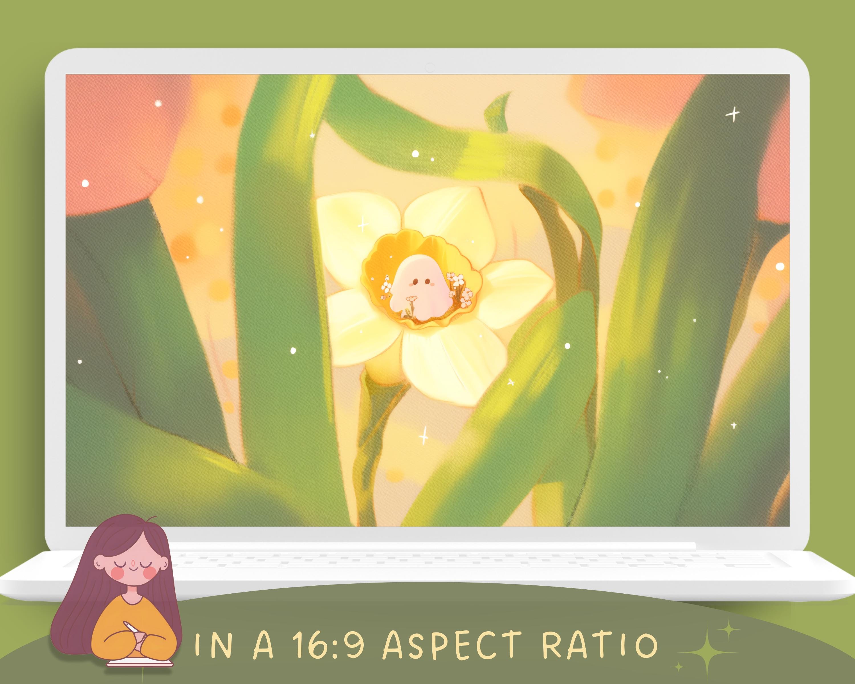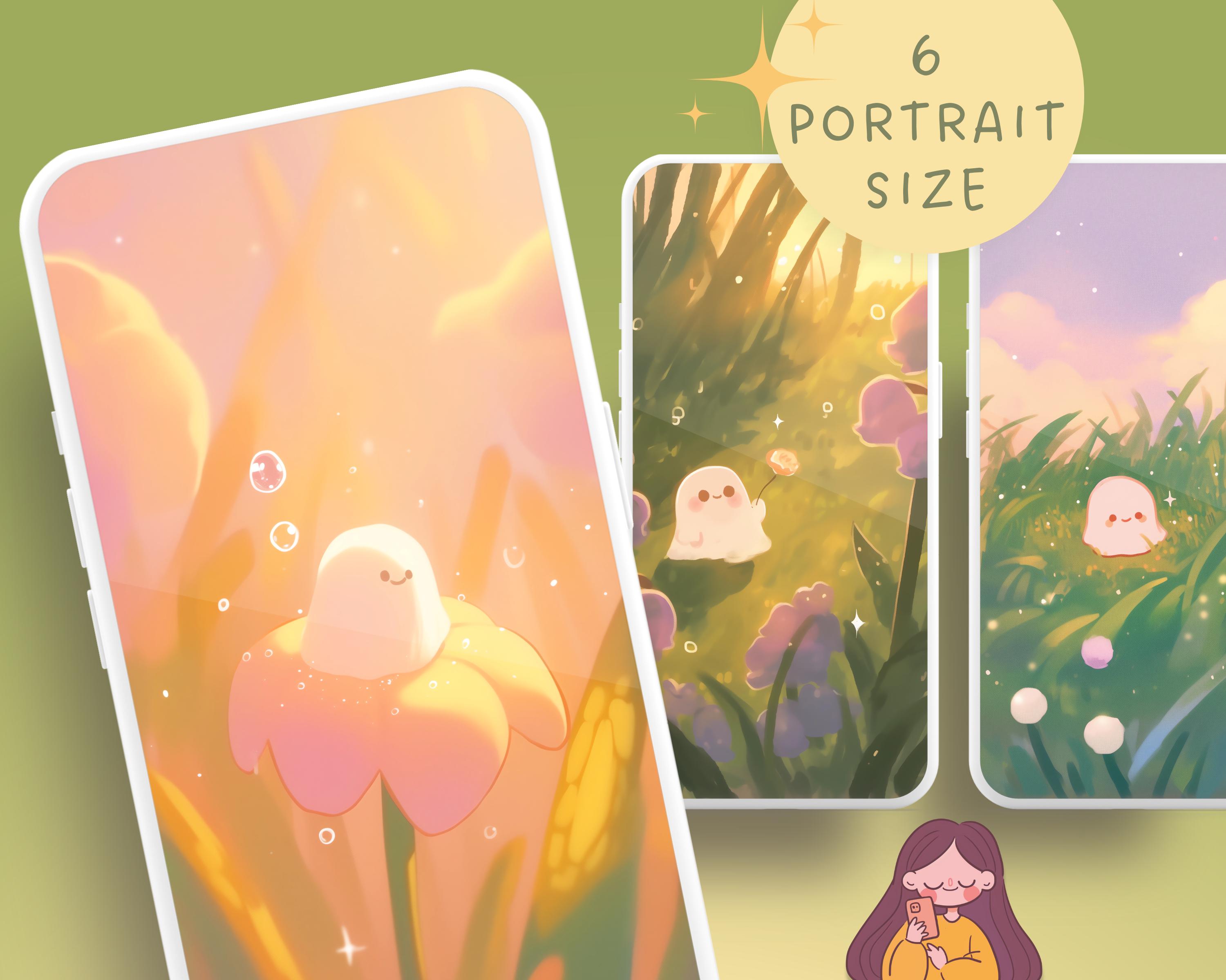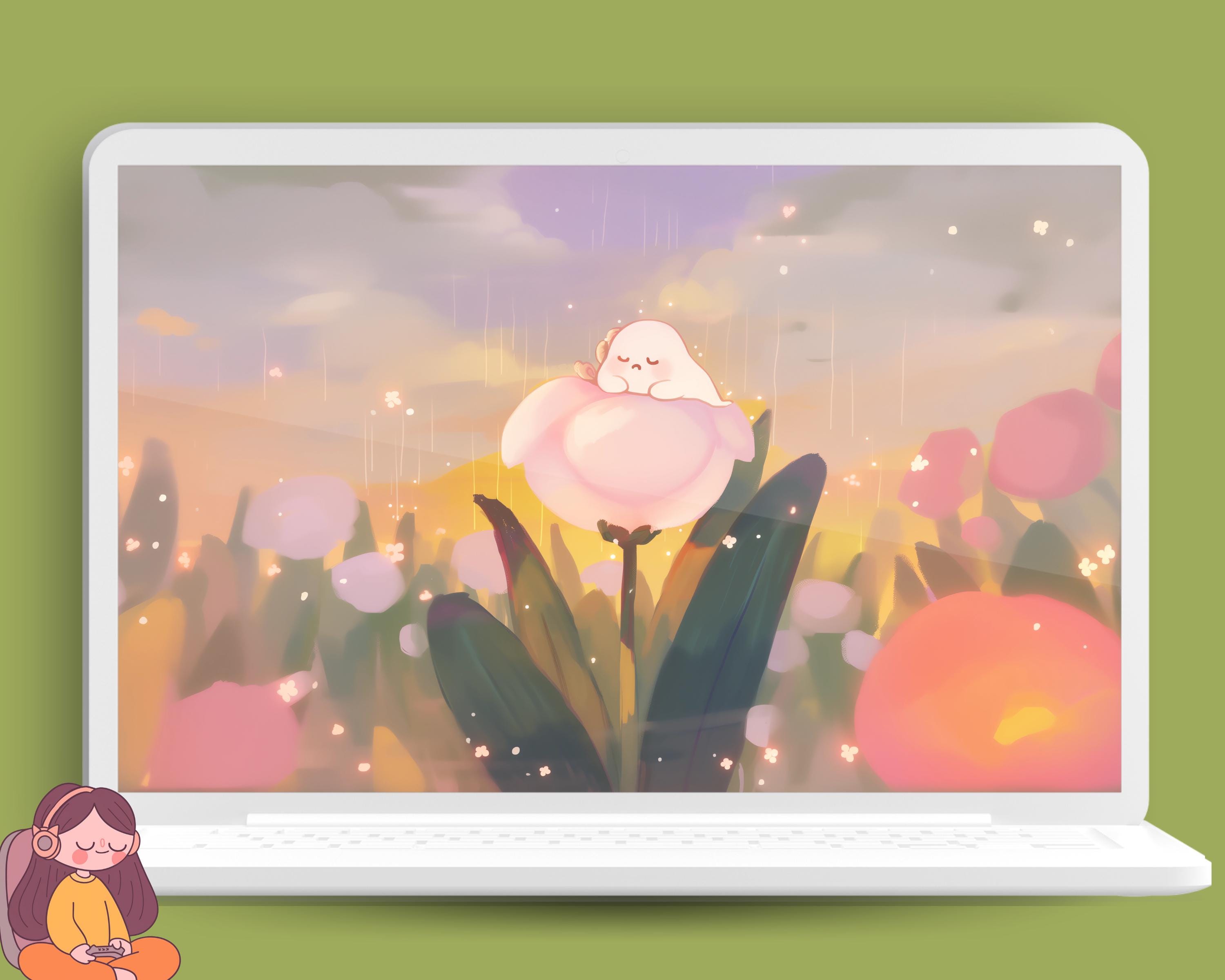 Kawaii Spring Ghost Wallpaper, Pastel Flower Screensaver (Digital Download)