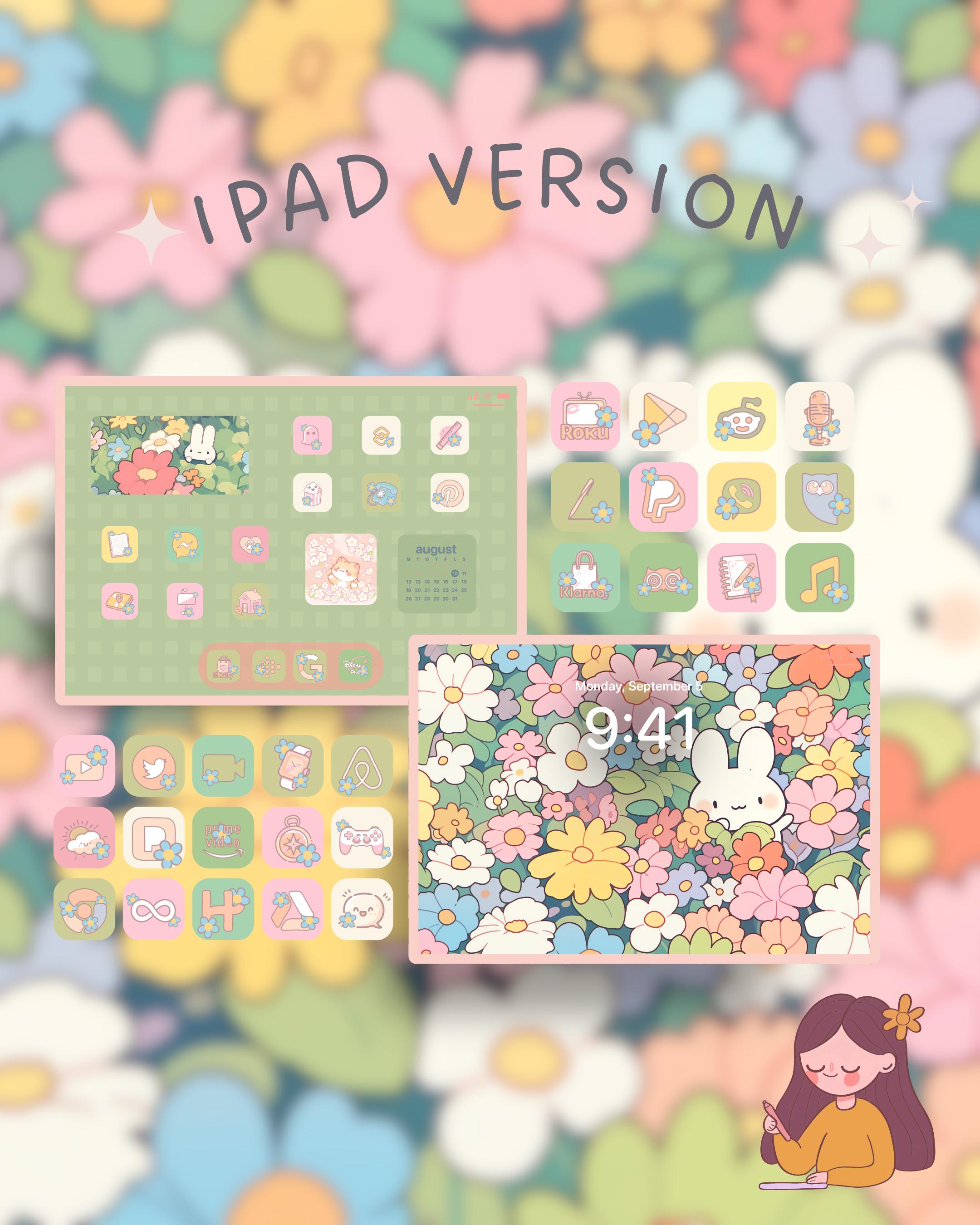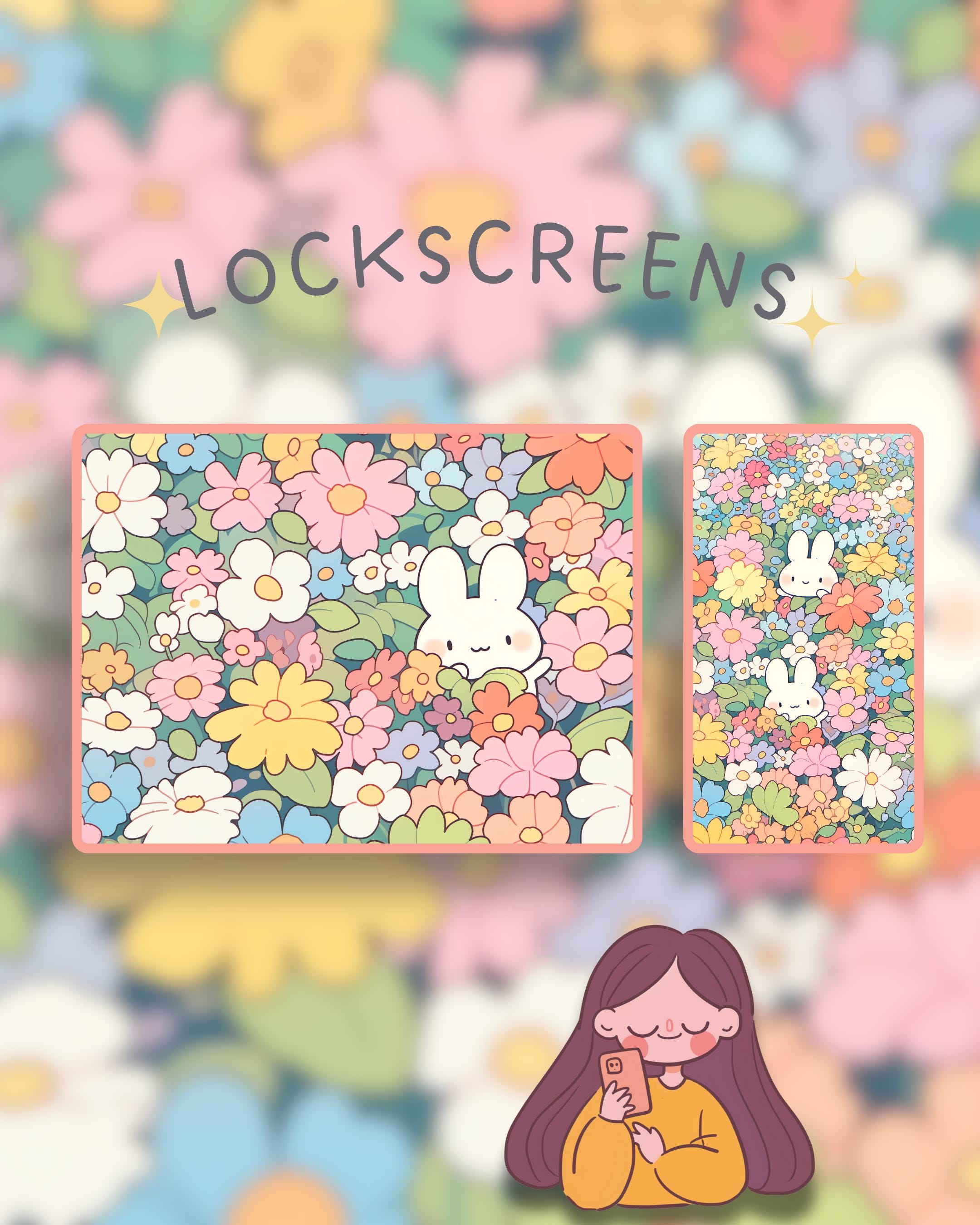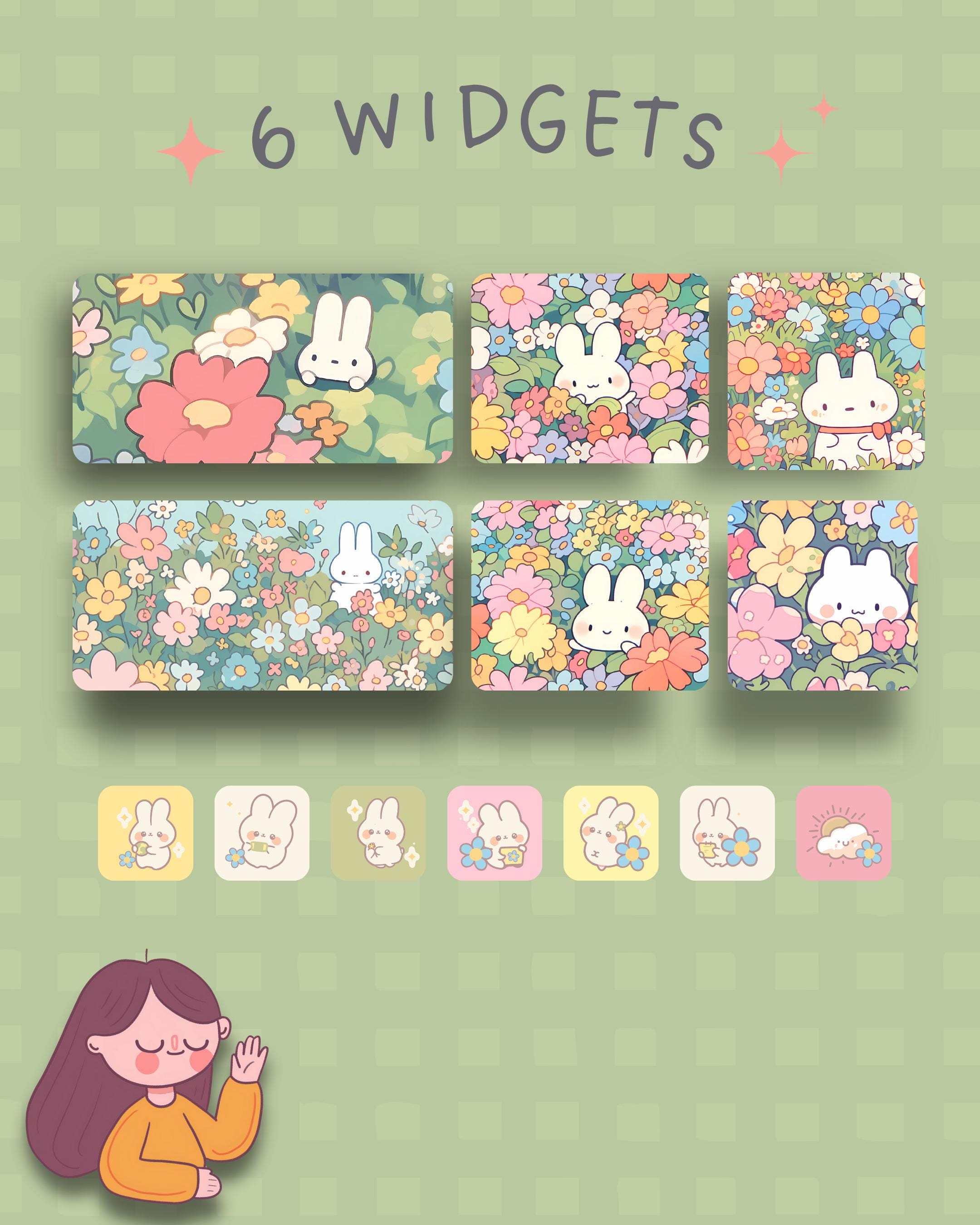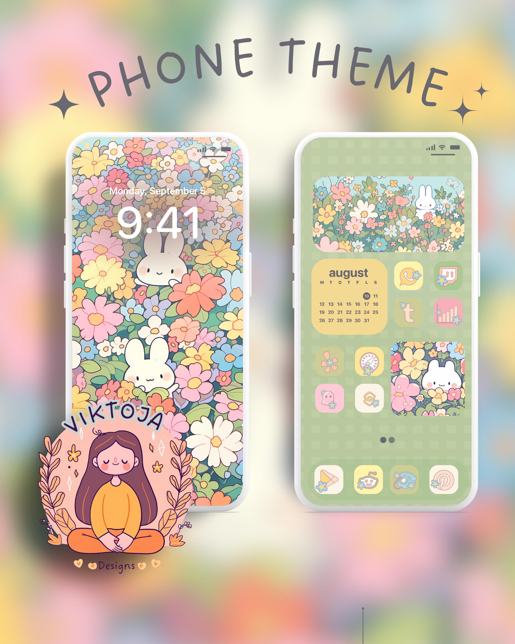 Flower Bunny Phone Theme: iOS & Android Icons, Wallpaper (Digital Download)