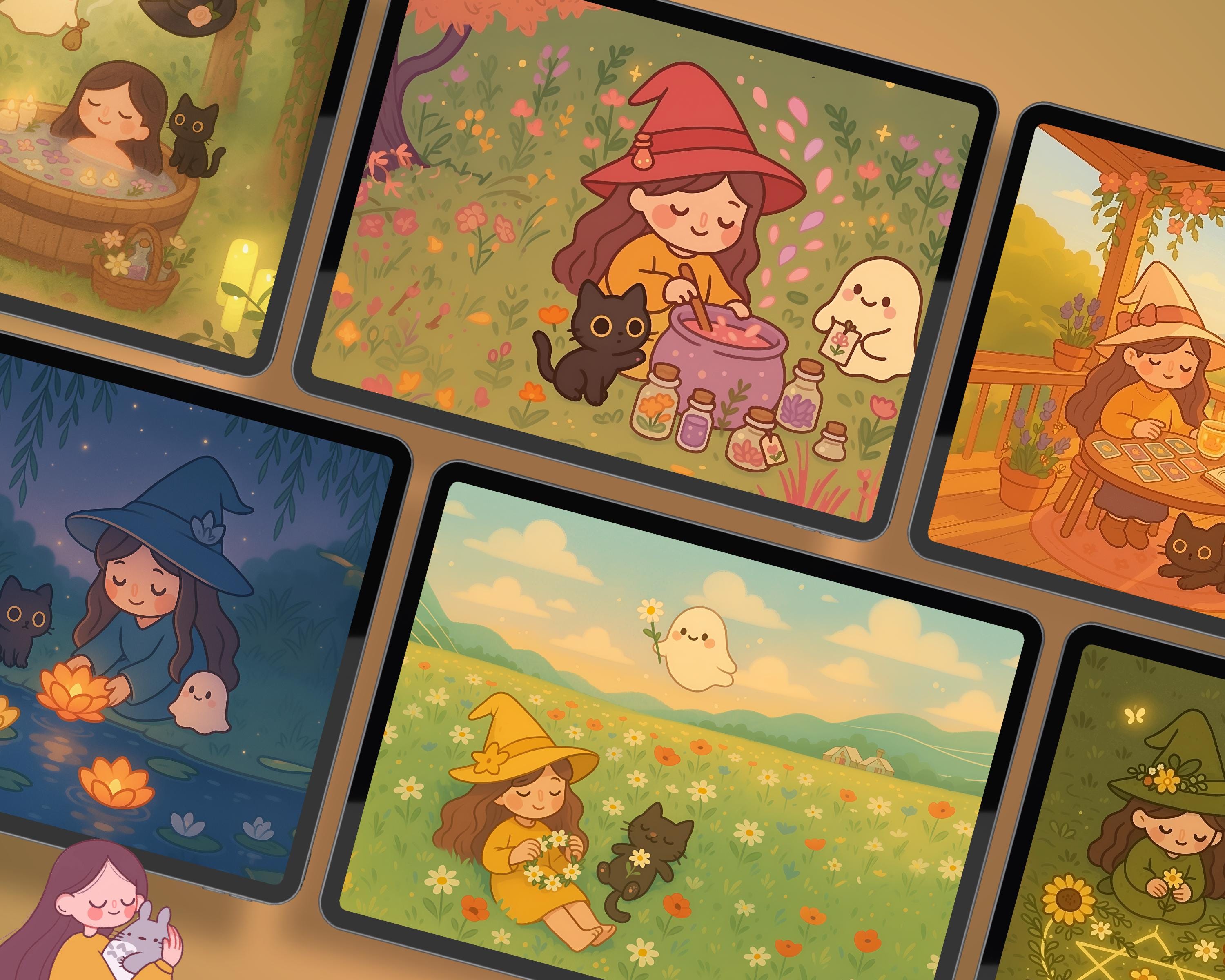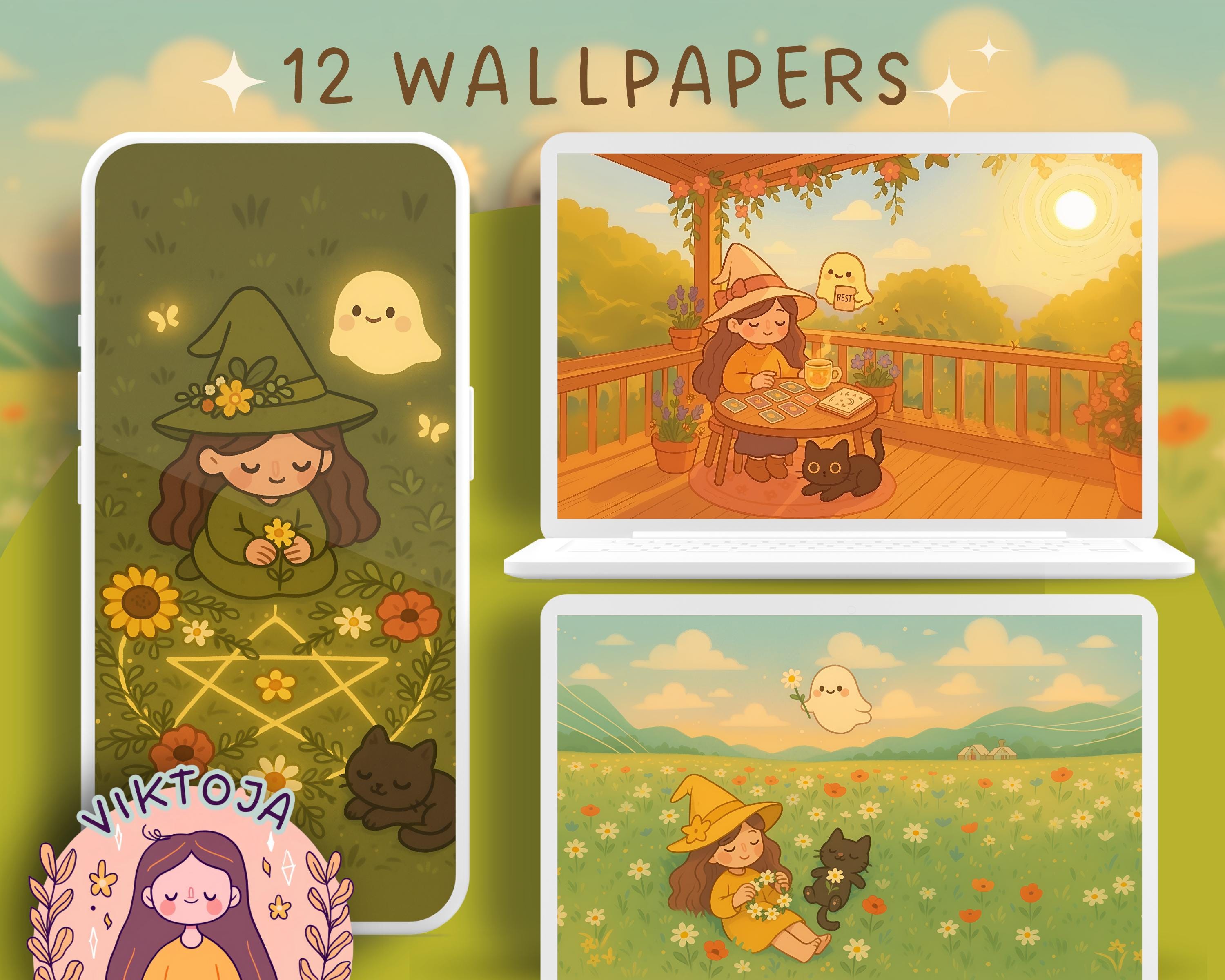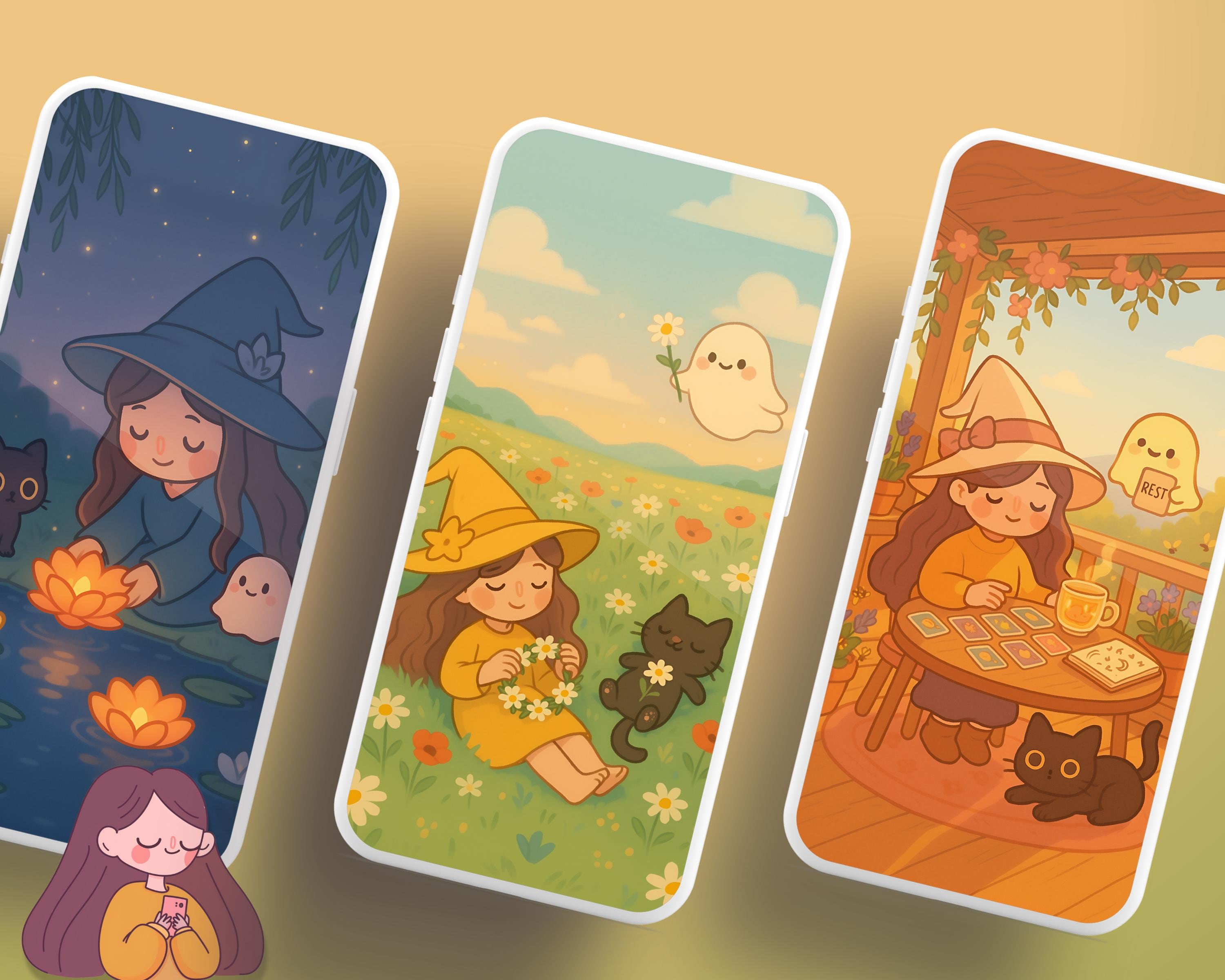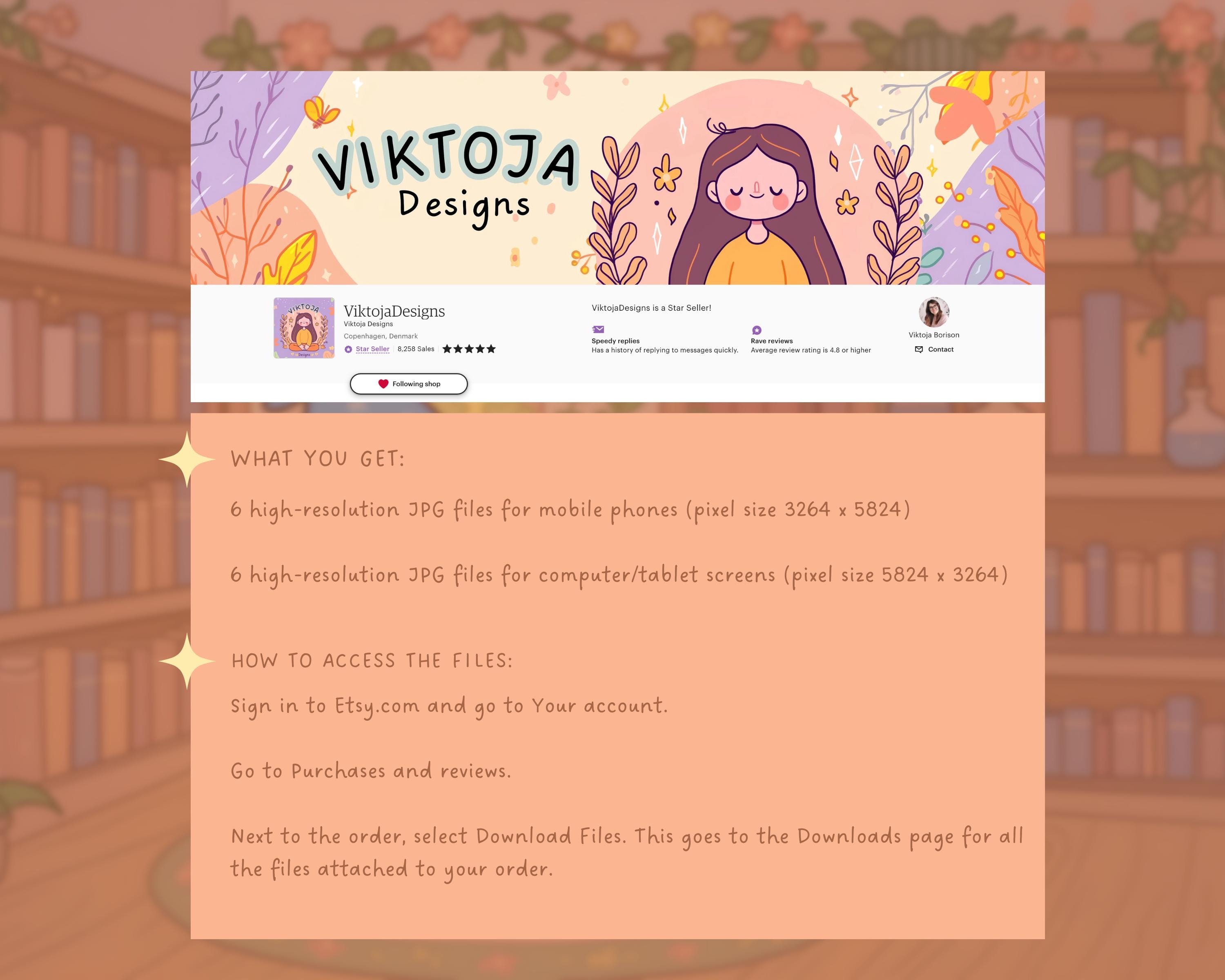Bring a touch of coziness to your devices with this set of 12 wallpapers! Featuring beautiful aesthetic scenes these high-res JPG files will fit perfectly on your phone or computer/tablet screens.