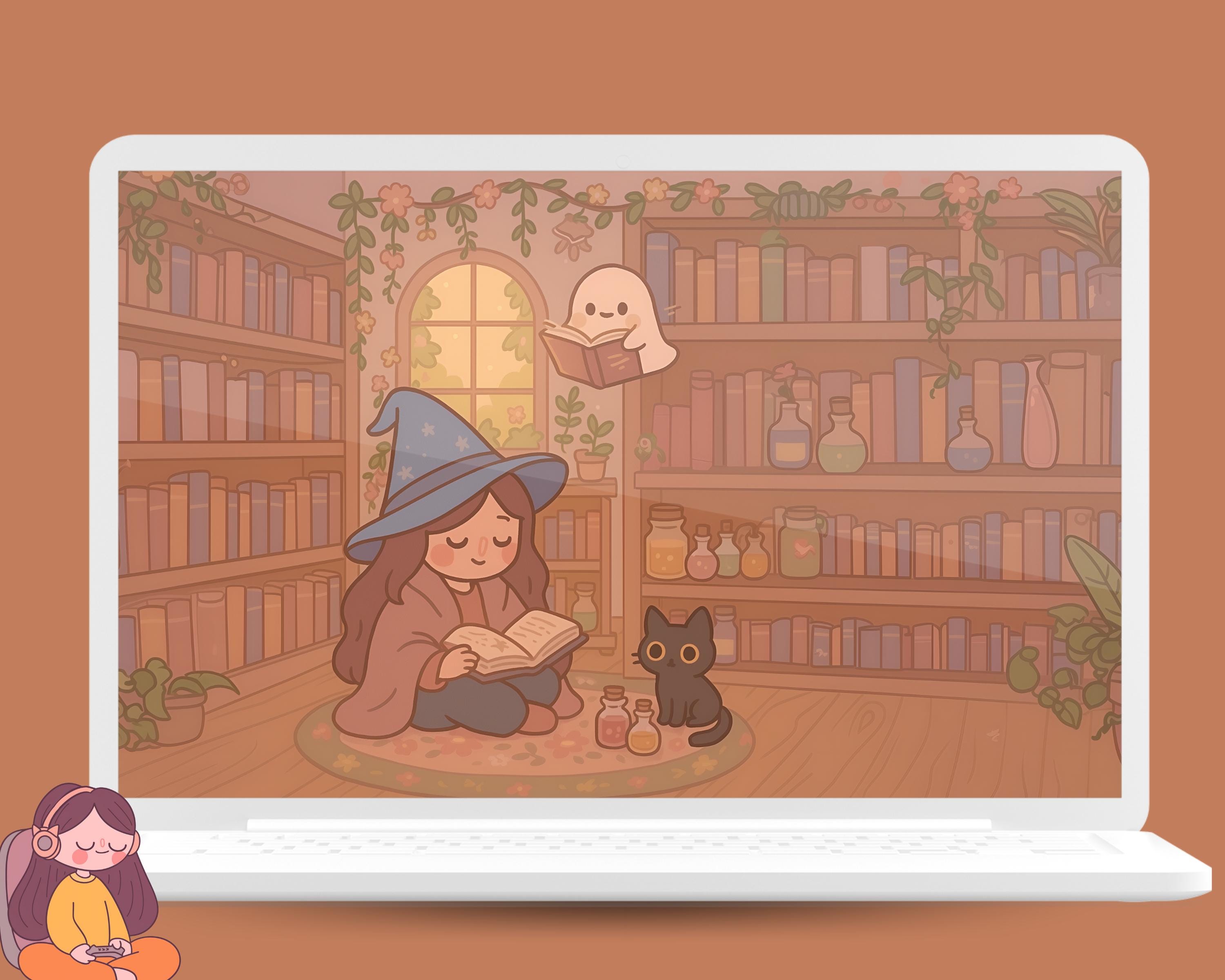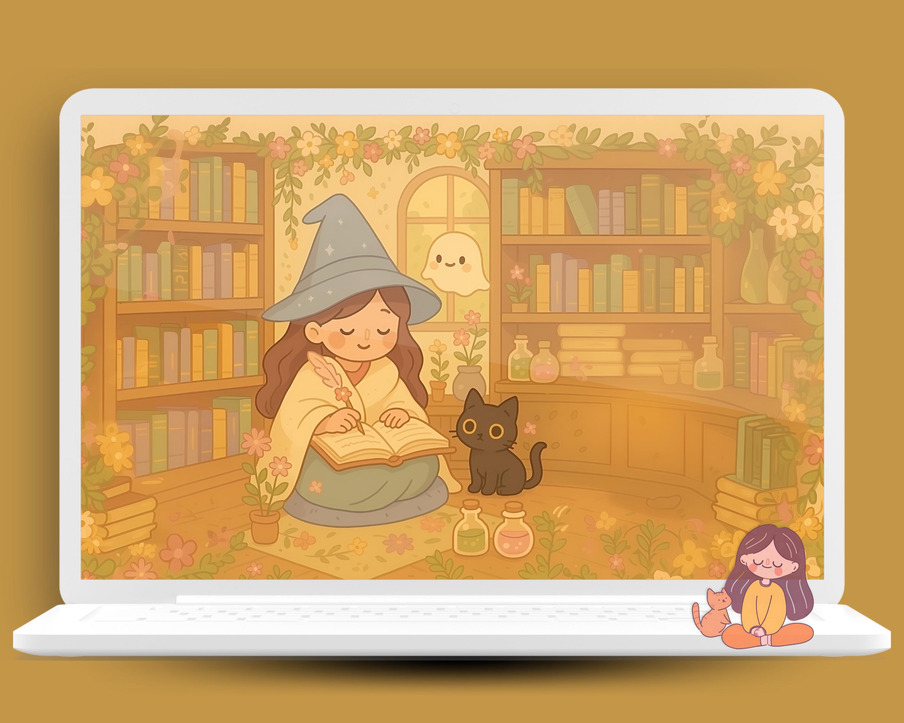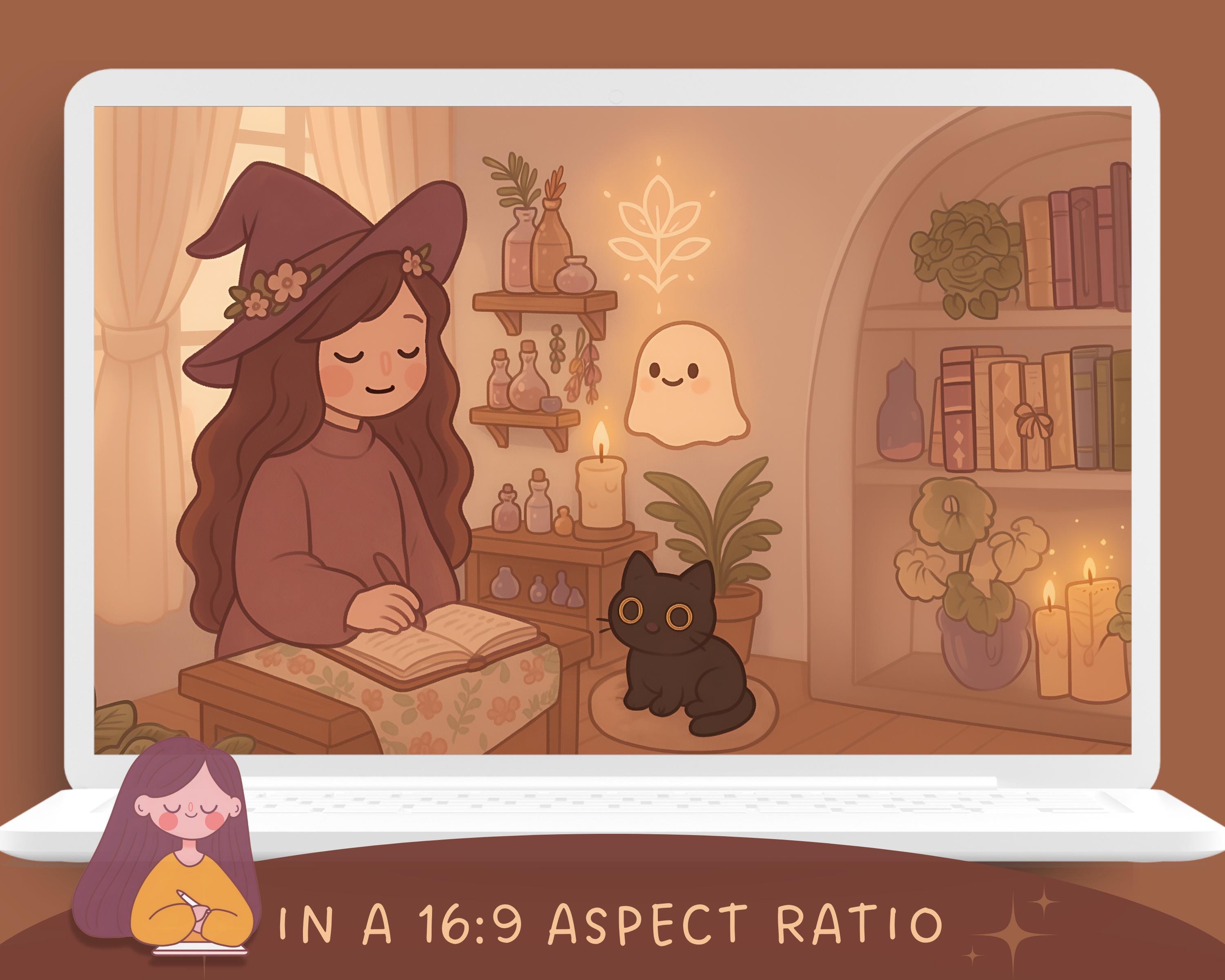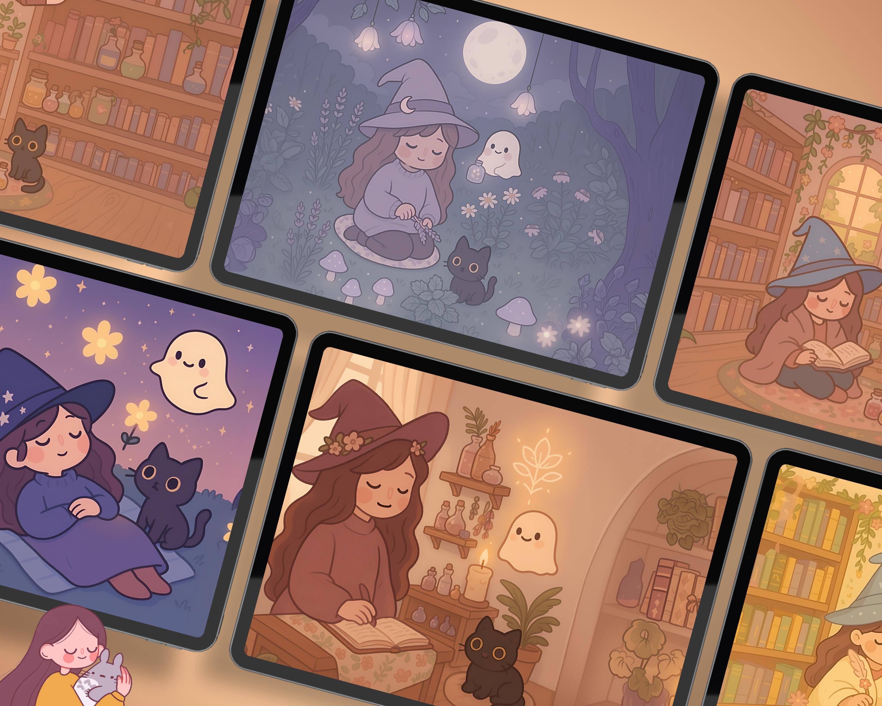 Kawaii Witch Wallpaper Set for Phone & Desktop (Digital Download)
