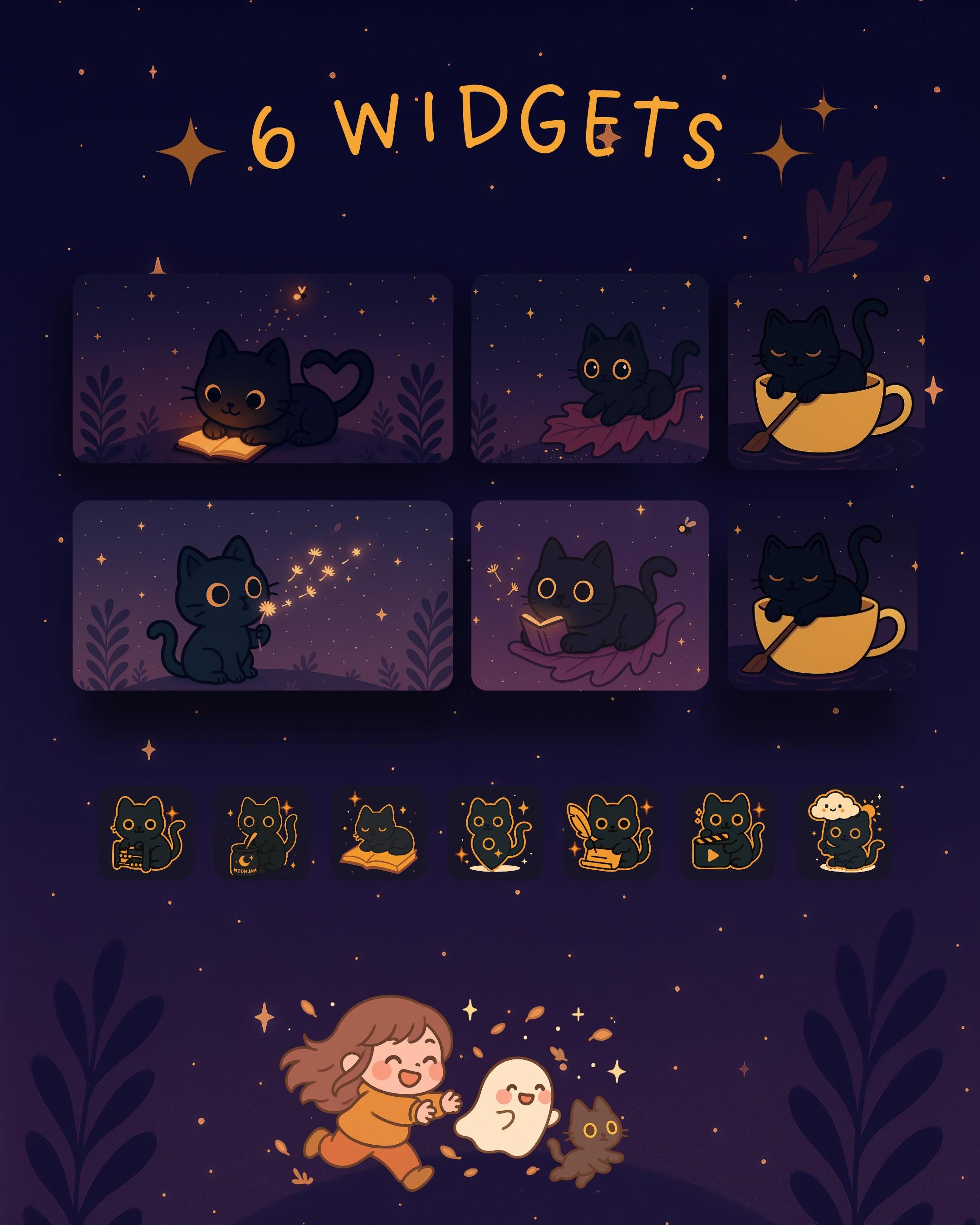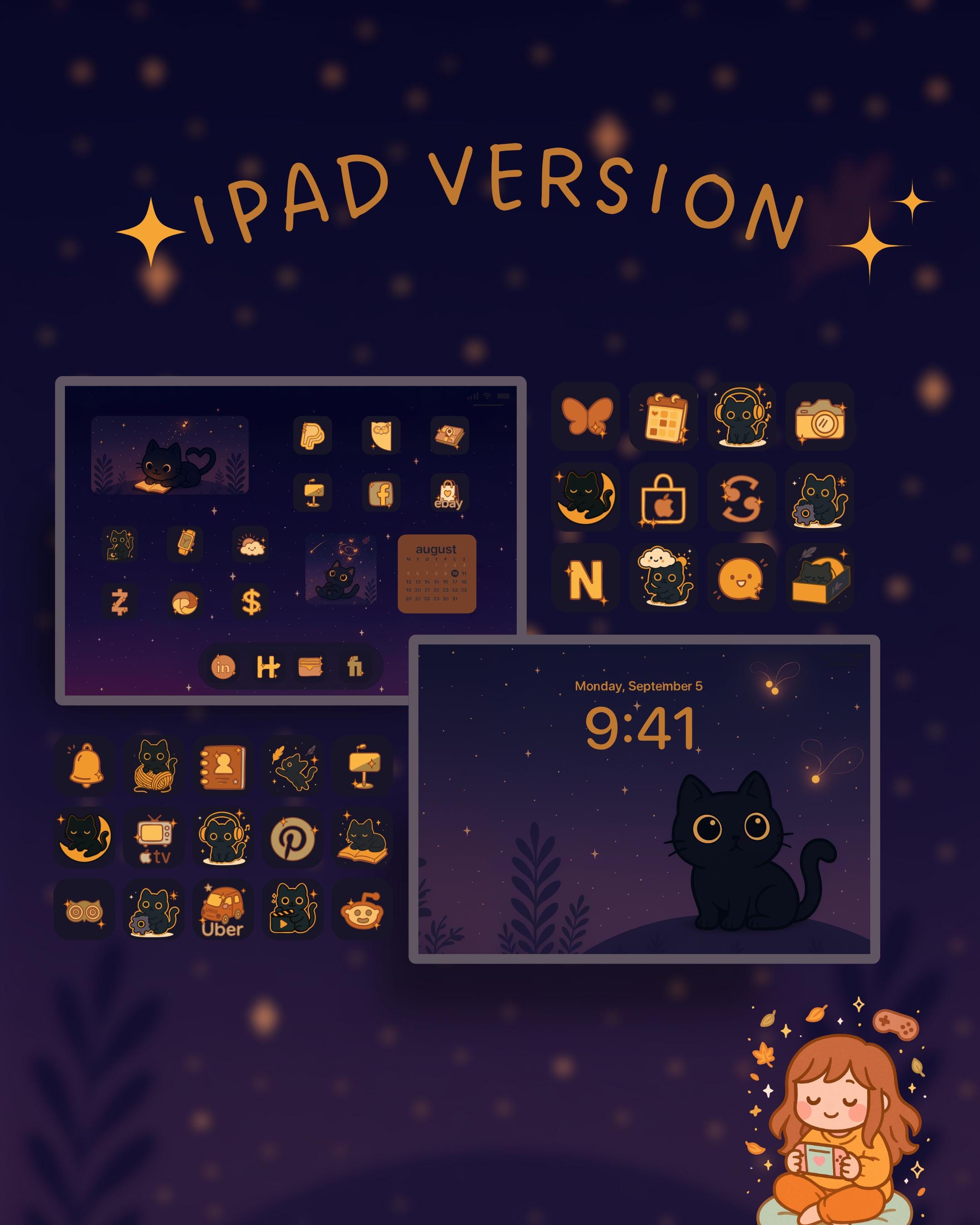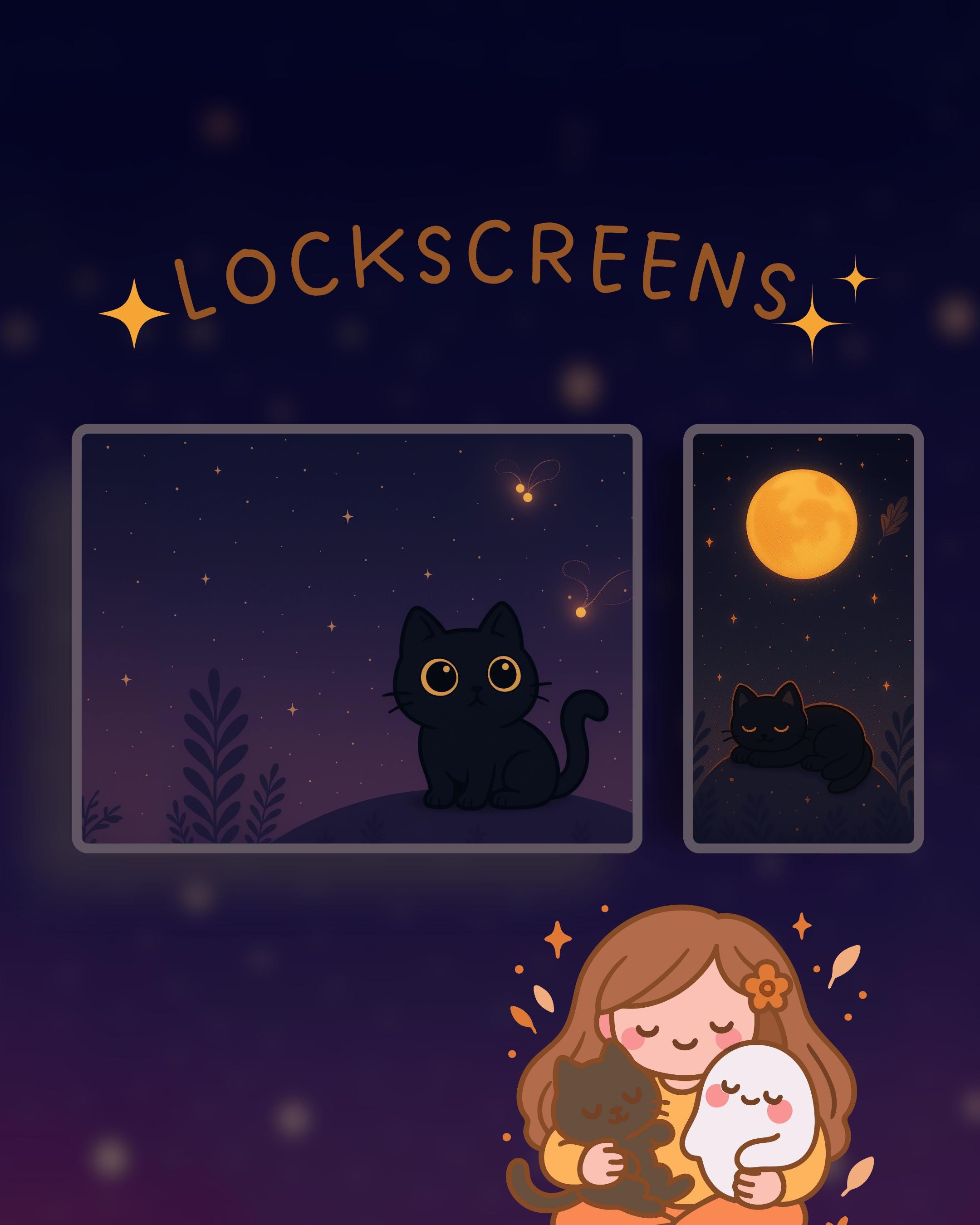 Moon & Cat Phone Theme, iOS Android Icons (Digital Download)