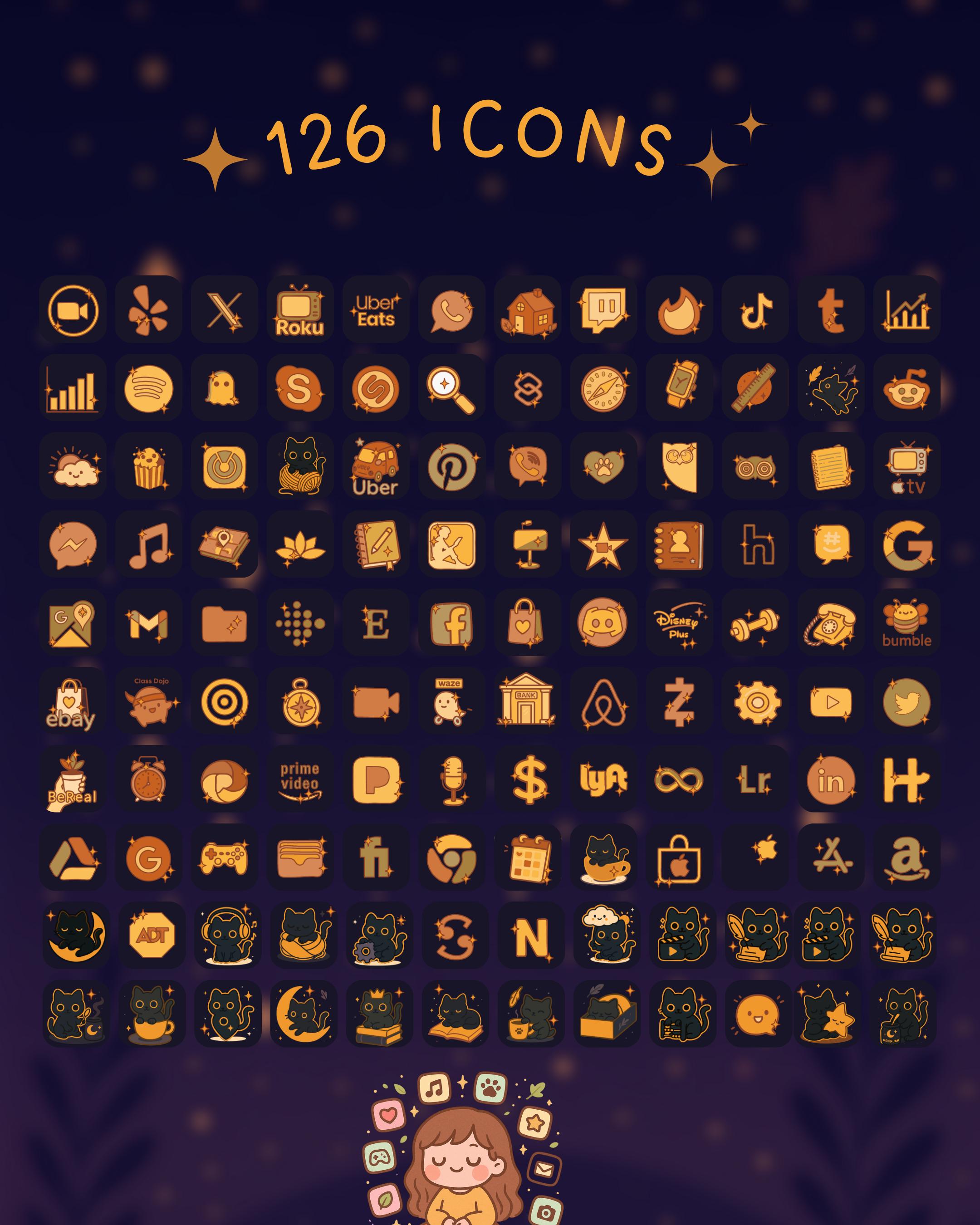 Give your device a fresh look with our awesome icon and wallpaper set for iOS, iPadOS, and Android! This digital download includes 126 stunning icons covering a range of popular apps that can be used to customize any app on your device. You'll get high-resolution PNG files designed for both mobile phones and tablets, so your screens will look fantastic no matter what device you’re using! 📱✨