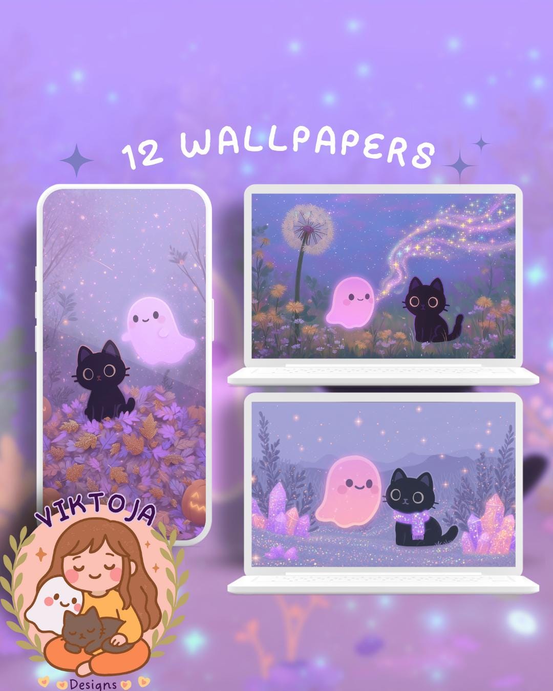 Bring a touch of magic to your devices with this set of 12 wallpapers! These high-res JPG files will fit perfectly on your phone or computer/tablet screens.