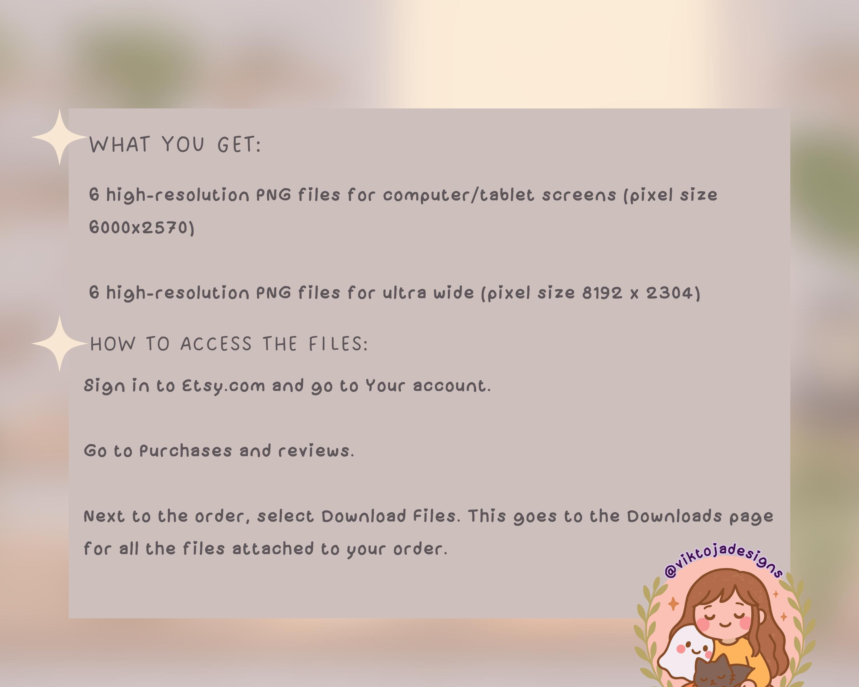 Once you’ve made your purchase, it’s super easy to download all 12 high-res wallpapers 📥. Just sign into your Etsy account 🛒, go to “Purchases and Reviews,” and hit “Download Files” next to your order. Your new screen art will be ready to enjoy in no time! 🎨🖥️