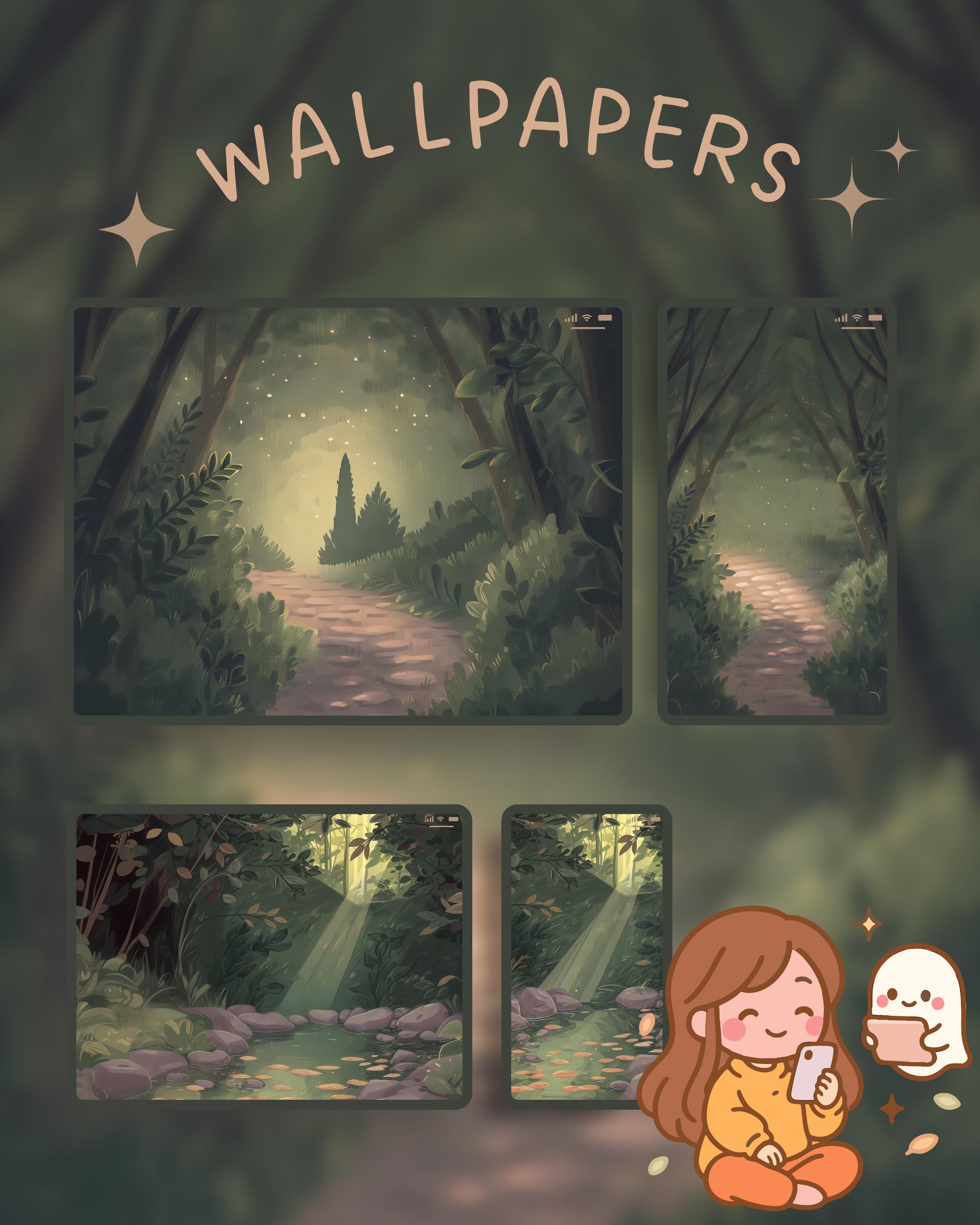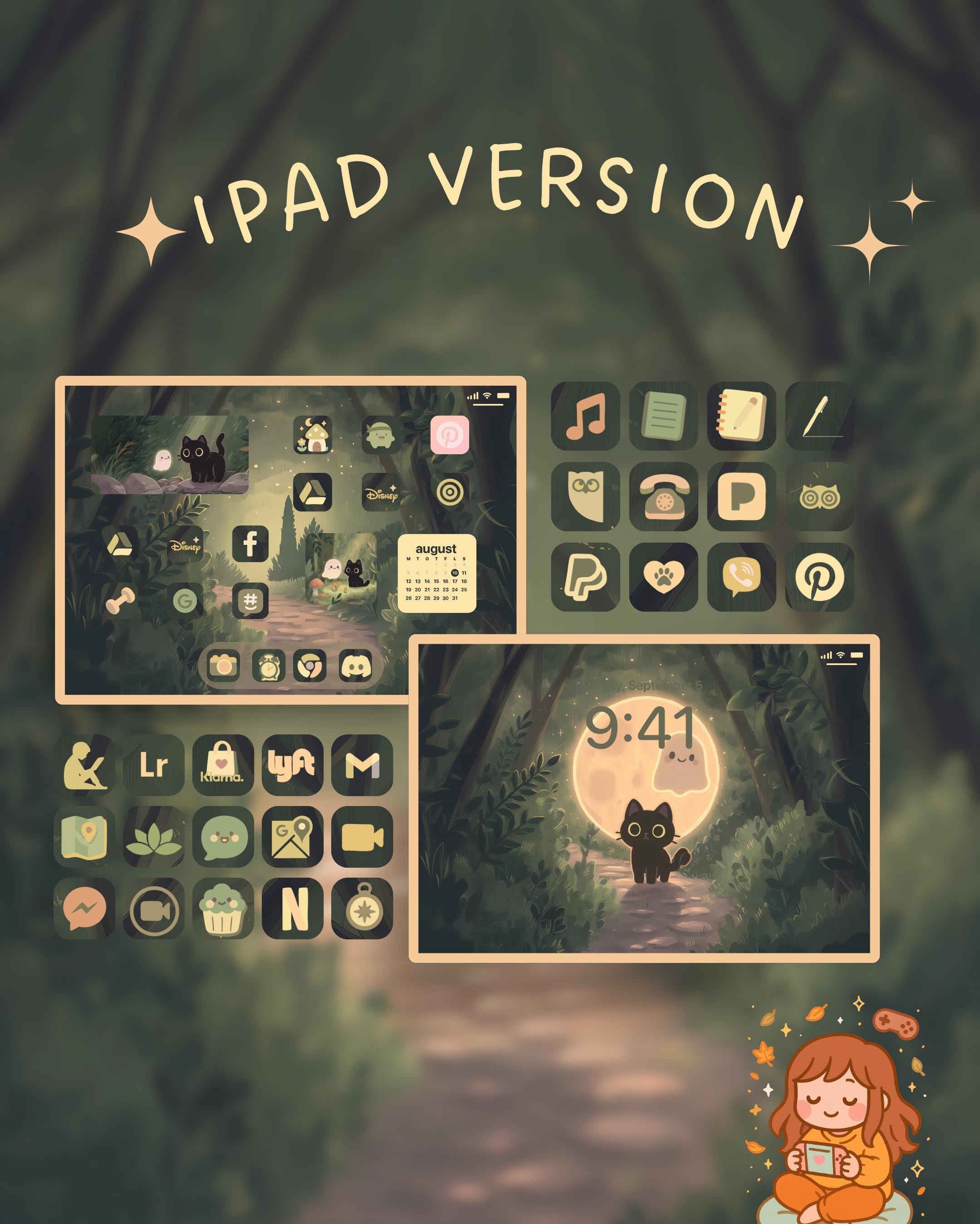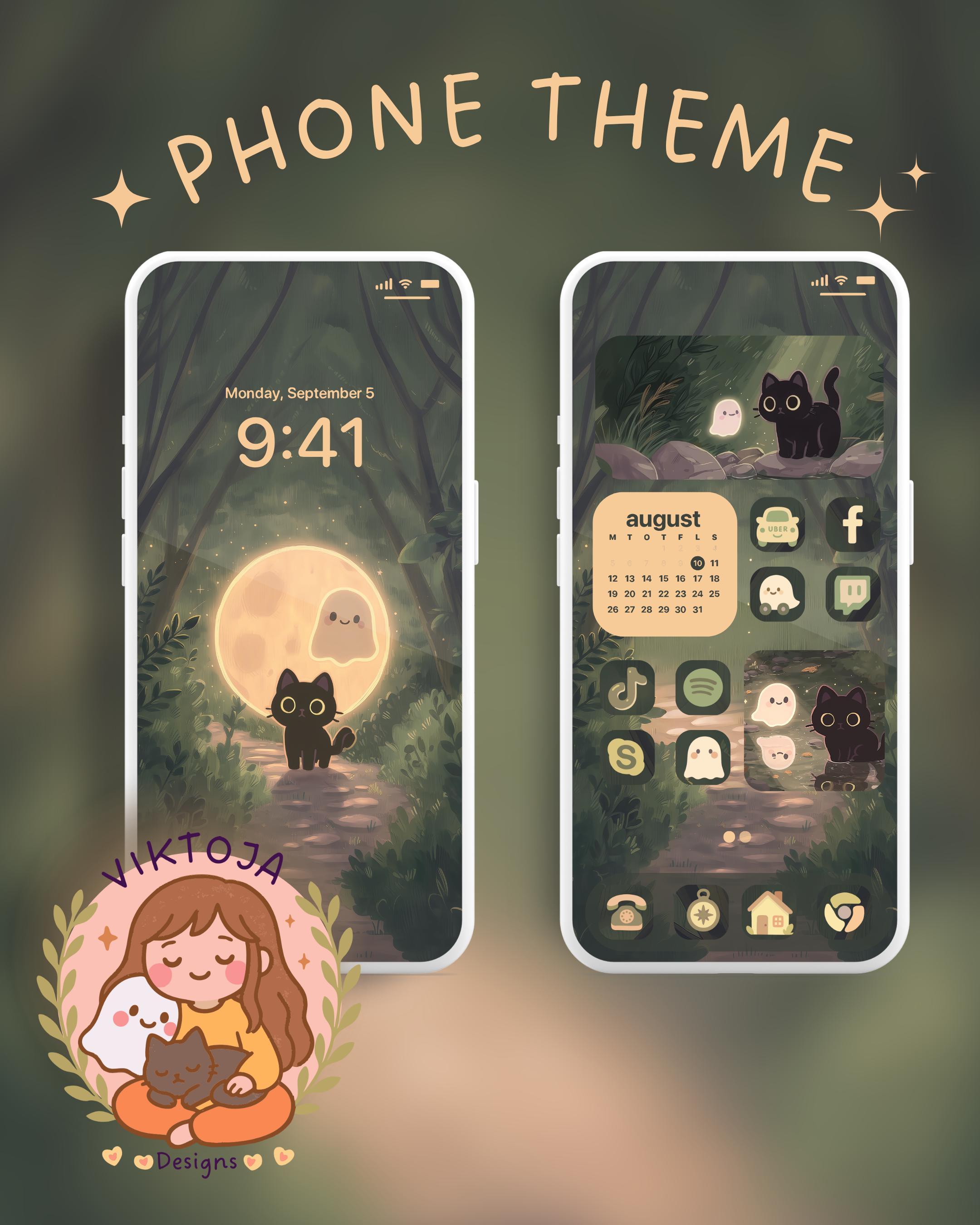 Forest Cat Phone Theme: iOS Android Icons & Wallpaper (Digital Download)