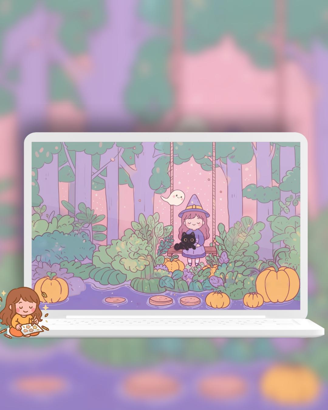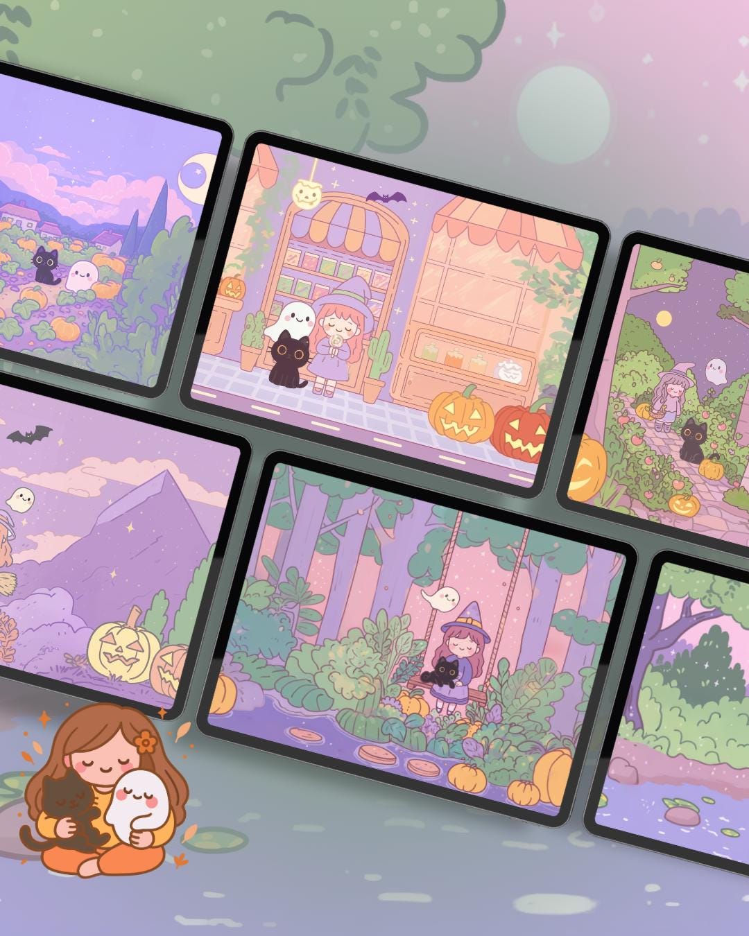 Bring a touch of coziness to your devices with this set of 12 wallpapers! Featuring beautiful aesthetic scenes these high-res JPG files will fit perfectly on your phone or computer/tablet screens.