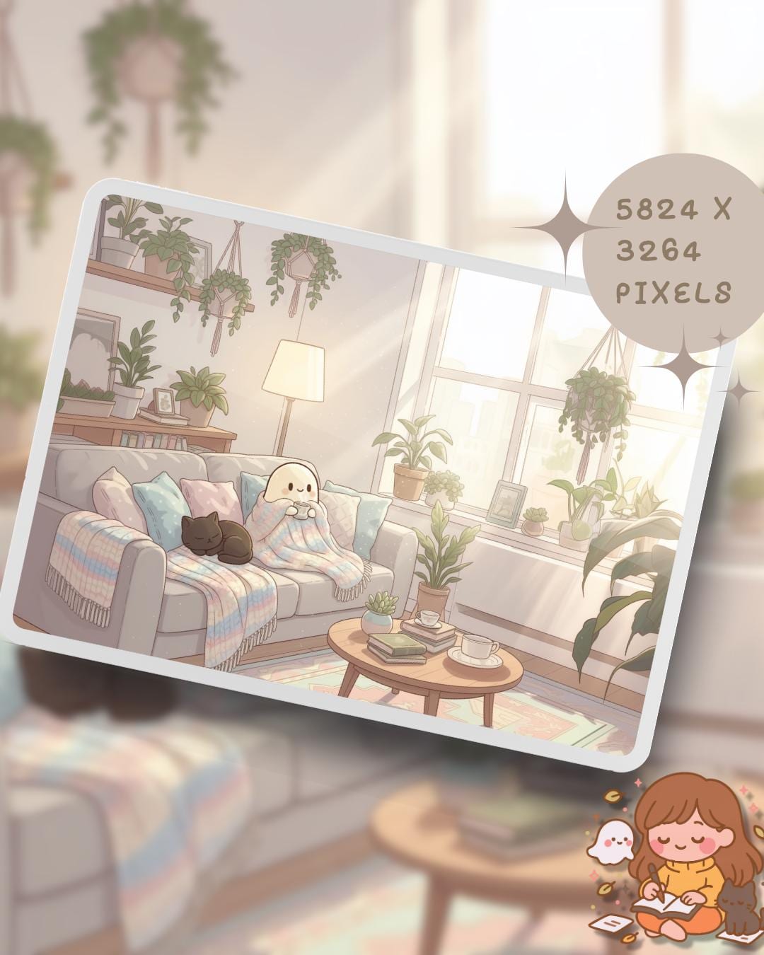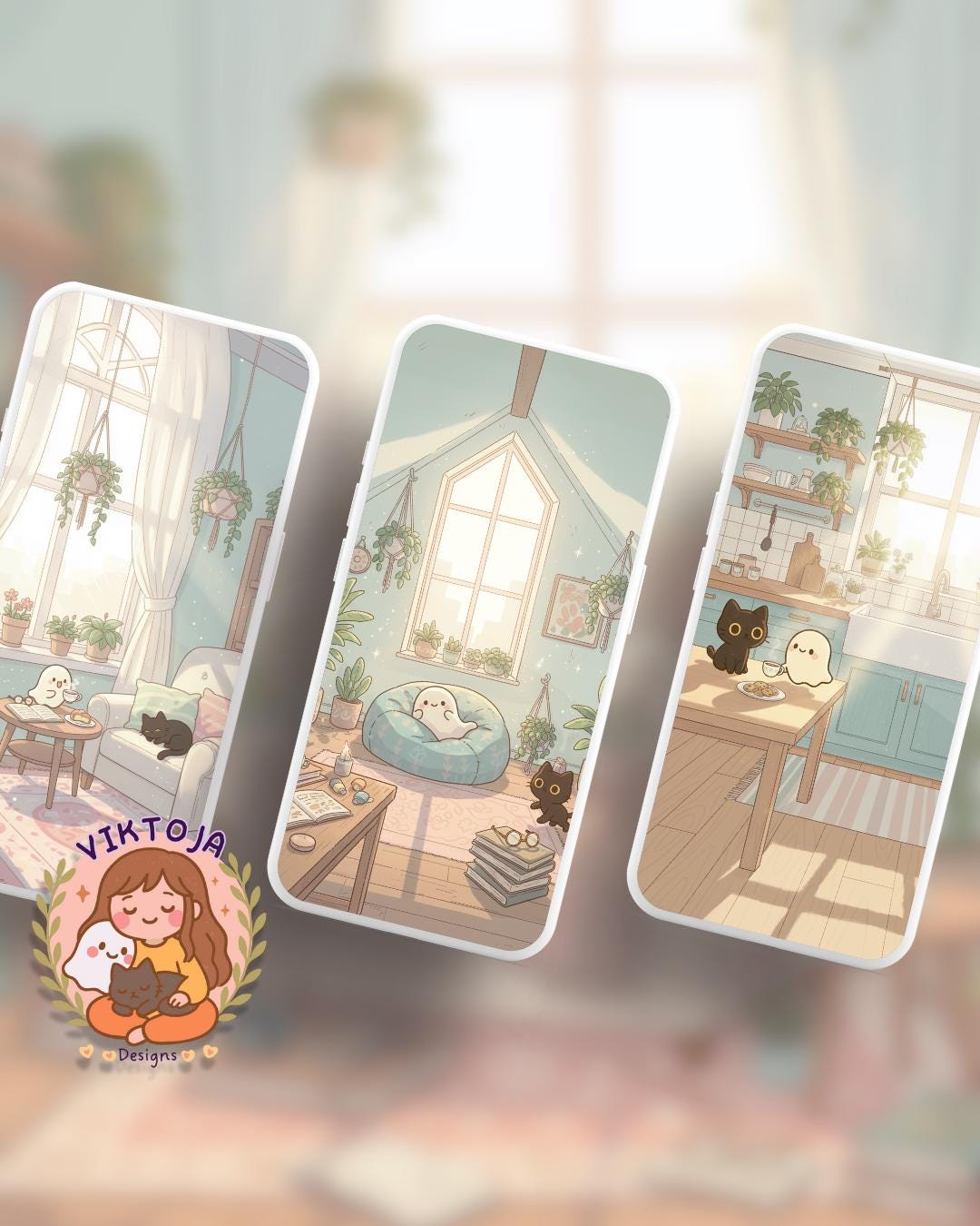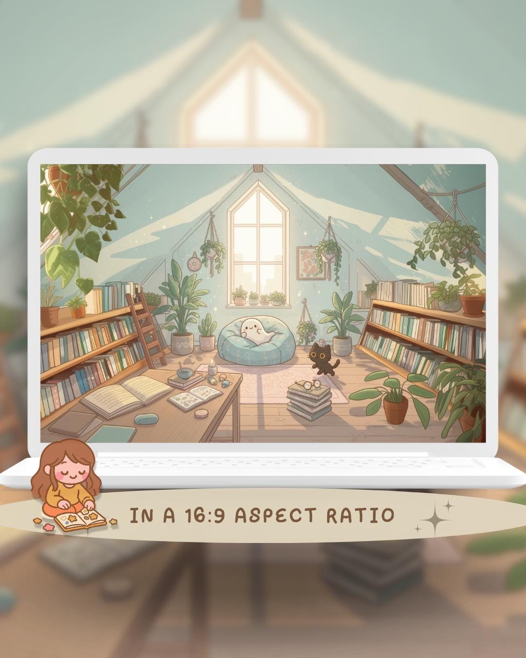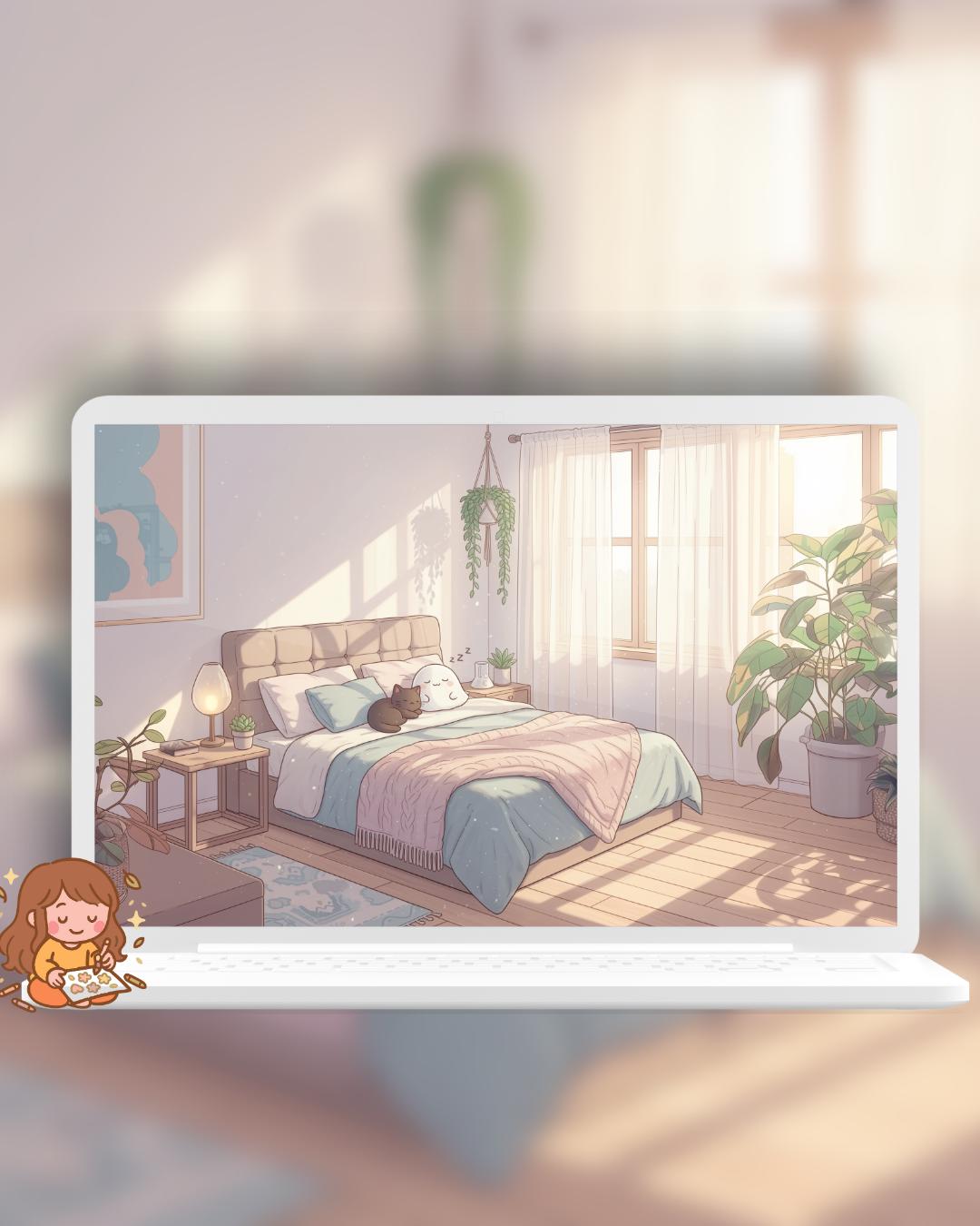 Bring a touch of magic to your devices with this set of 12 Studio Cats, plants and books cozy wallpapers! Featuring cute cats in cozy settings, these high-res JPG files will fit perfectly on your phone or computer/tablet screens.