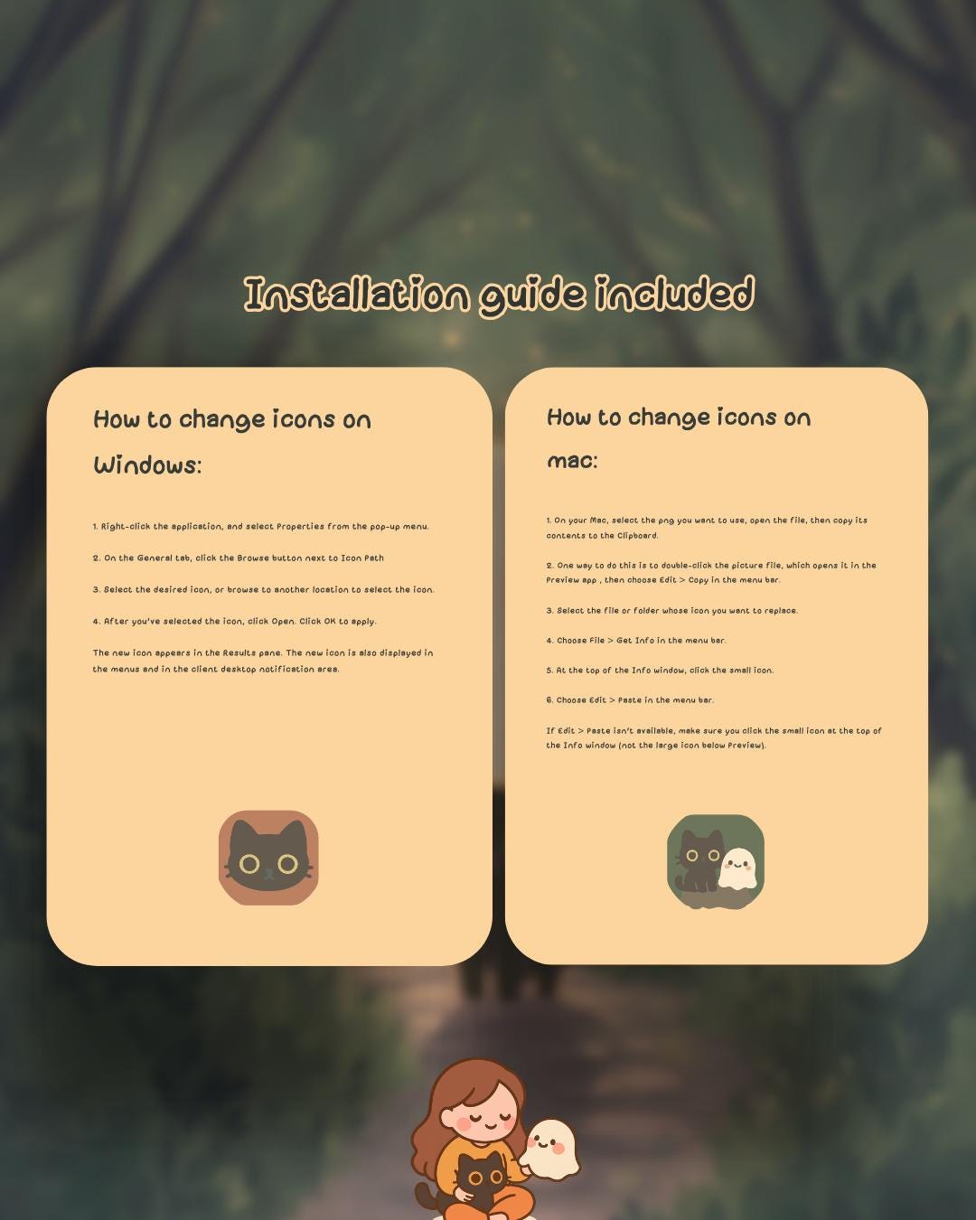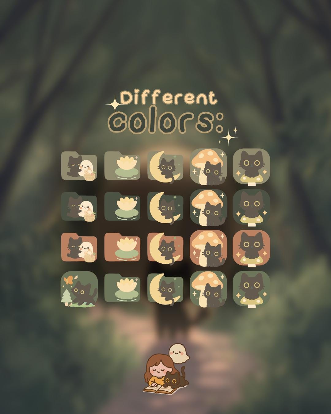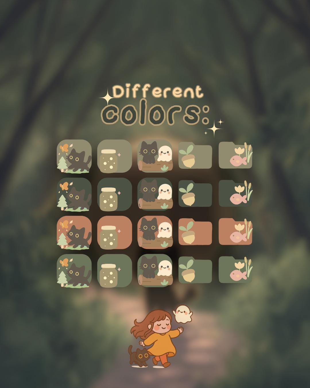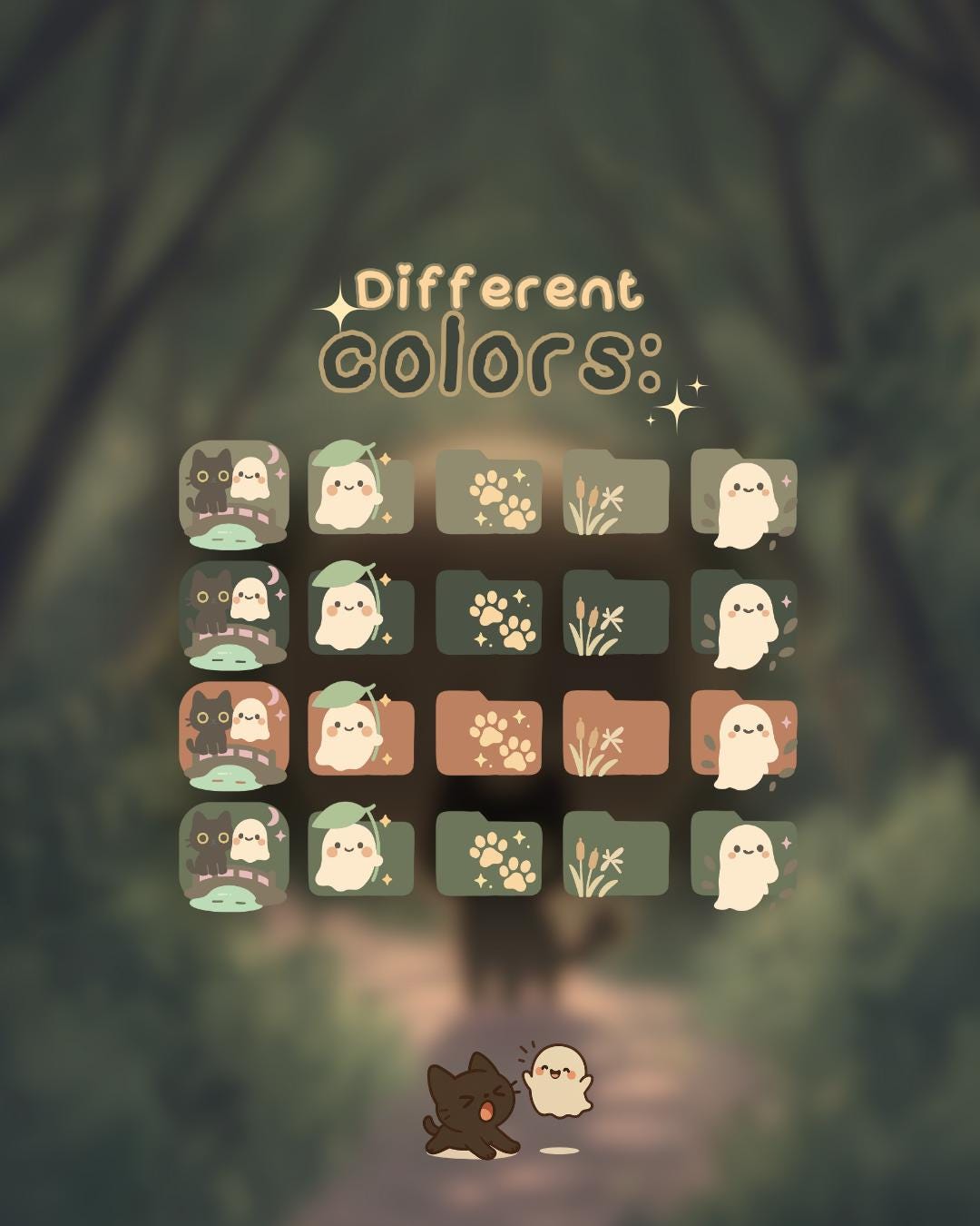Ghosty Forest Desktop Icons: Kawaii Autumn Theme (PNG & ICO Files) (Digital Download