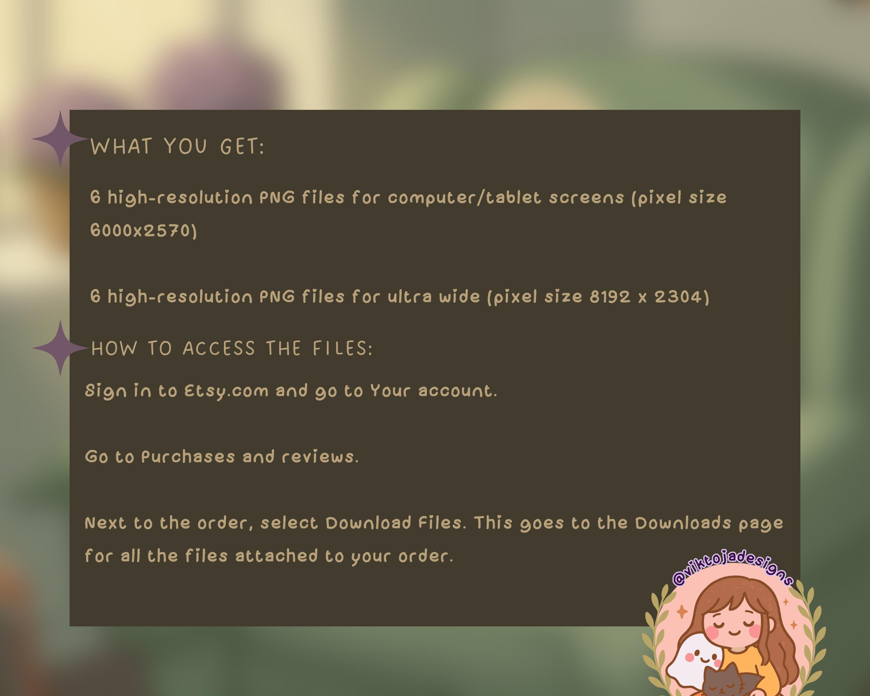 Once you’ve made your purchase, it’s super easy to download all 12 high-res wallpapers 📥. Just sign into your Etsy account 🛒, go to “Purchases and Reviews,” and hit “Download Files” next to your order. Your new screen art will be ready to enjoy in no time! 🎨🖥️
