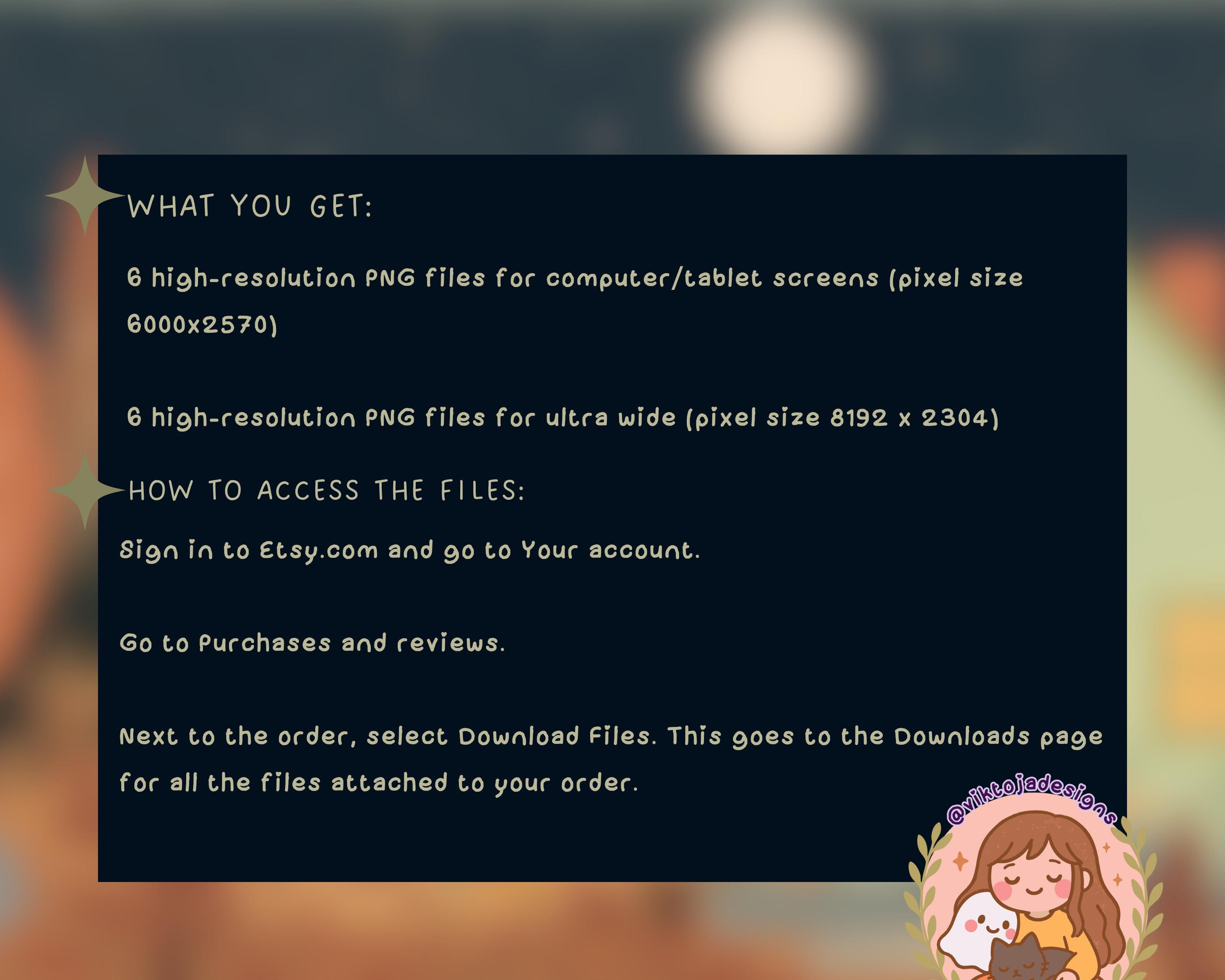 Once you’ve made your purchase, it’s super easy to download all 12 high-res wallpapers 📥. Just sign into your Etsy account 🛒, go to “Purchases and Reviews,” and hit “Download Files” next to your order. Your new screen art will be ready to enjoy in no time! 🎨🖥️