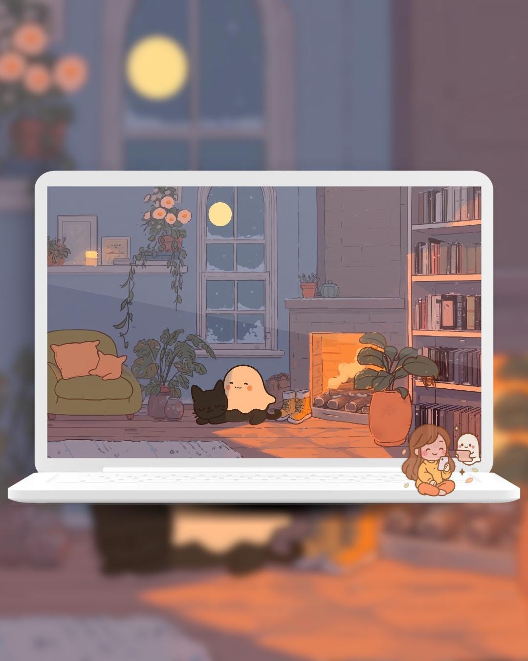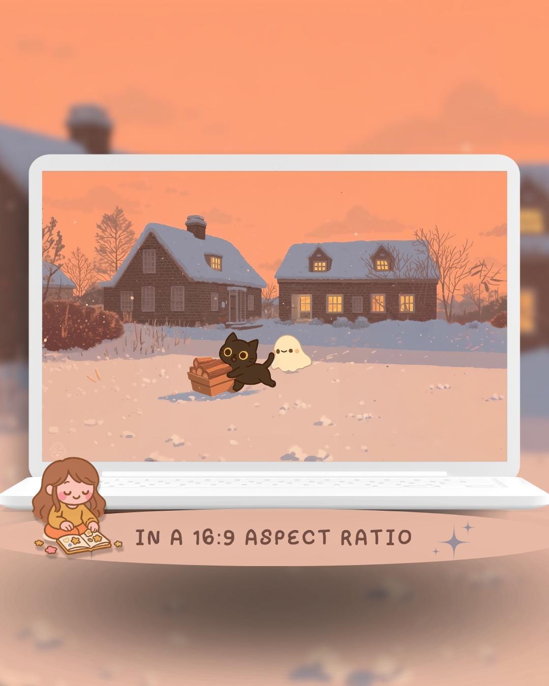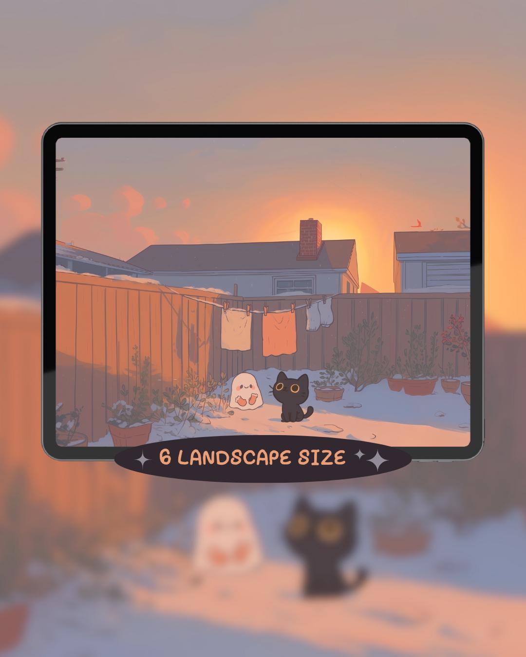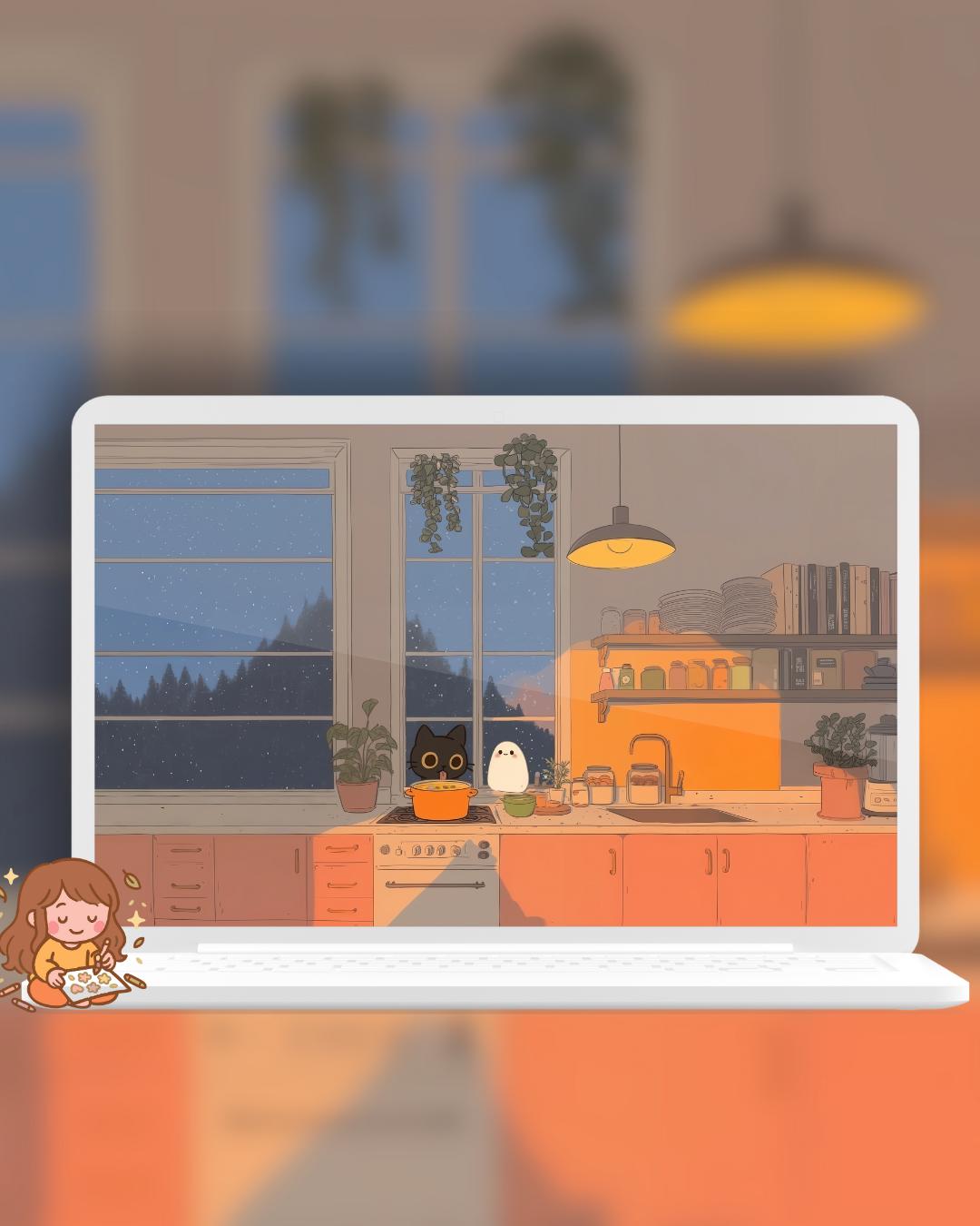 Snowy Cat Lofi Wallpaper: Holiday Desktop & Phone Backgrounds (Digital Download)
