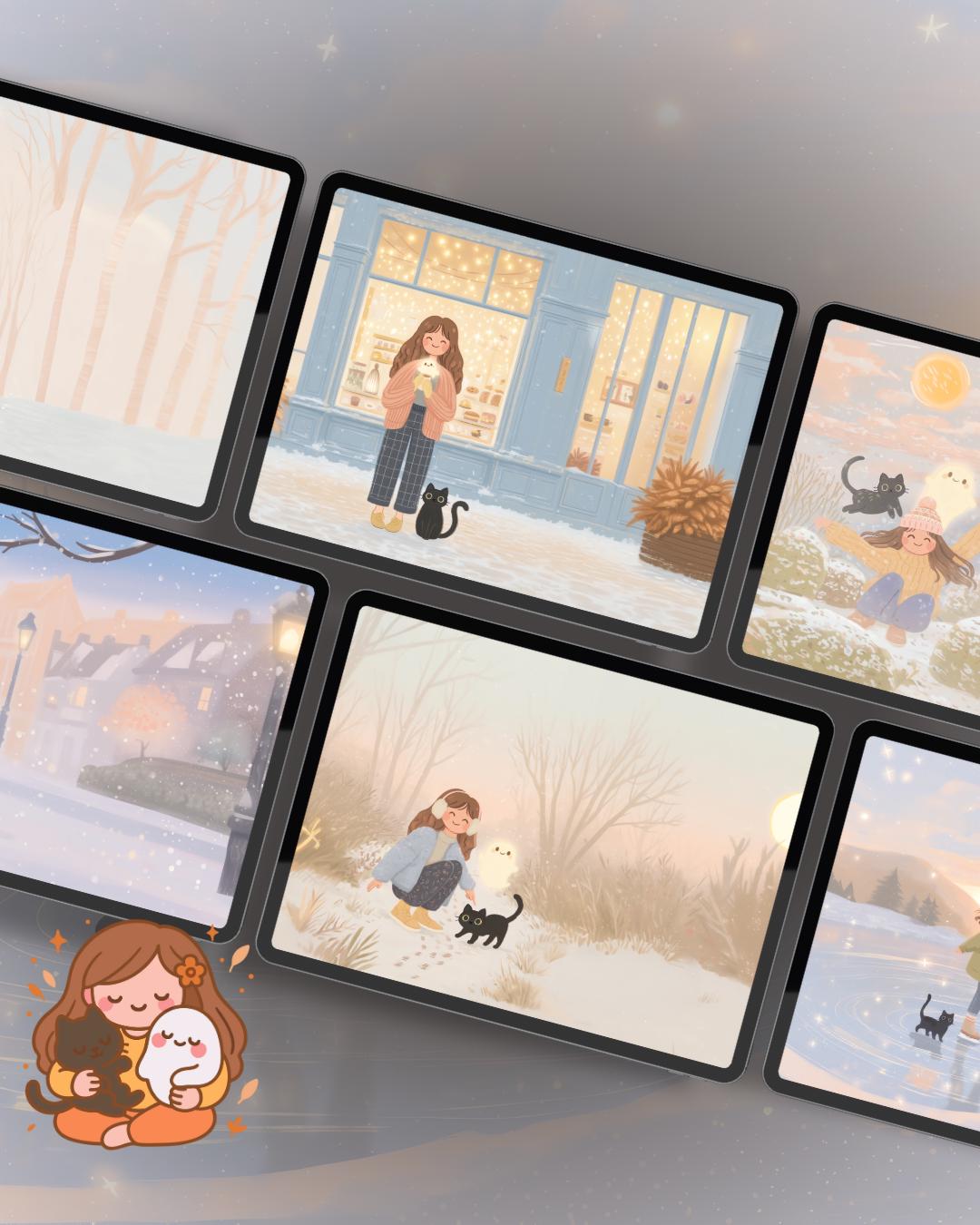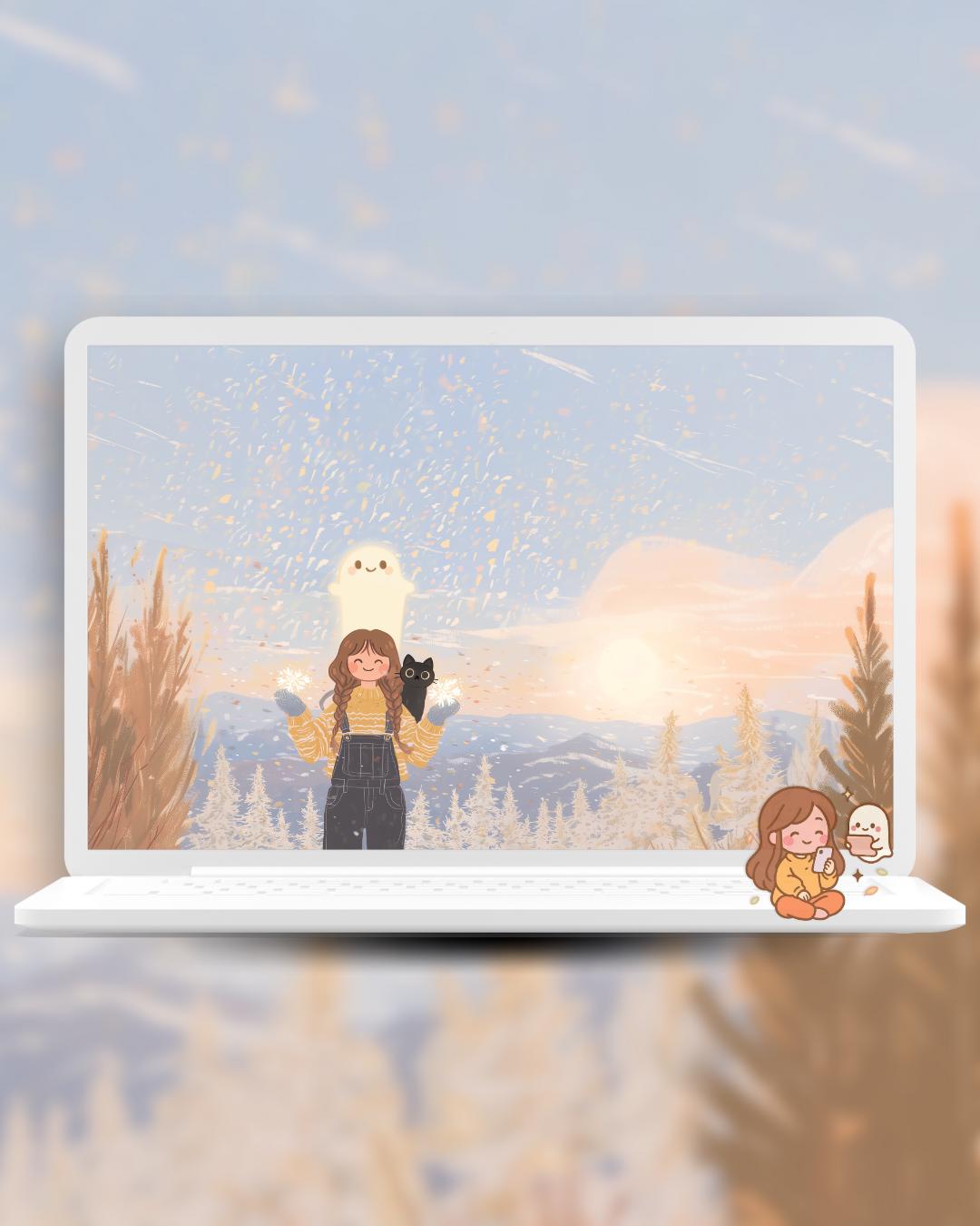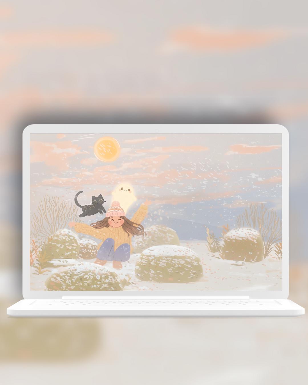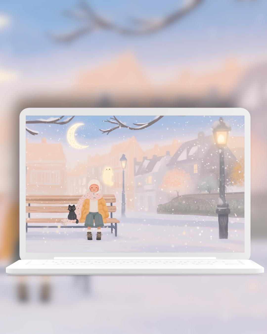 Kawaii snow day Wallpaper: Cozy Phone & Desktop Backgrounds (Digital Download)