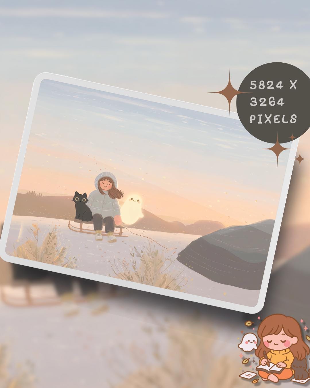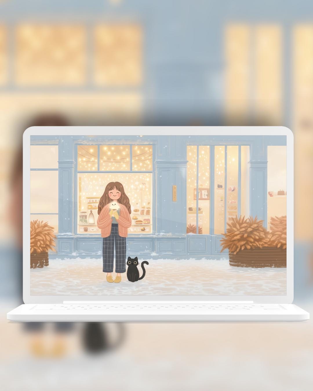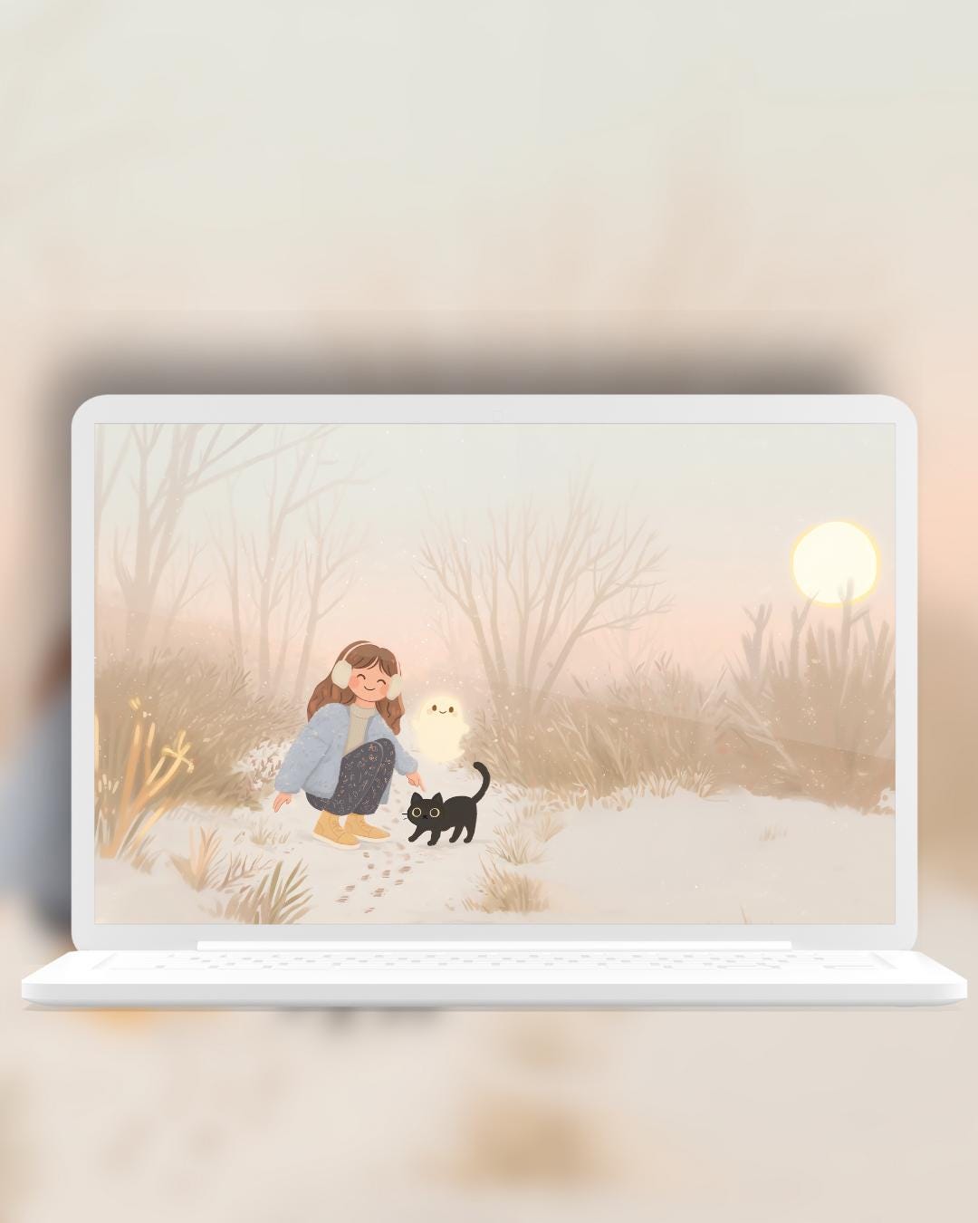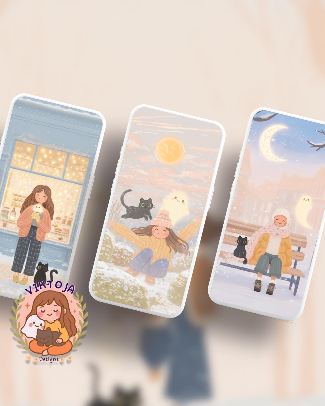 Kawaii snow day Wallpaper: Cozy Phone & Desktop Backgrounds (Digital Download)
