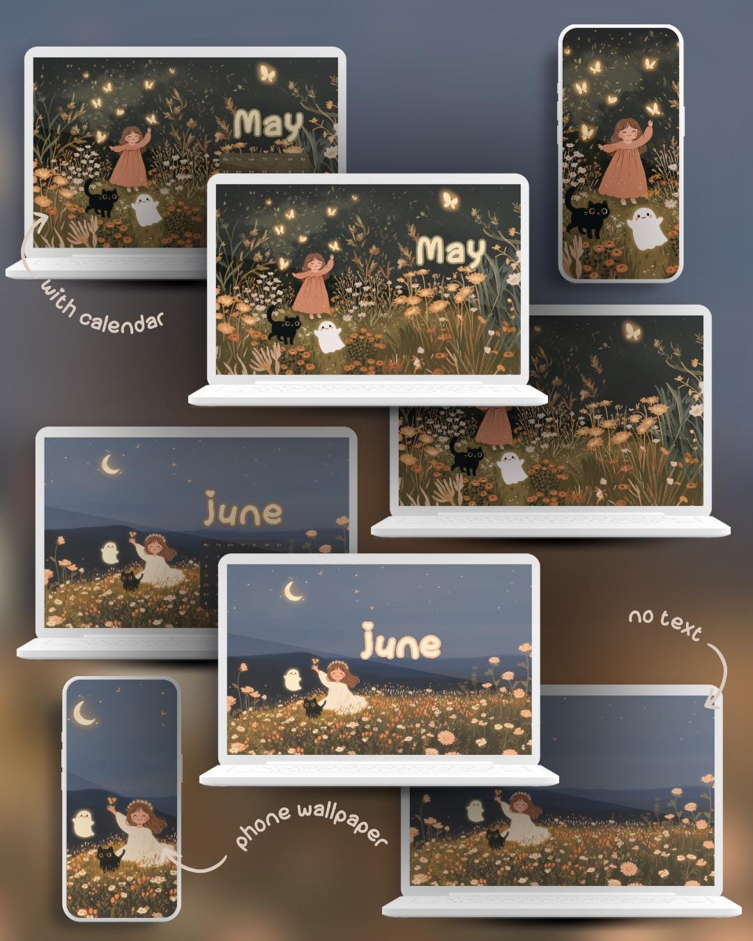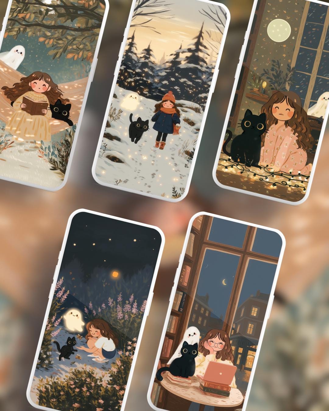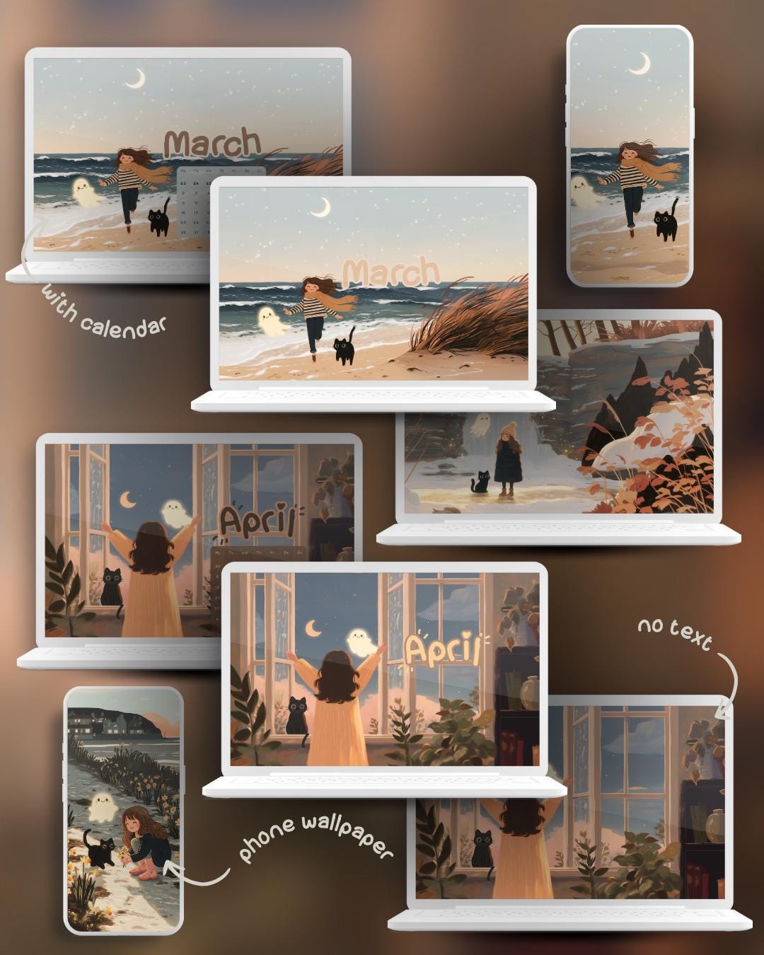Get ready for a year of cozy adventures with my 2026 Calendar Wallpaper Set! Join Viktoja, her black cat Inky, and their friendly ghost named Ghosty as they journey through the seasons, from snowy winter walks and spring flower fields to pumpkin patches and holiday baking. This comprehensive bundle creates a heartwarming and aesthetic theme for all your devices, keeping you organized and smiling every time you check your screen.