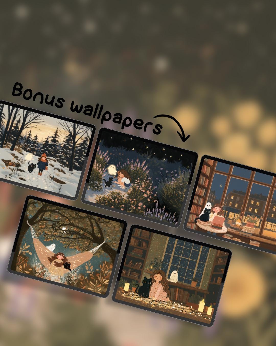 Bonus Wallpapers: Includes a selection of extra cozy scenes (like a winter forest and hammock nap) to mix and match!