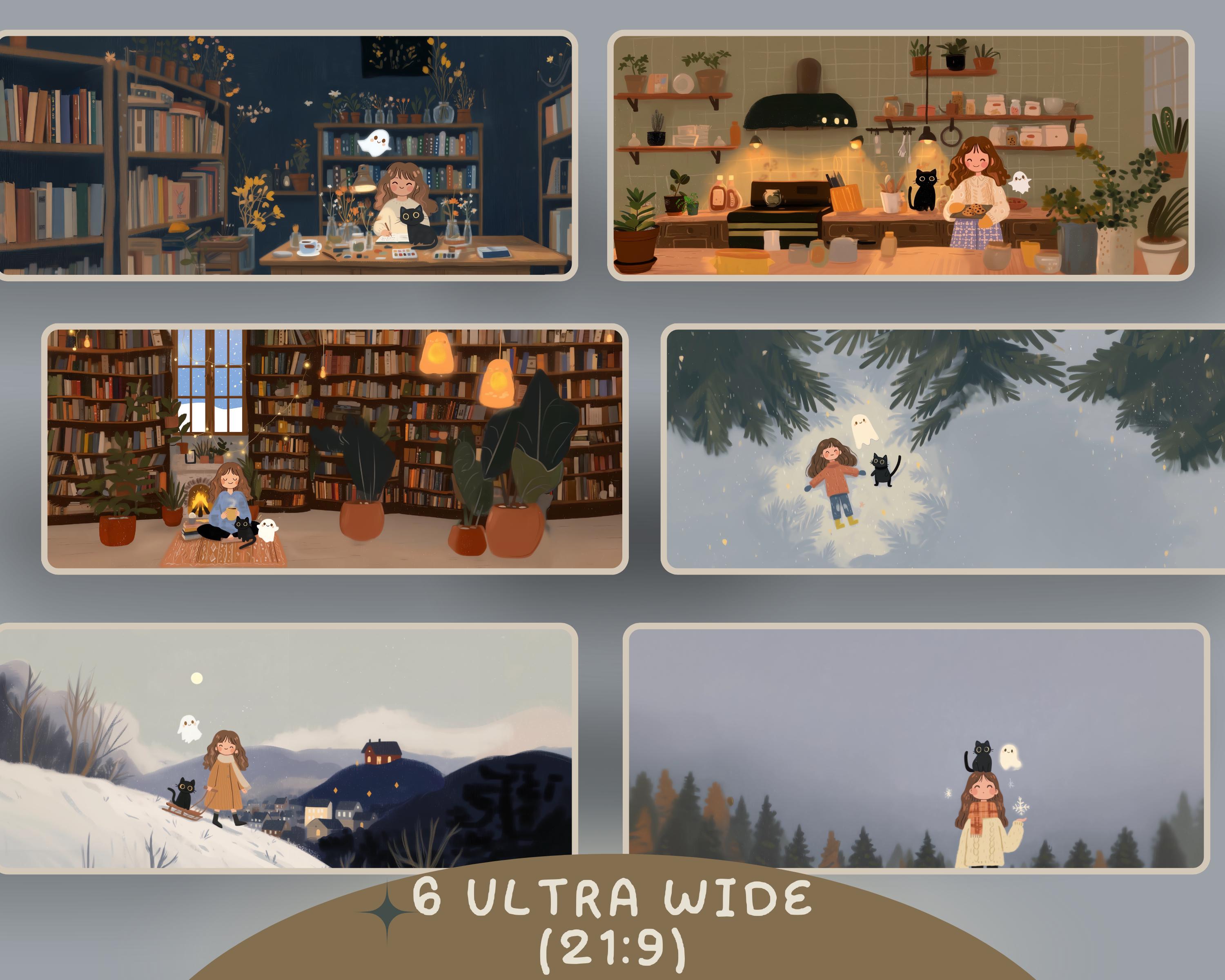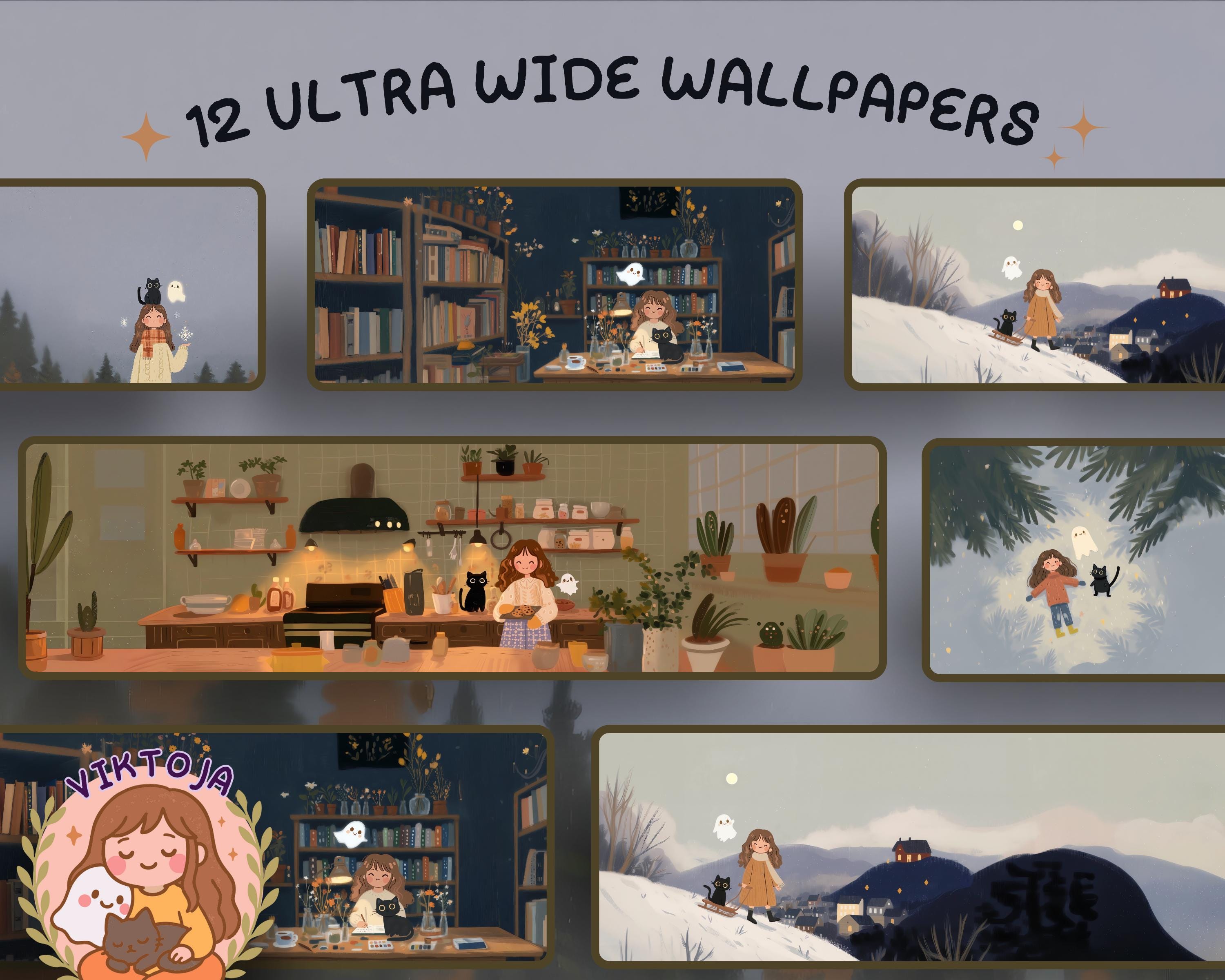 Kawaii winter Ultrawide Wallpaper Set PC Desk Setup Desktop for 21:9 32x9