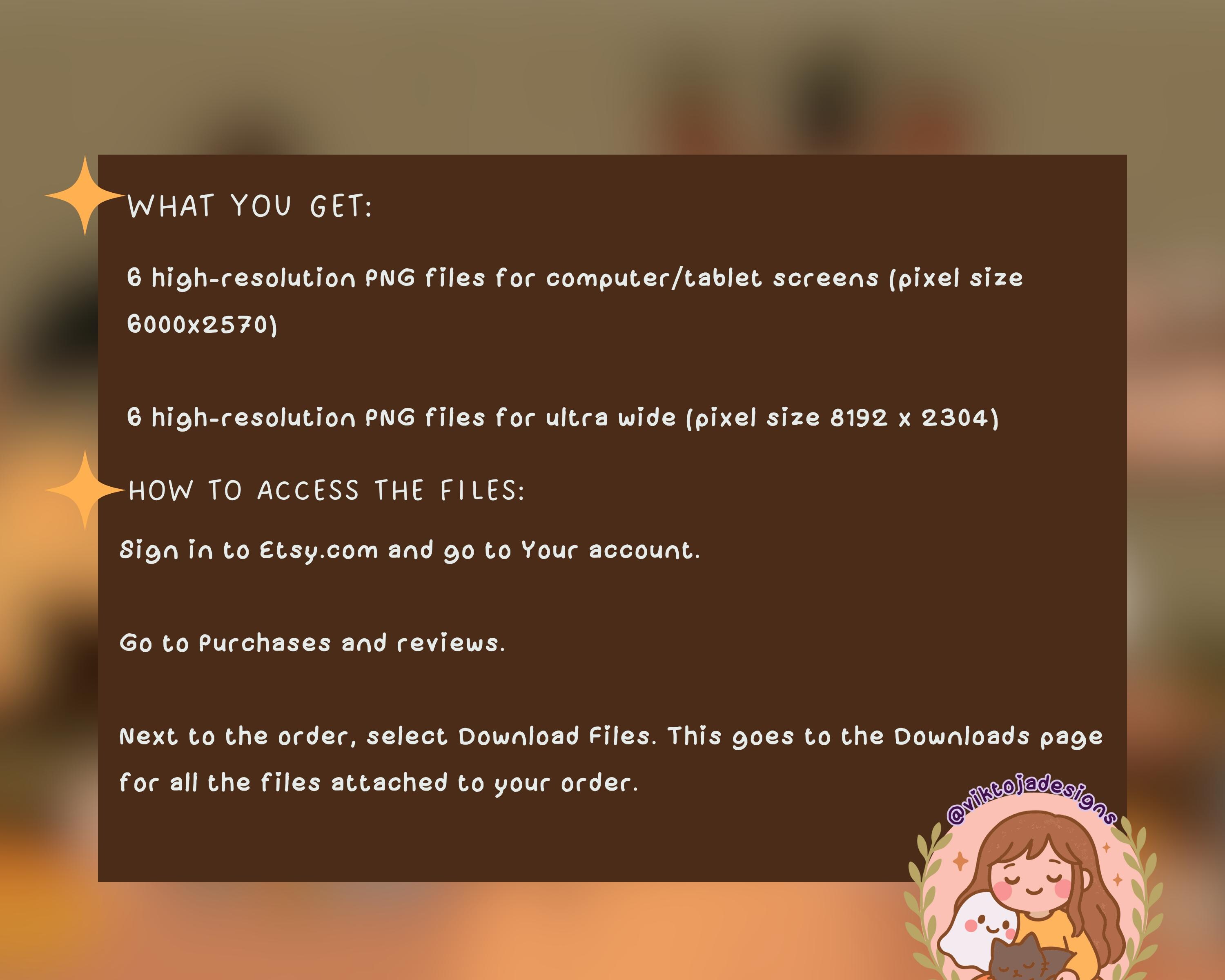 Once you’ve made your purchase, it’s super easy to download all 12 high-res wallpapers 📥. Just sign into your Etsy account 🛒, go to “Purchases and Reviews,” and hit “Download Files” next to your order. Your new screen art will be ready to enjoy in no time! 🎨🖥️