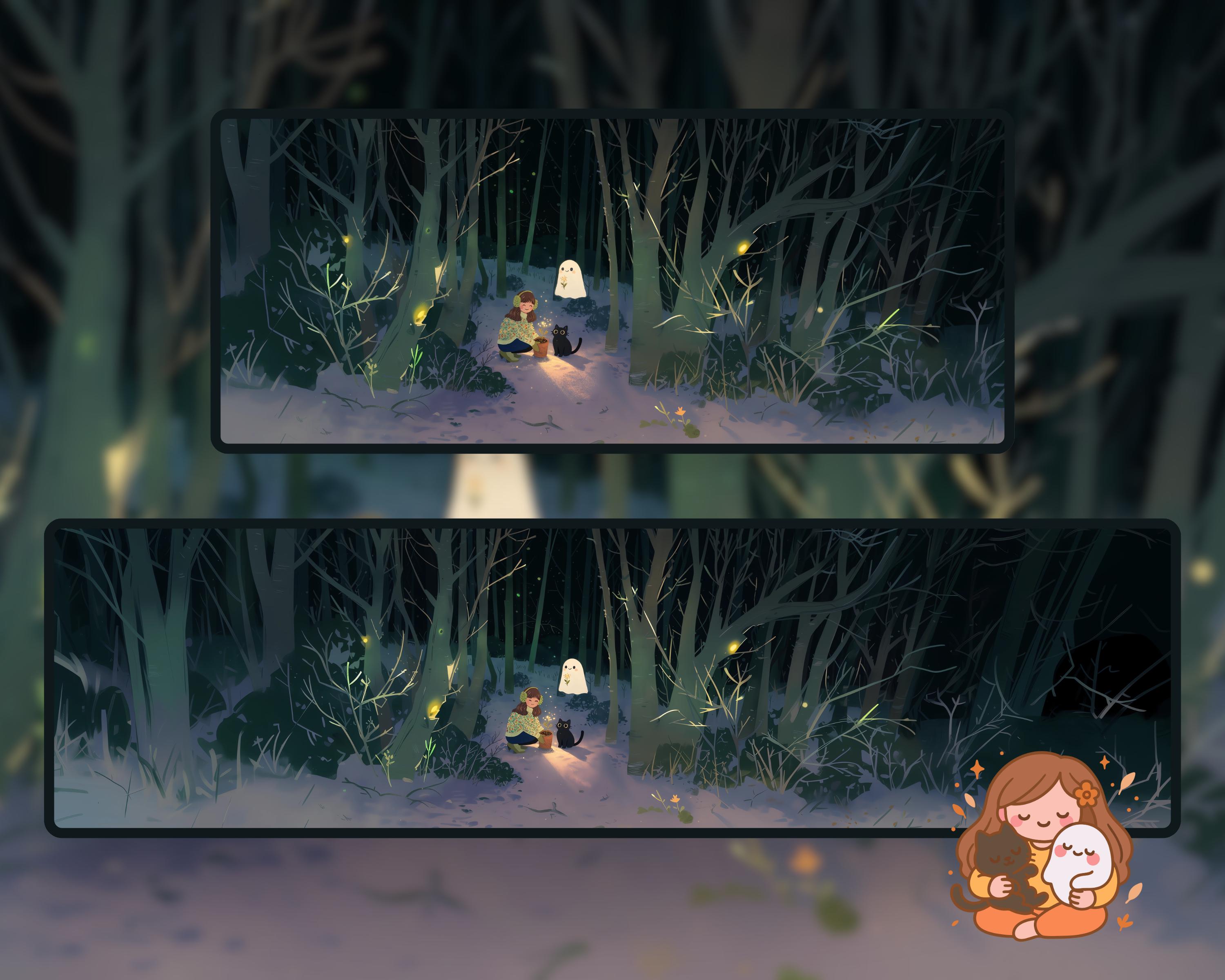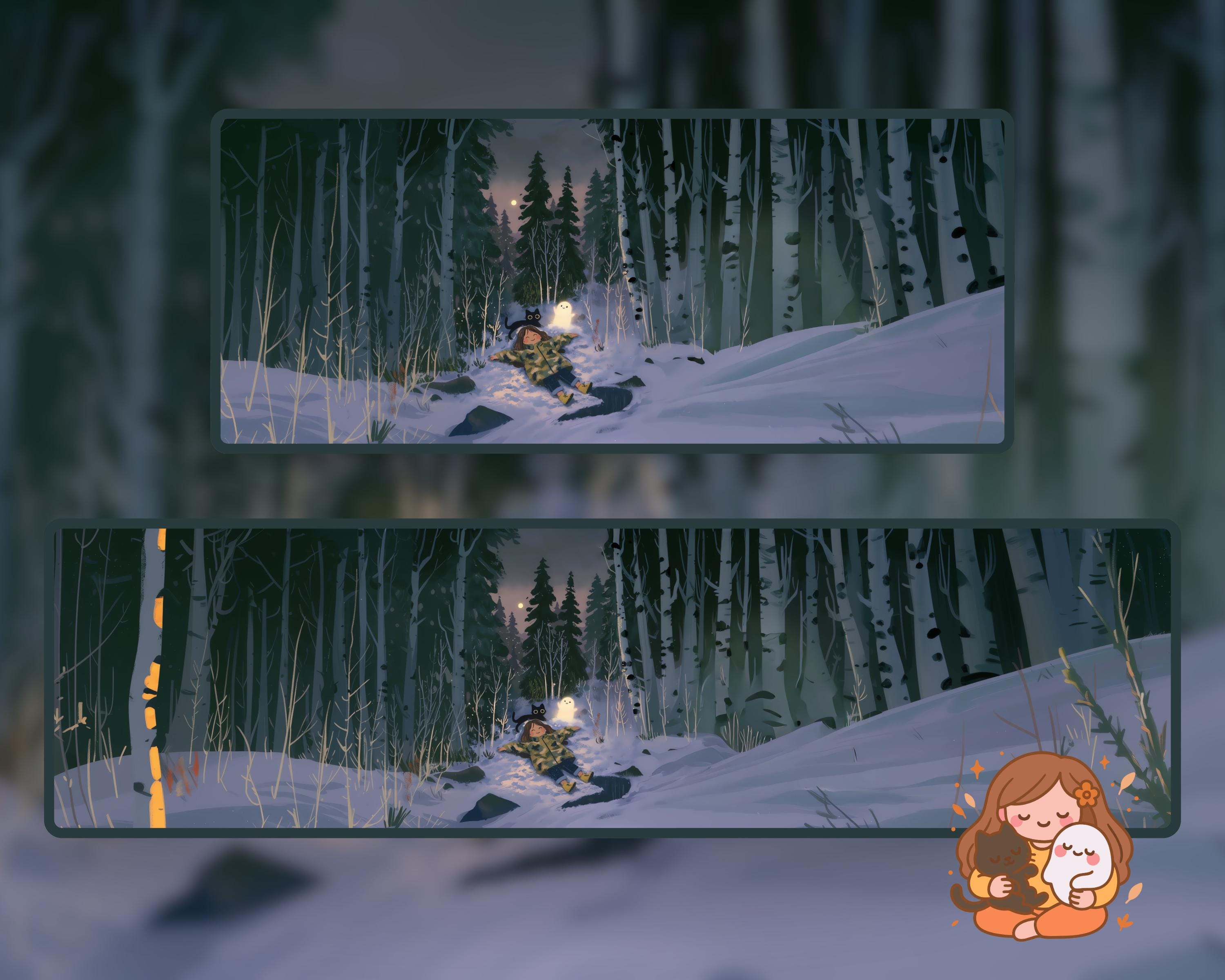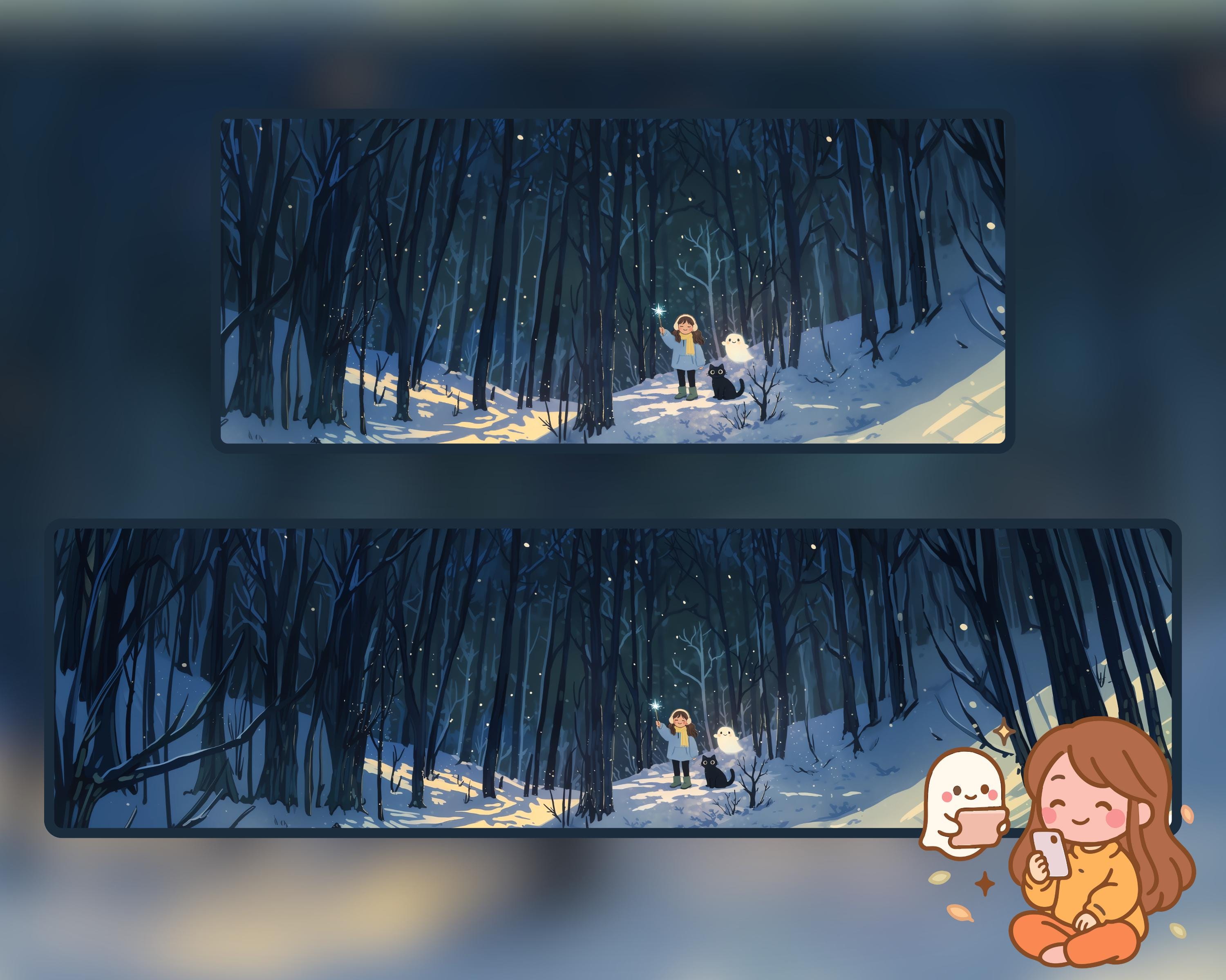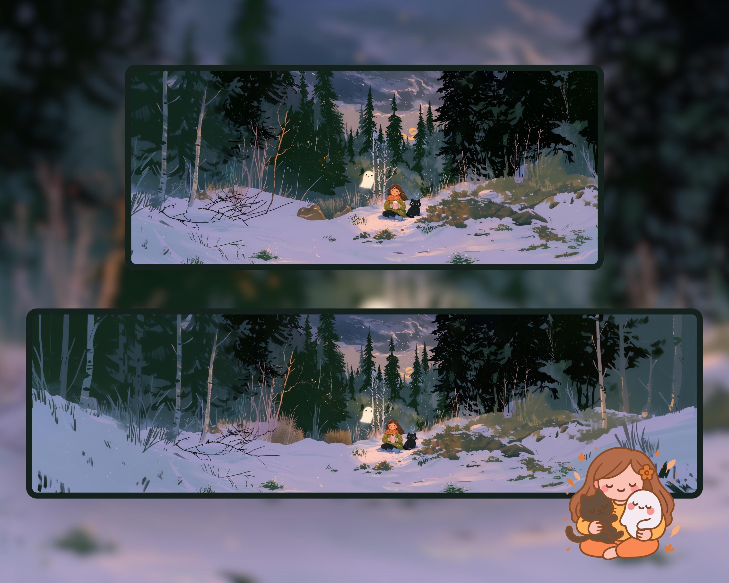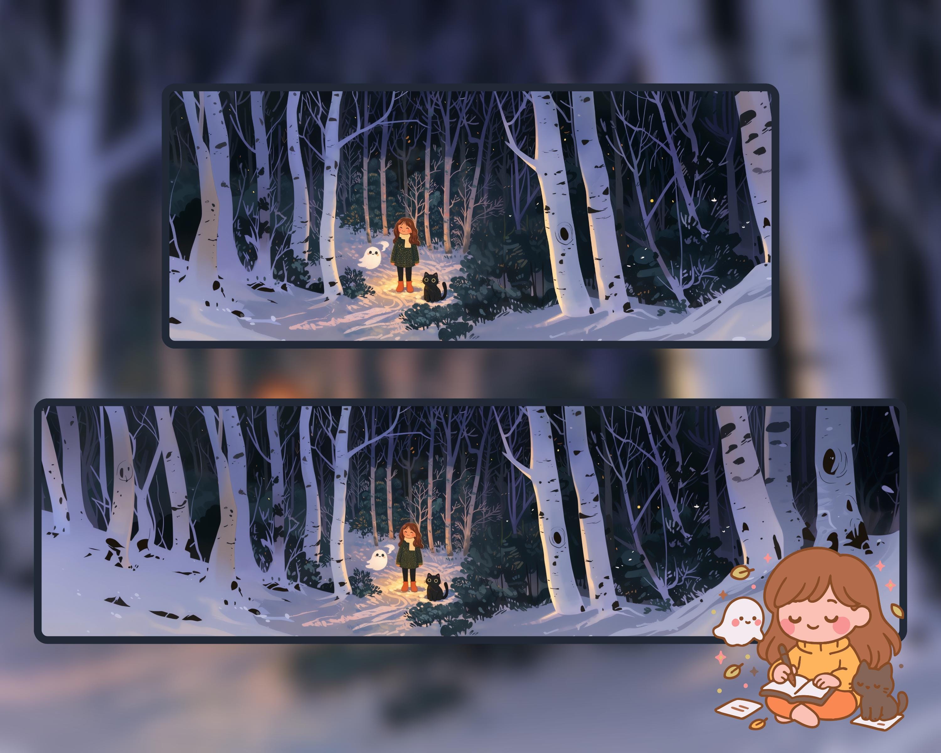 Winter night Ghosty and inky winter Desktop Wallpaper | Kawaii Cozy Lofi (Digital Download)