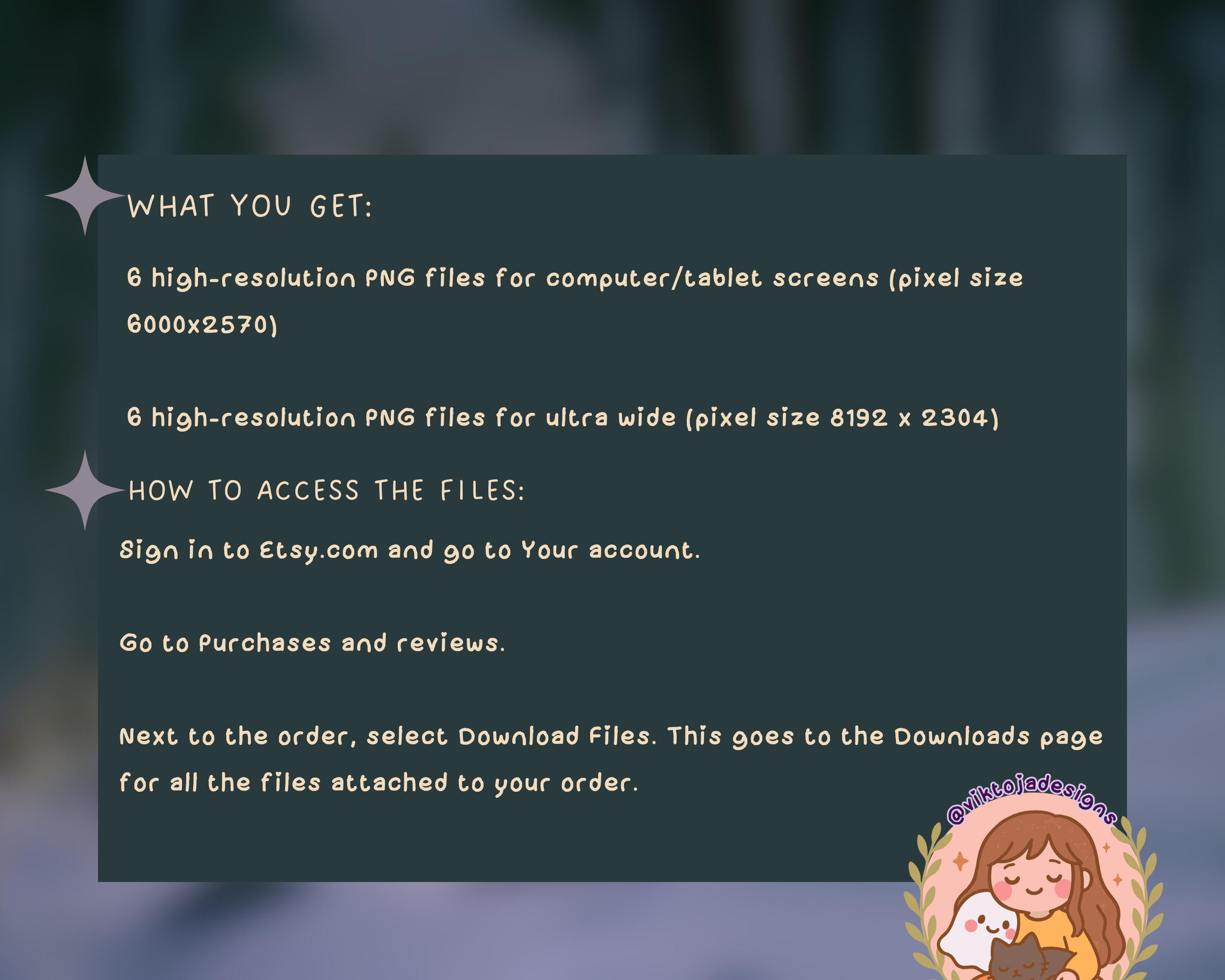 Once you’ve made your purchase, it’s super easy to download all 12 high-res wallpapers 📥. Just sign into your Etsy account 🛒, go to “Purchases and Reviews,” and hit “Download Files” next to your order. Your new screen art will be ready to enjoy in no time! 🎨🖥️