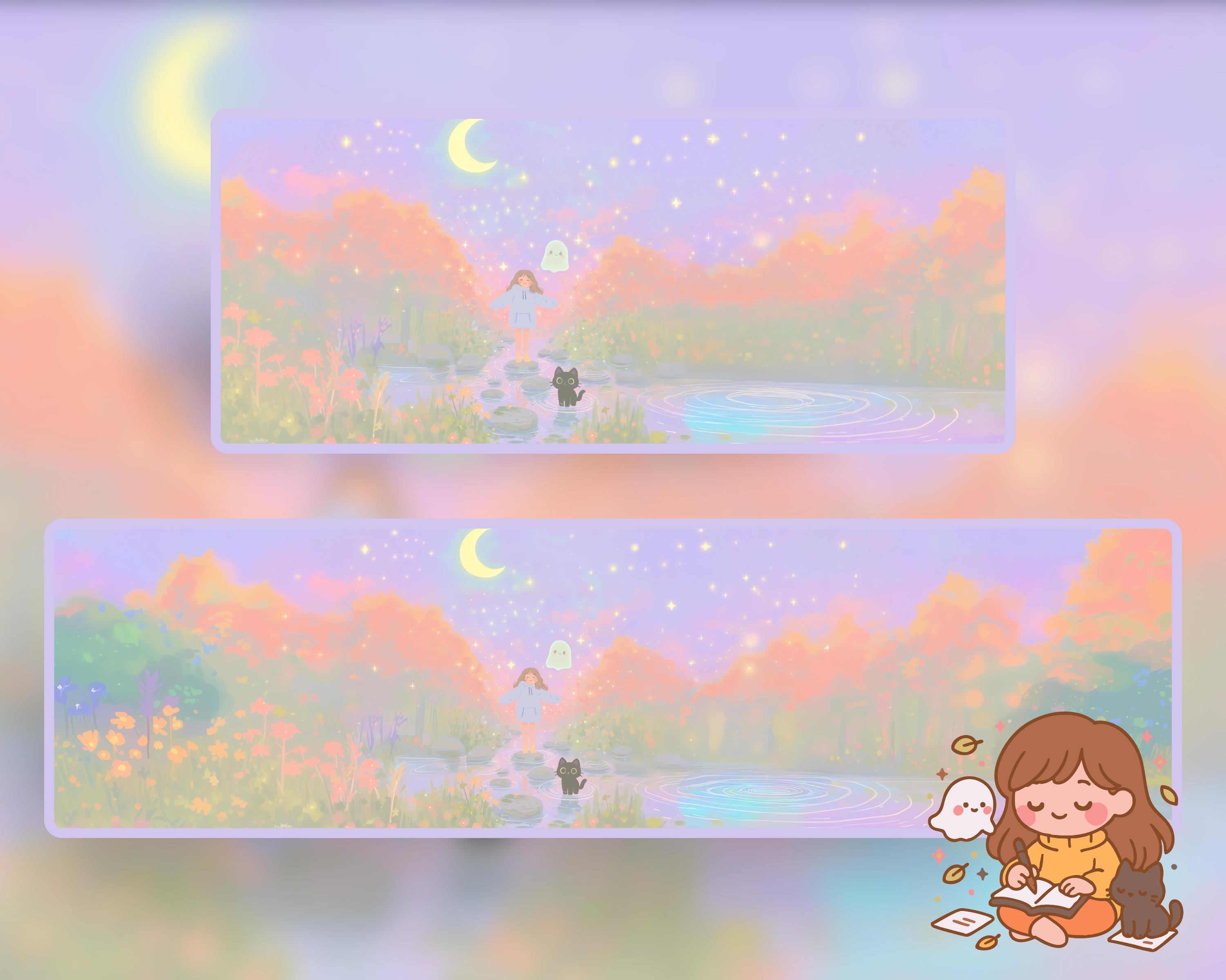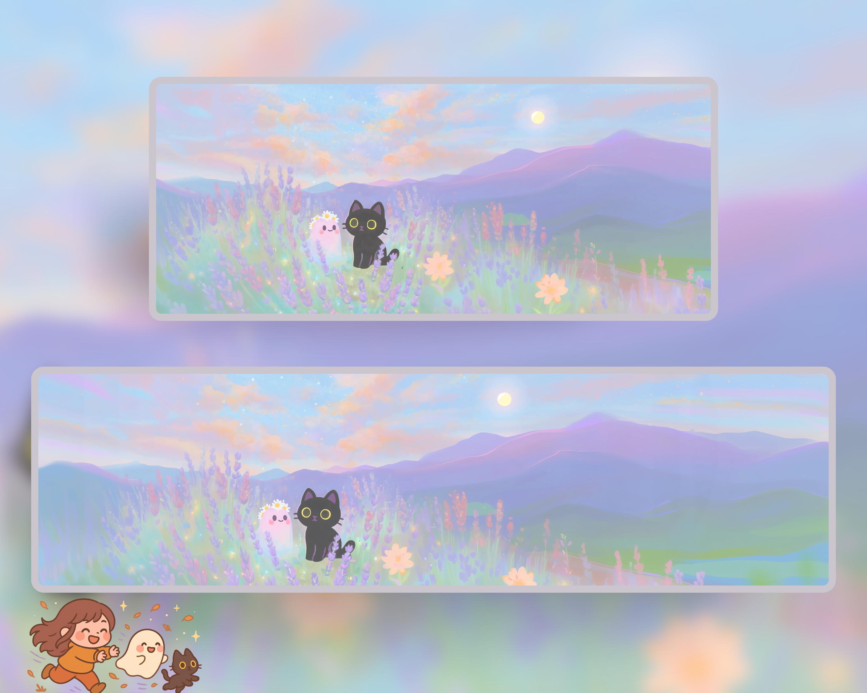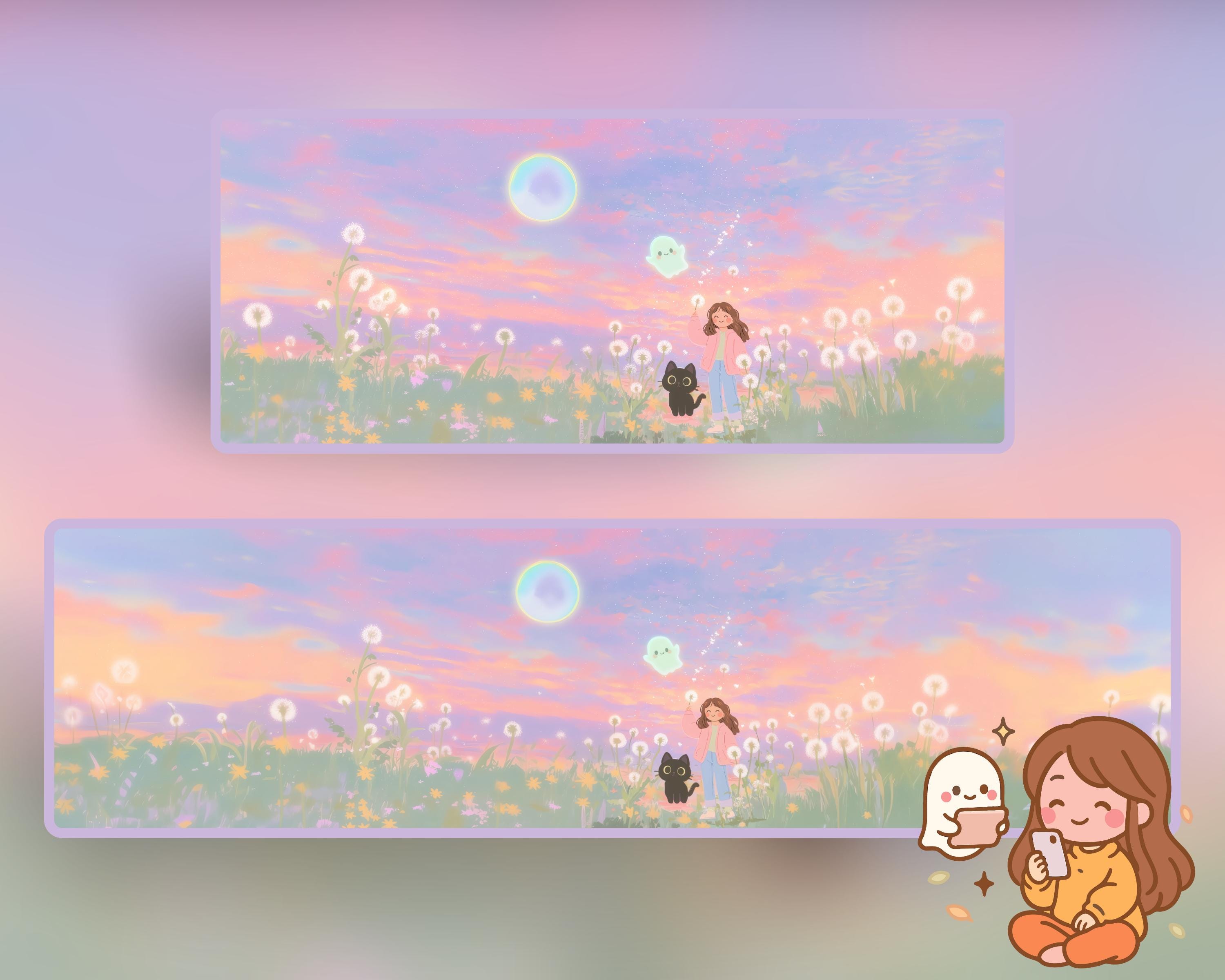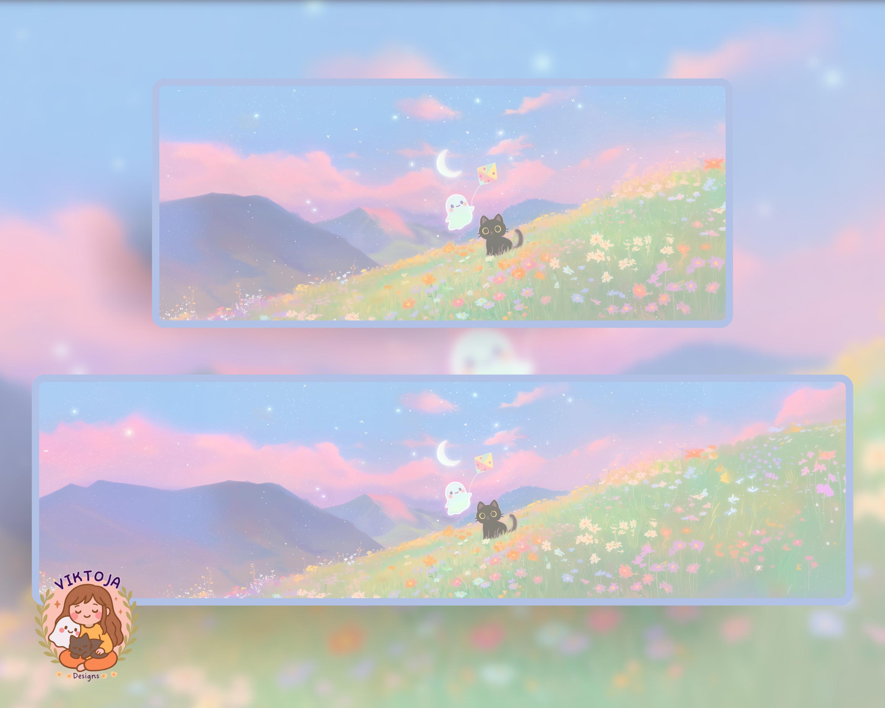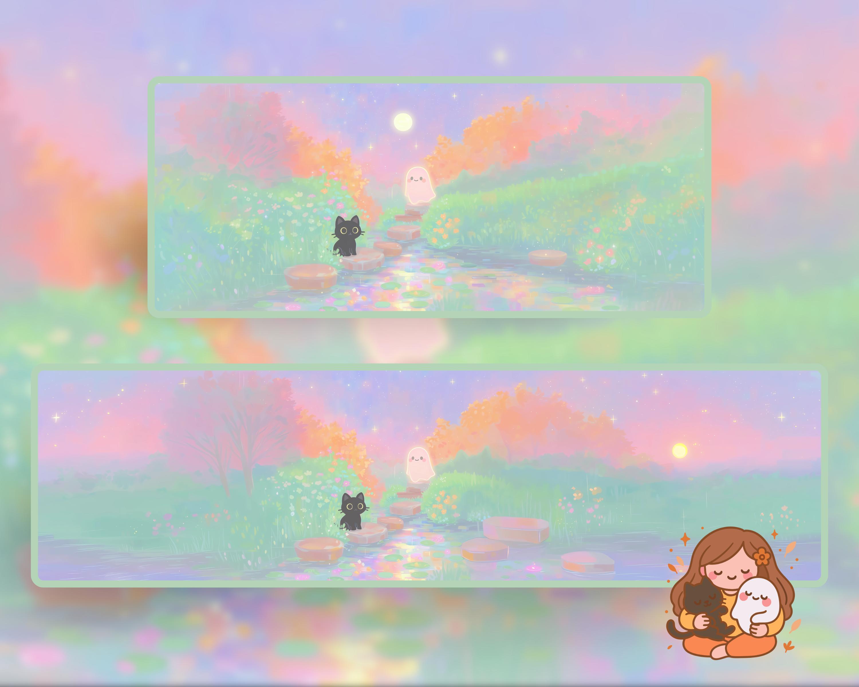 dreamy spring cat and ghost Ultrawide Wallpaper Set Desk Setup Desktop for 21:9 32x9